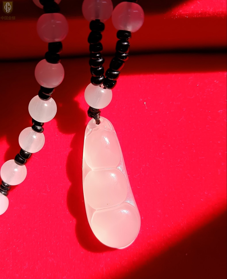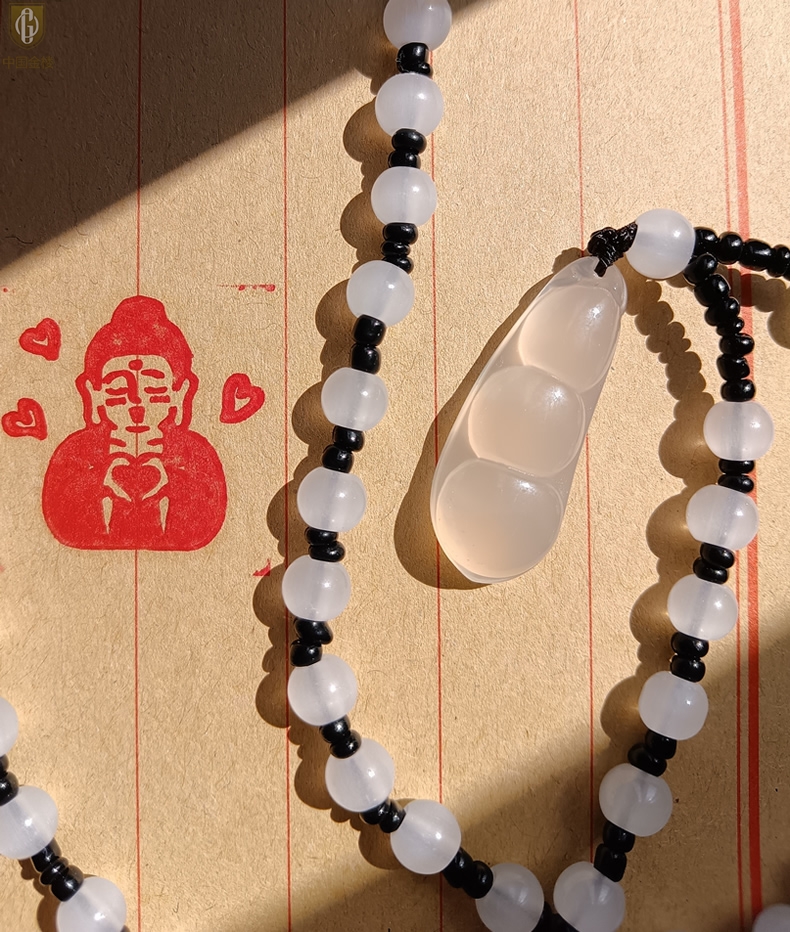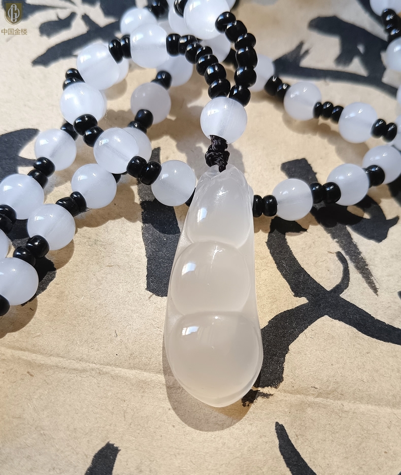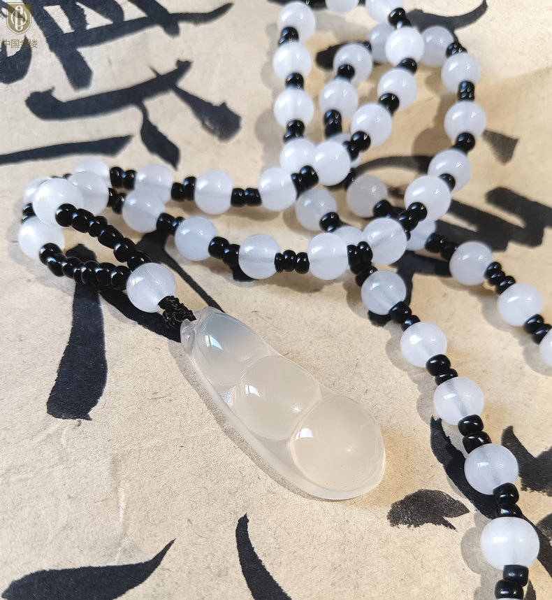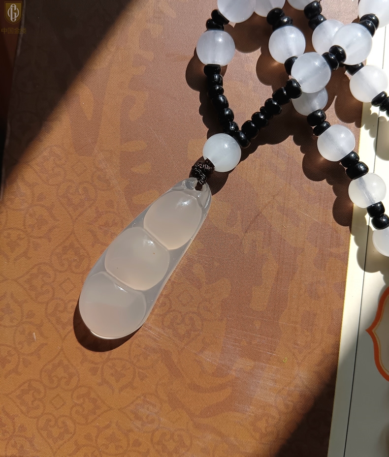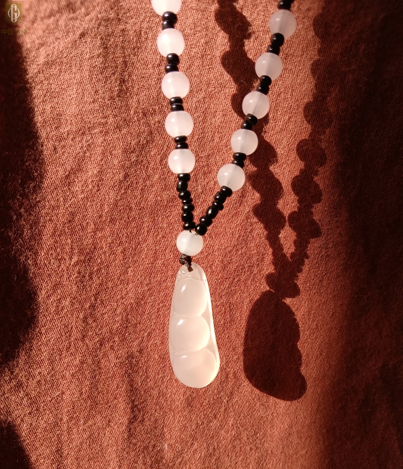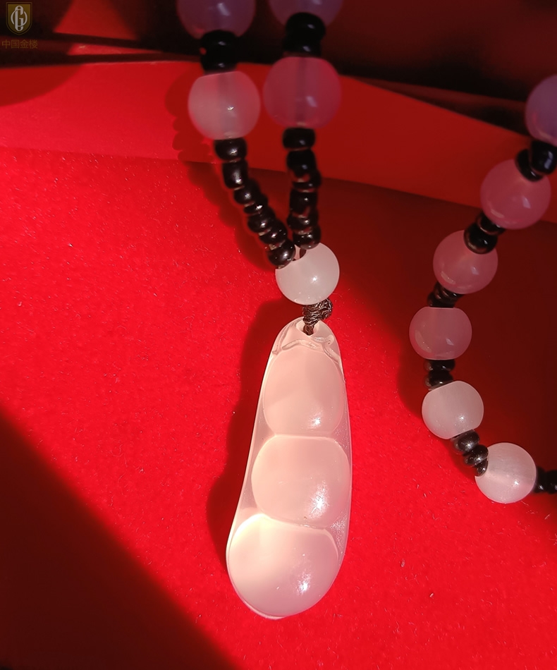 【品名】中国金楼巴西高冰玉髓四季平安豆吊坠(附赠汉白玉毛衣链)