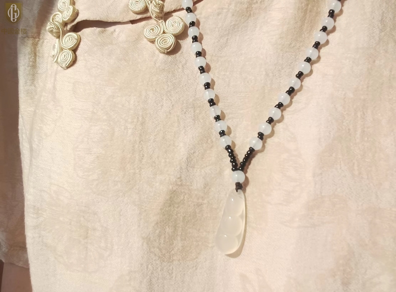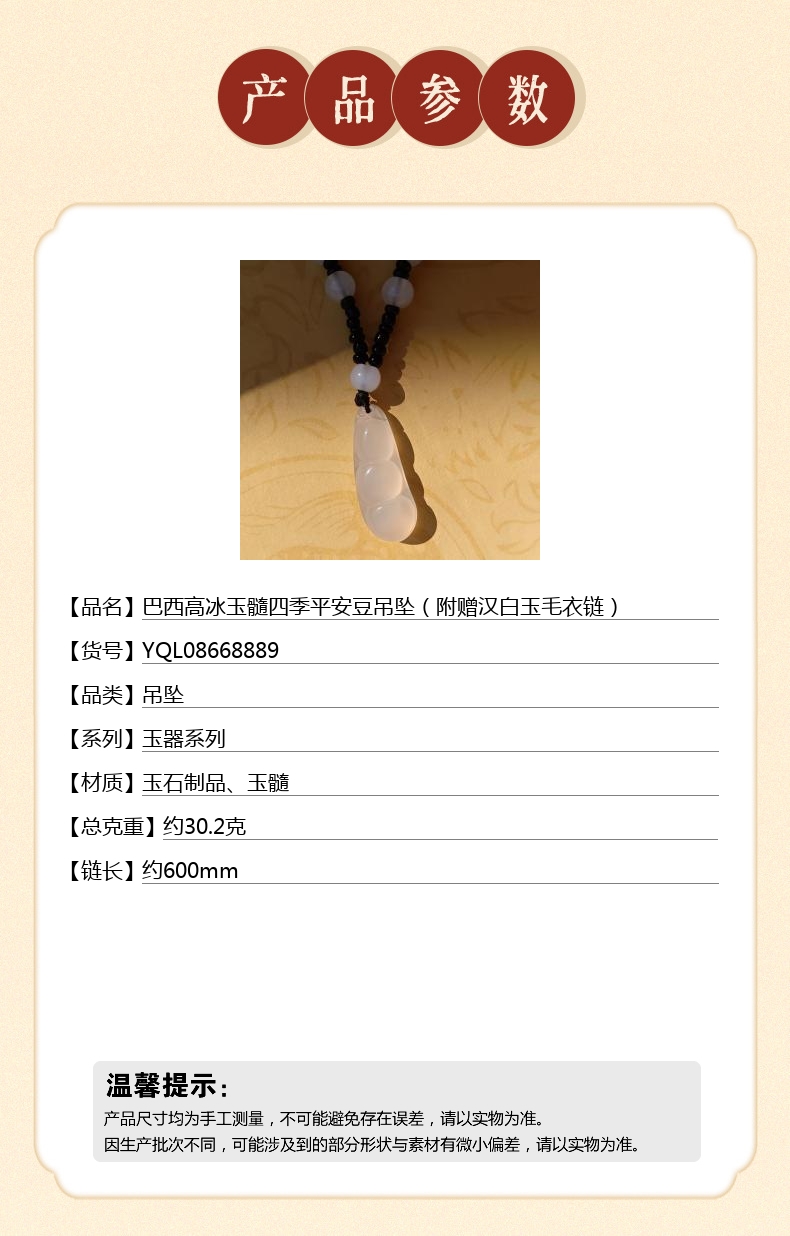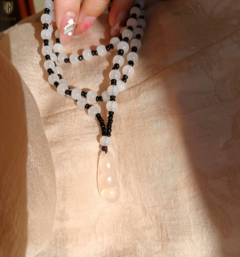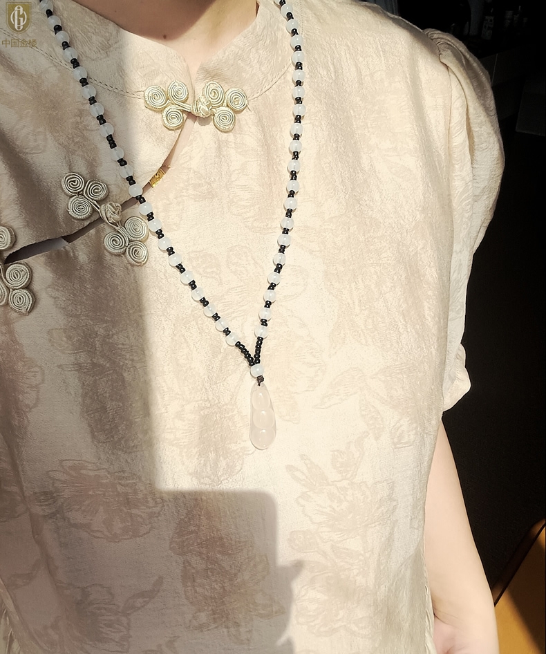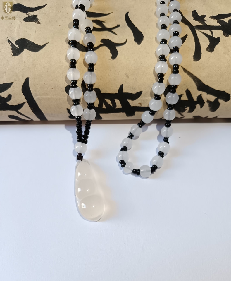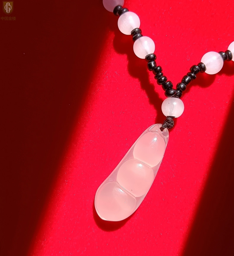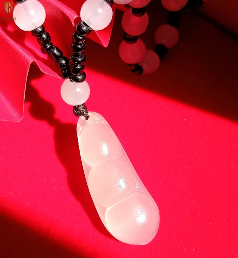 【品名】中国金楼巴西高冰玉髓四季平安豆吊坠(附赠汉白玉毛衣链)