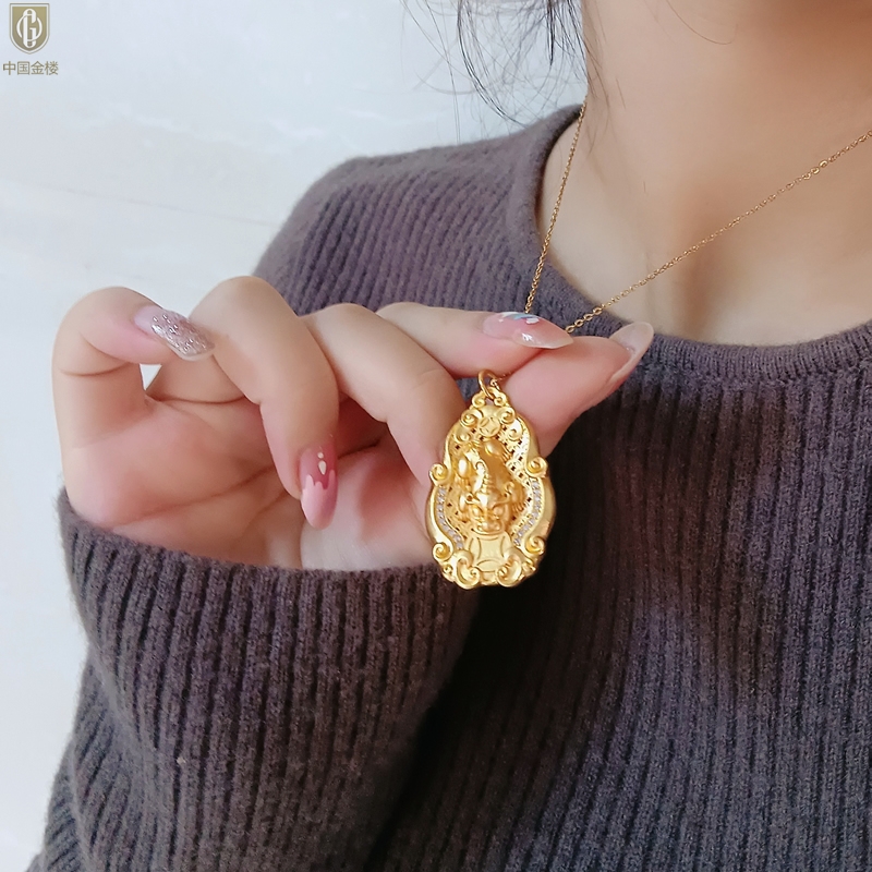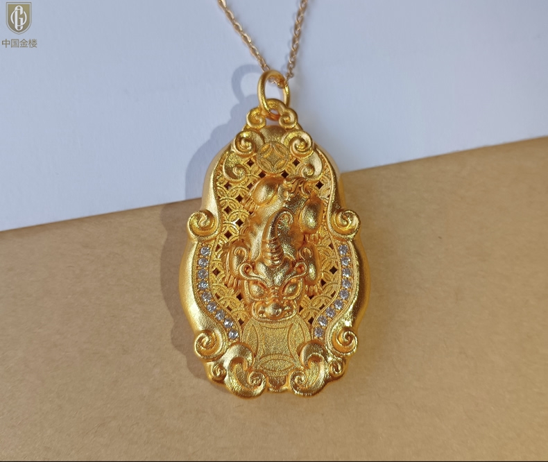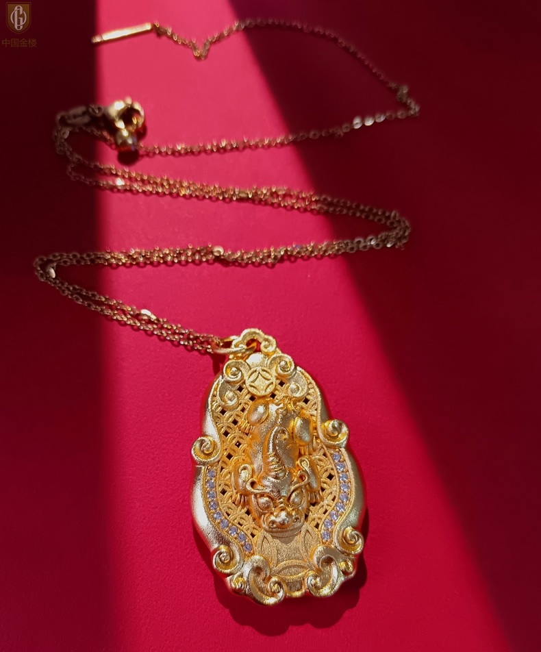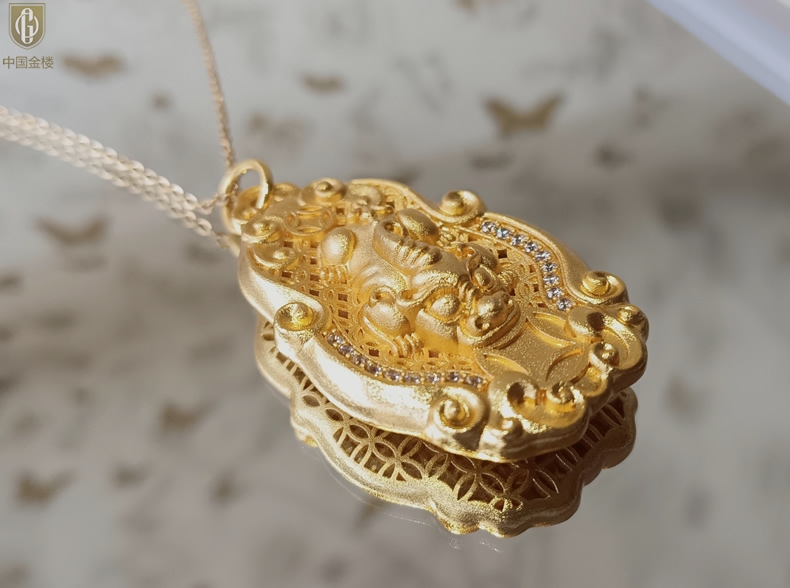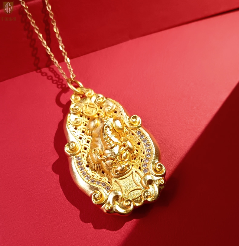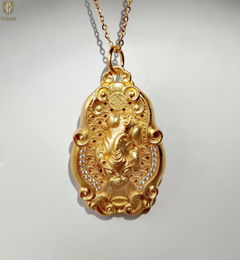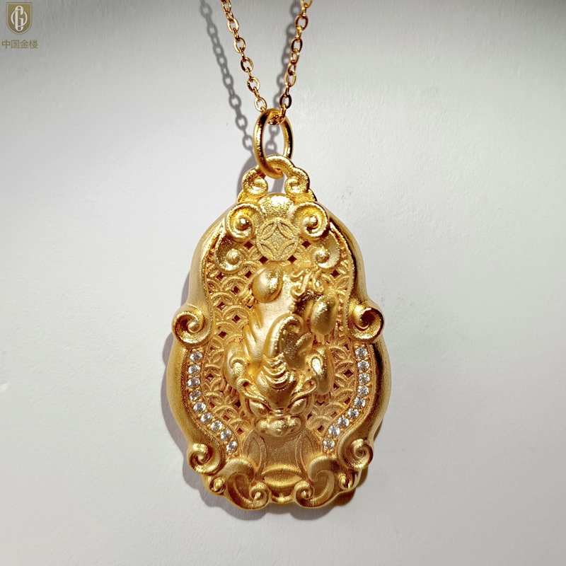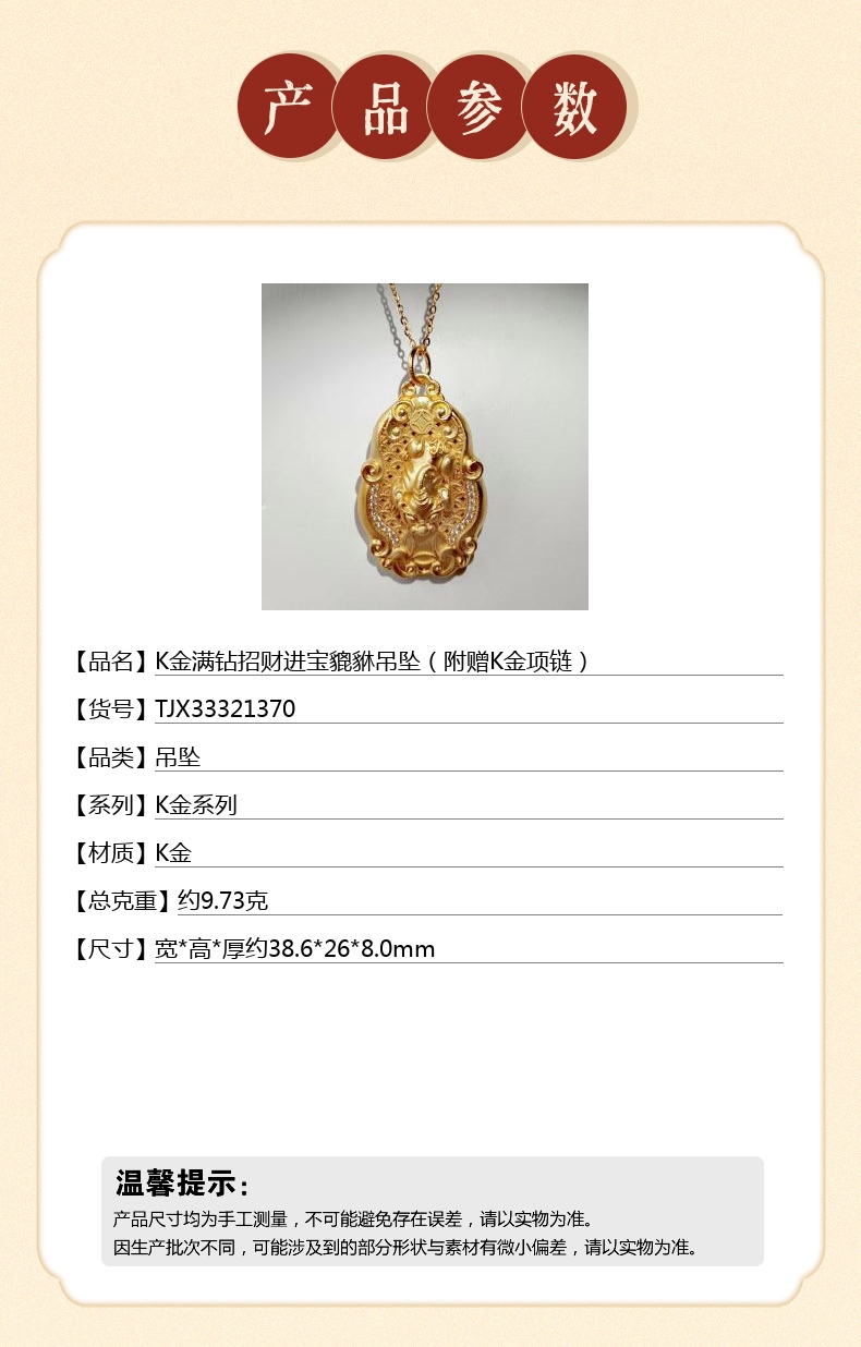 【品名】中国金楼K金满钻招财进宝貔貅吊坠(附赠K金项链)