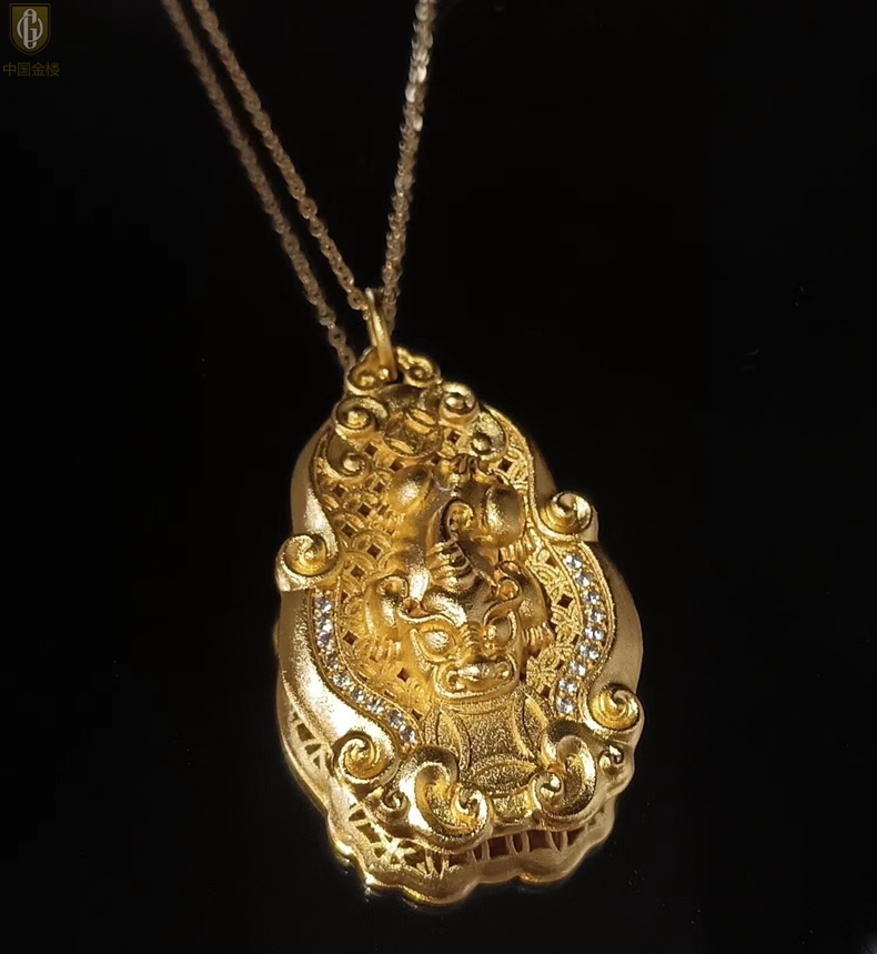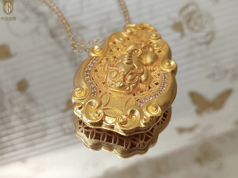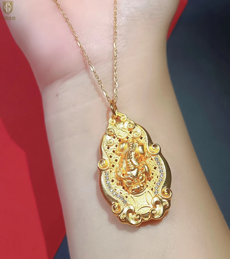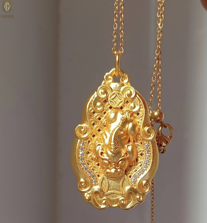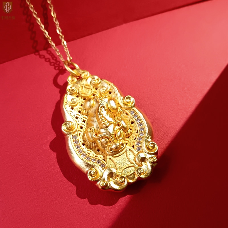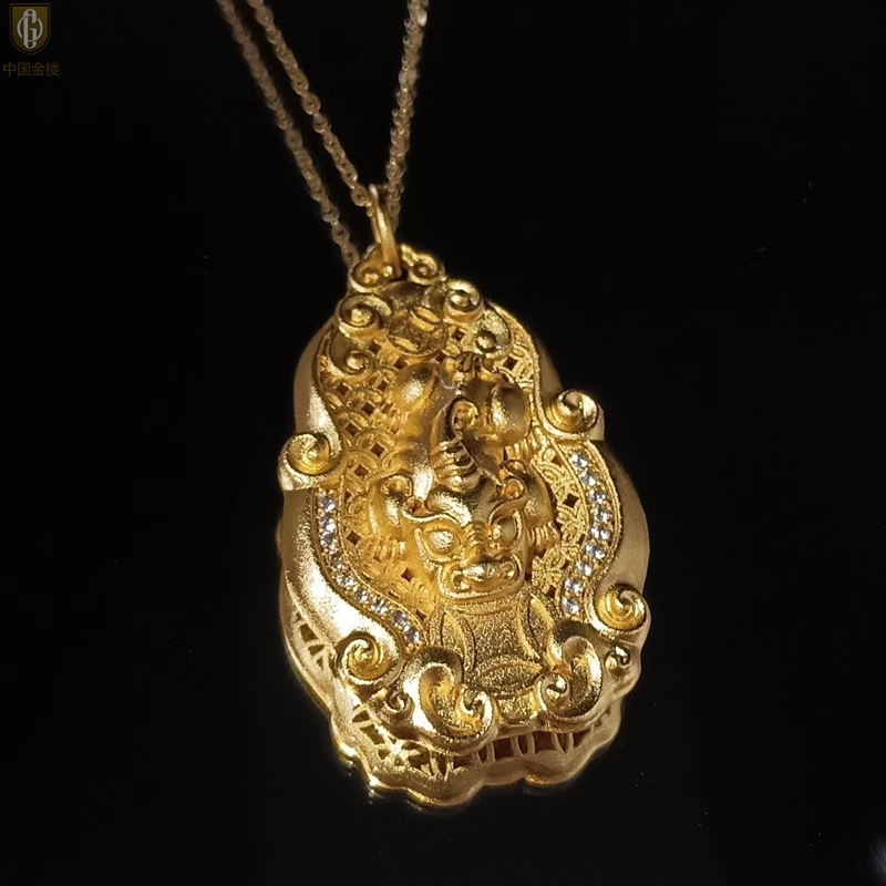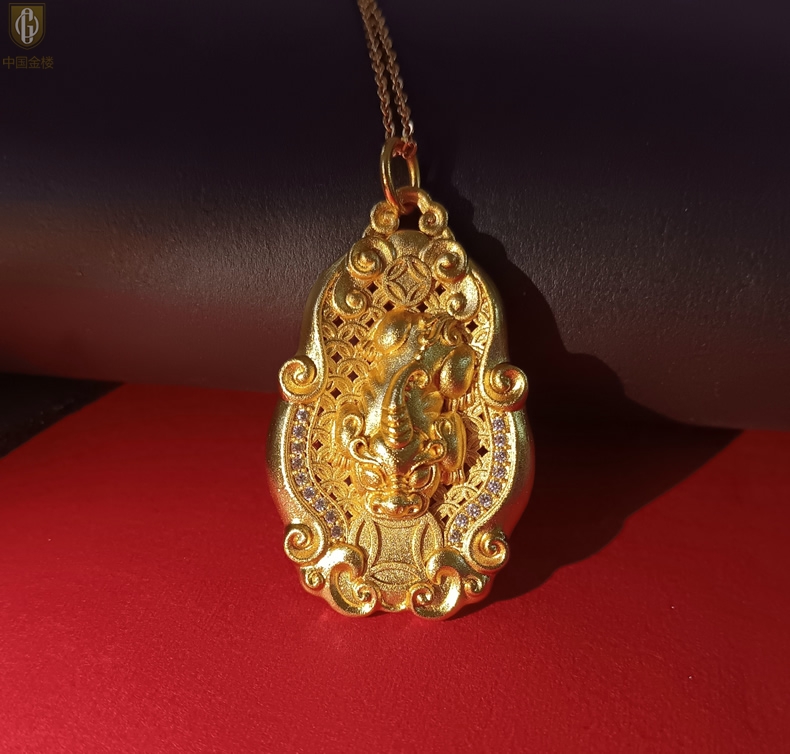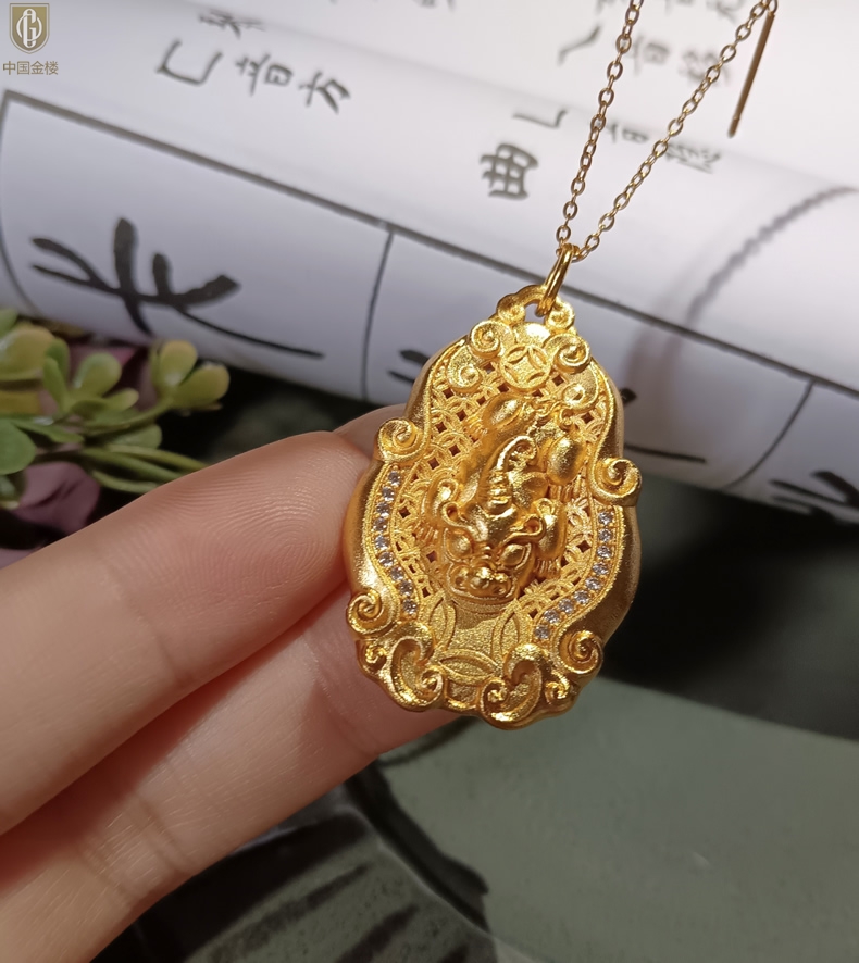 【品名】中国金楼K金满钻招财进宝貔貅吊坠(附赠K金项链)