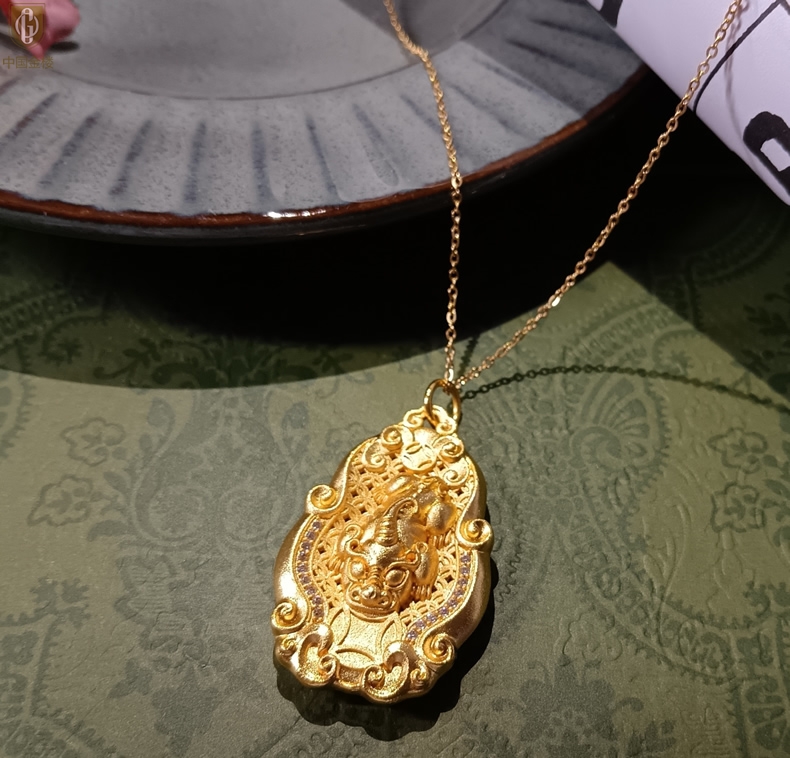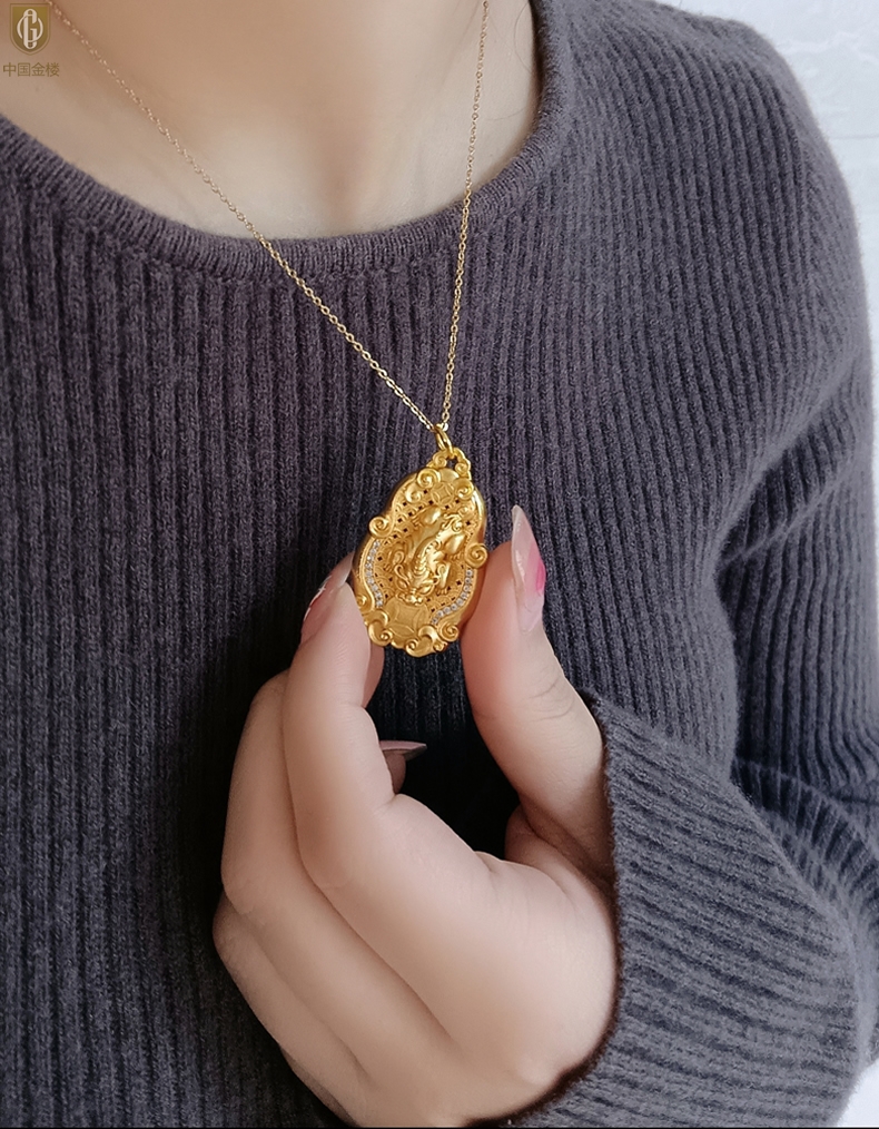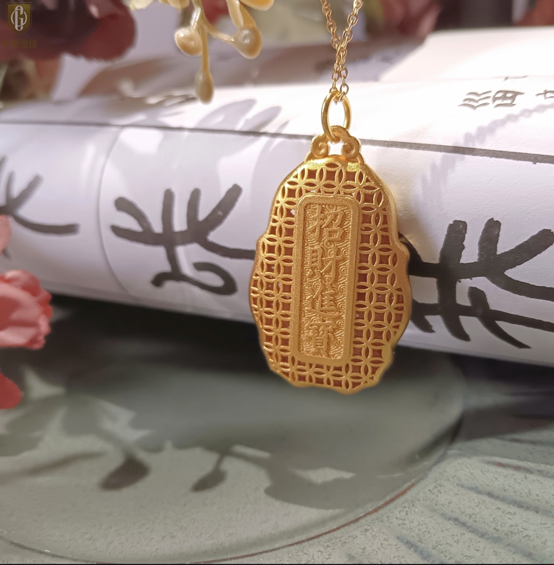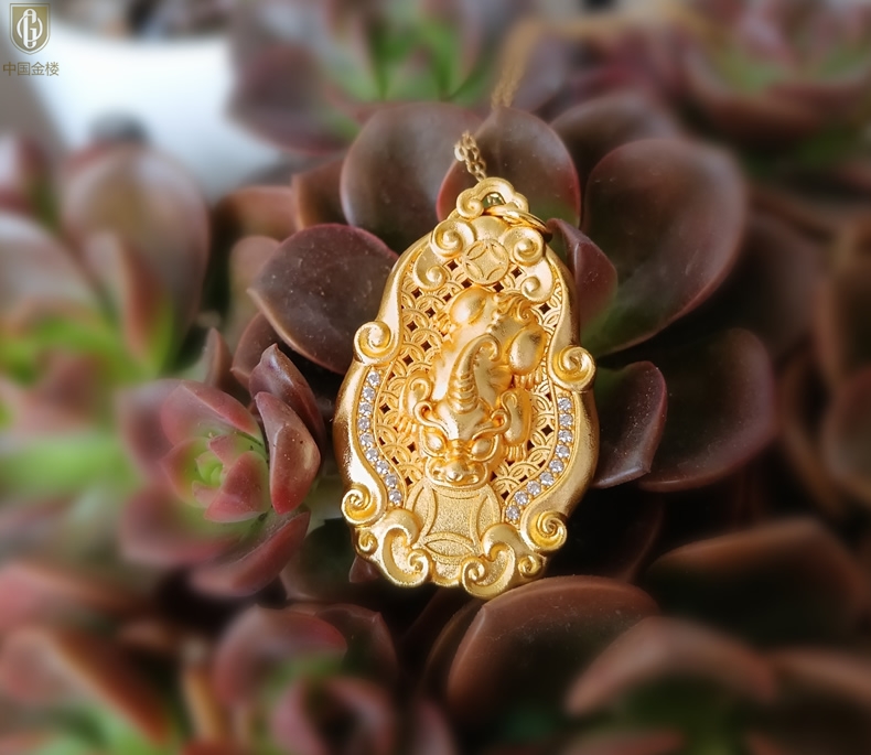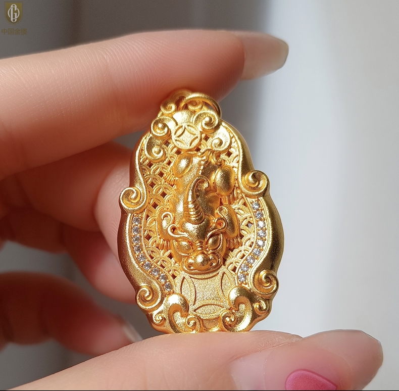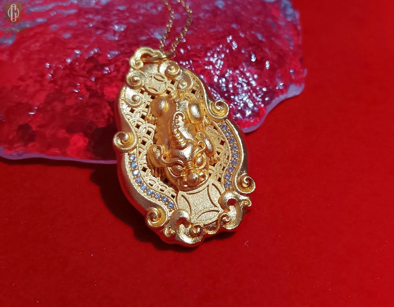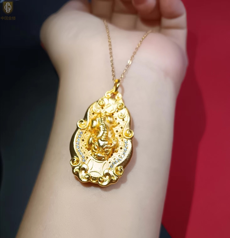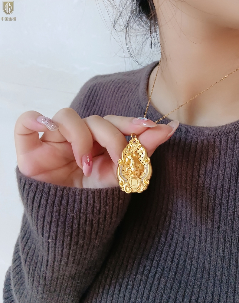 【品名】中国金楼K金满钻招财进宝貔貅吊坠(附赠K金项链)