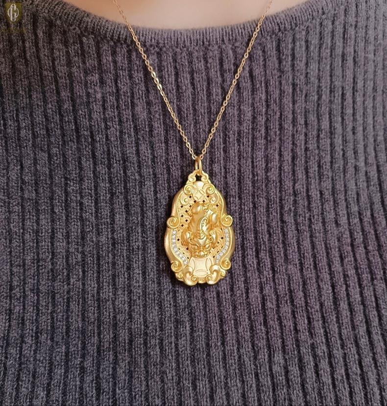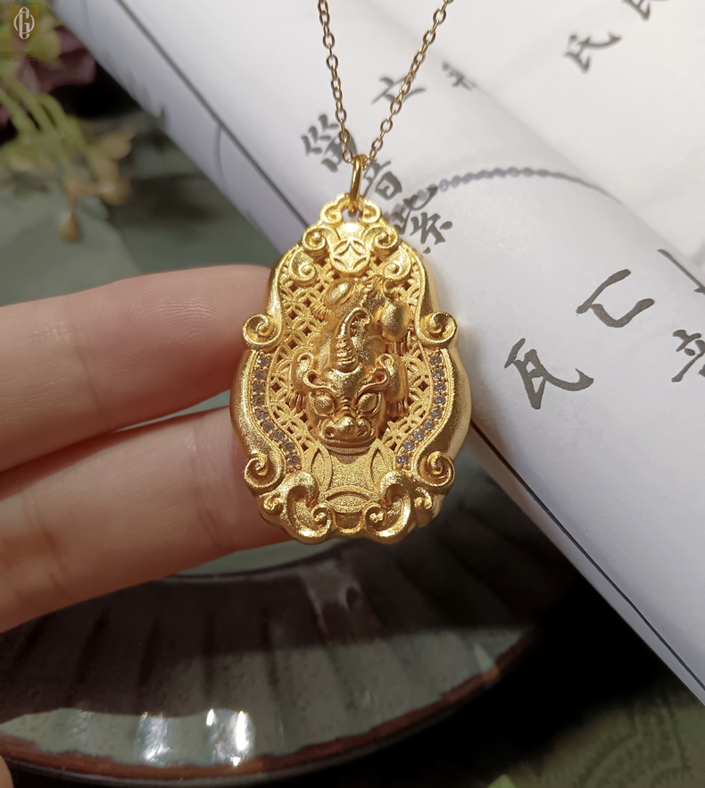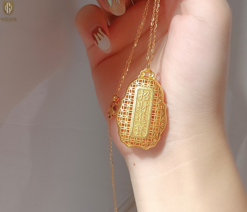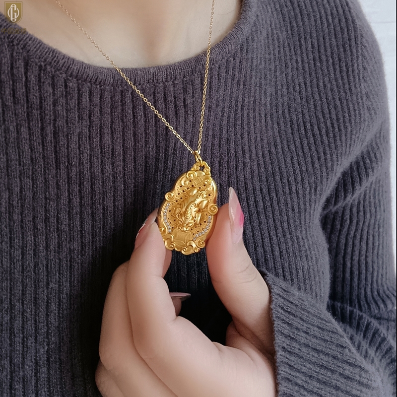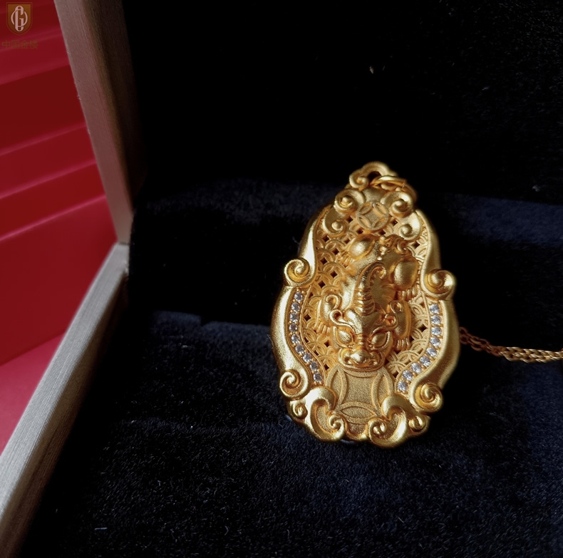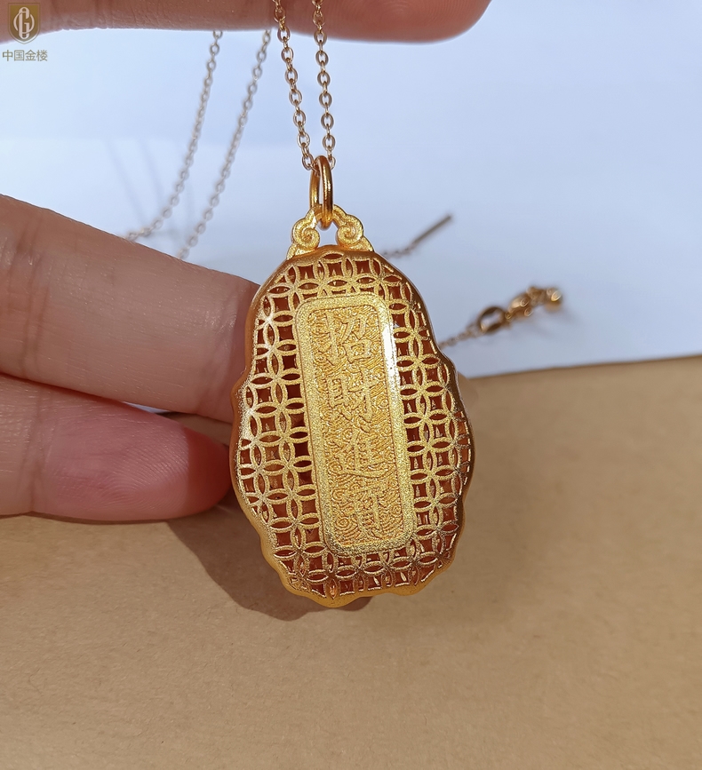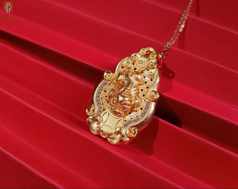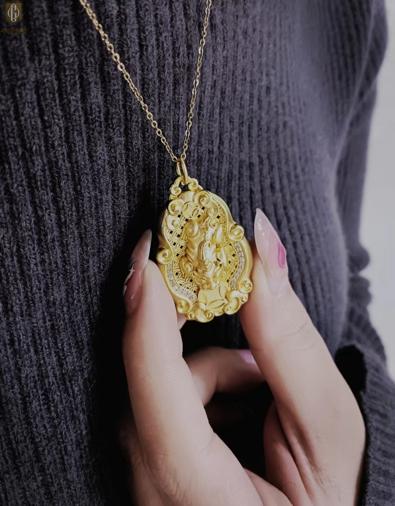 【品名】中国金楼K金满钻招财进宝貔貅吊坠(附赠K金项链)