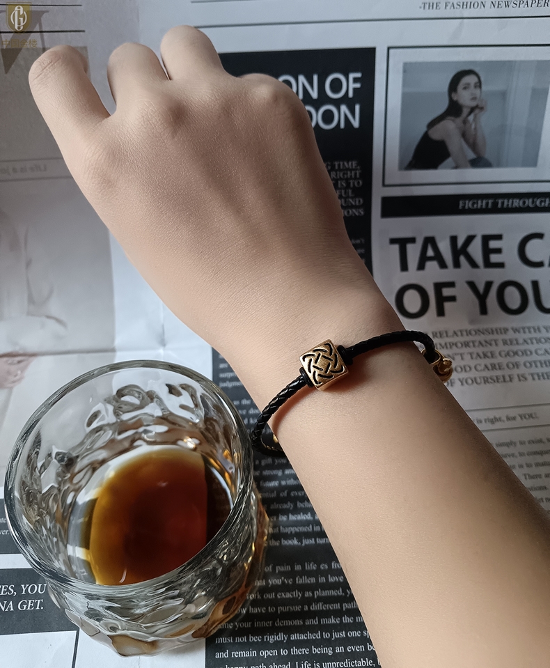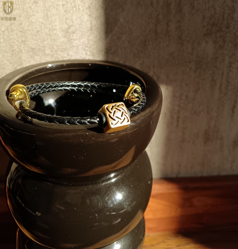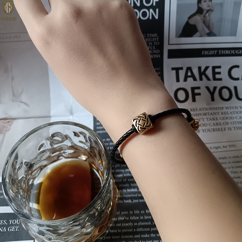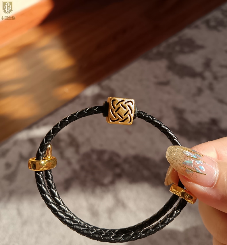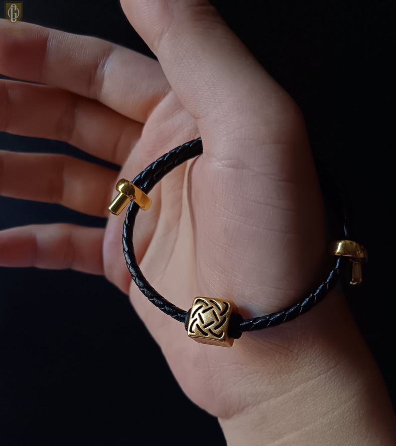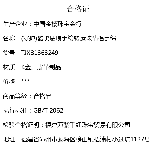 【品名】中国金楼(守护)酷黑珐琅手绘转运珠情侣手绳