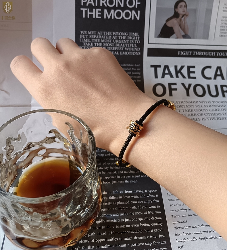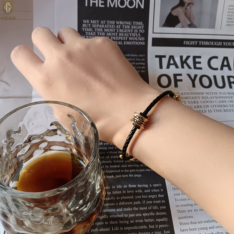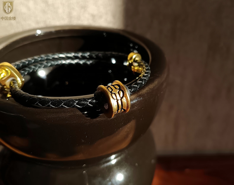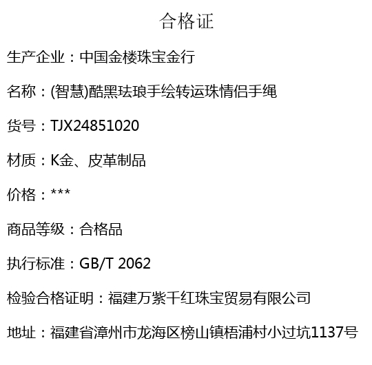 【品名】中国金楼(智慧)酷黑珐琅手绘转运珠情侣手绳