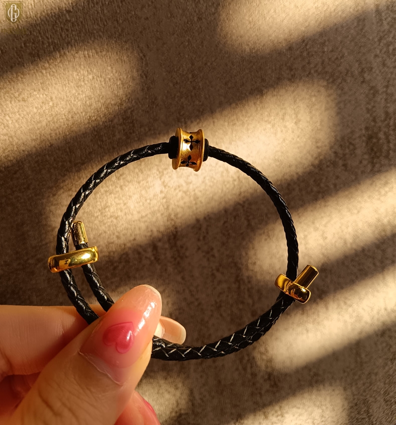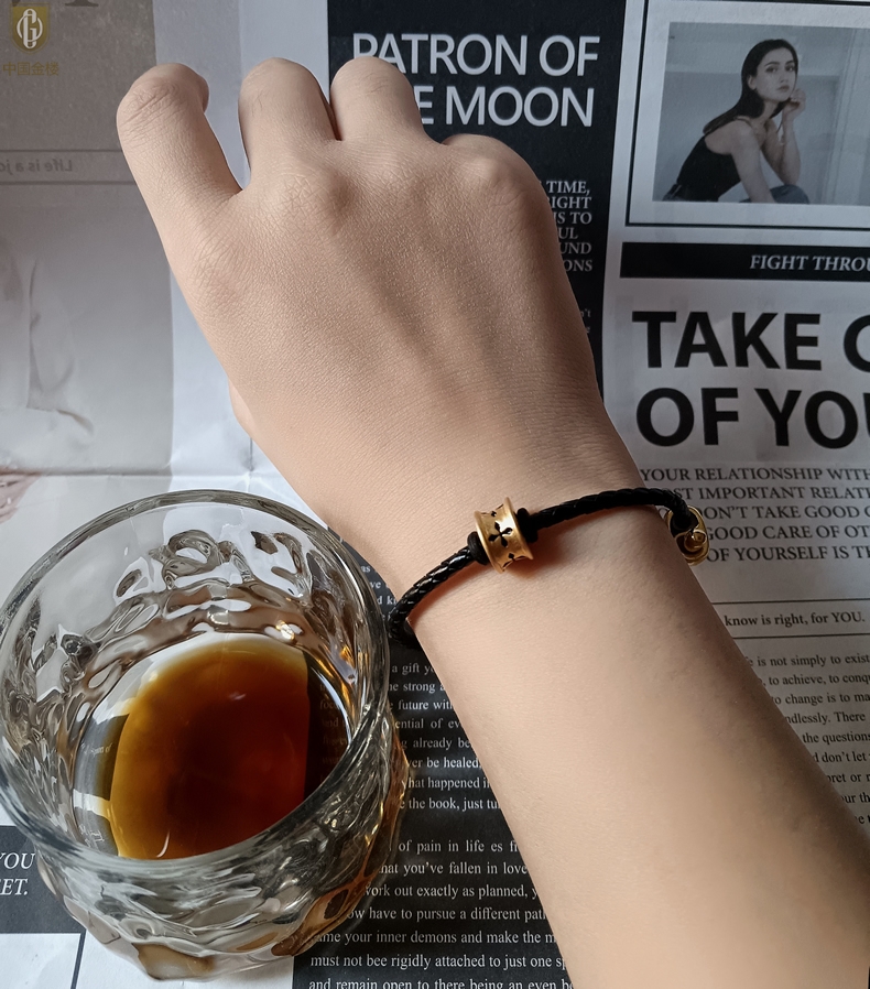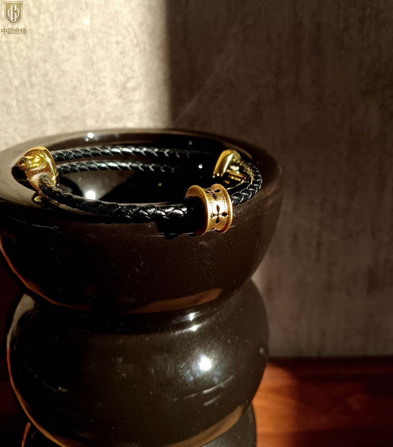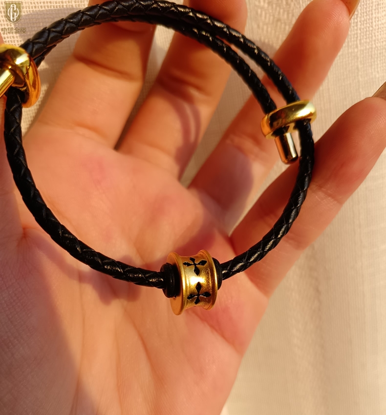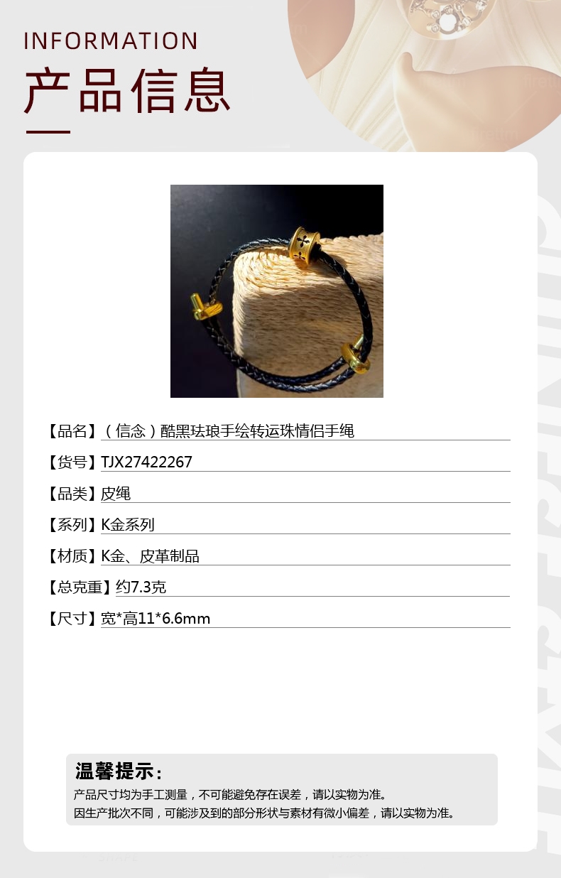 【品名】中国金楼(信念)酷黑珐琅手绘转运珠情侣手绳
