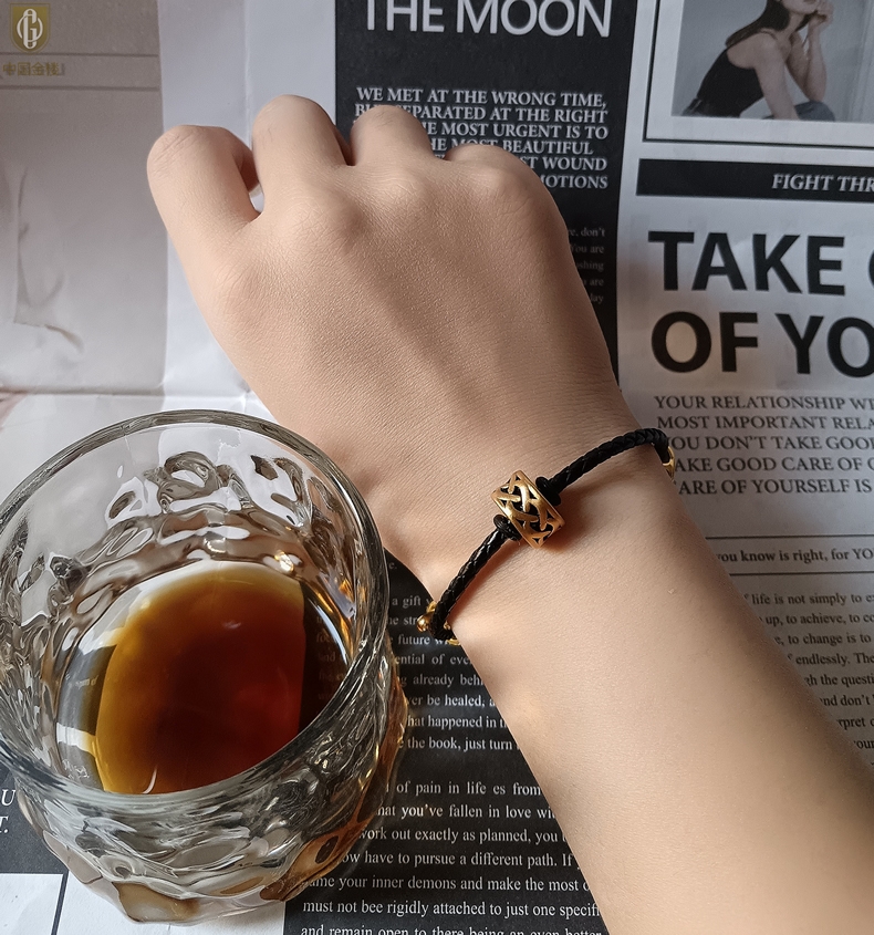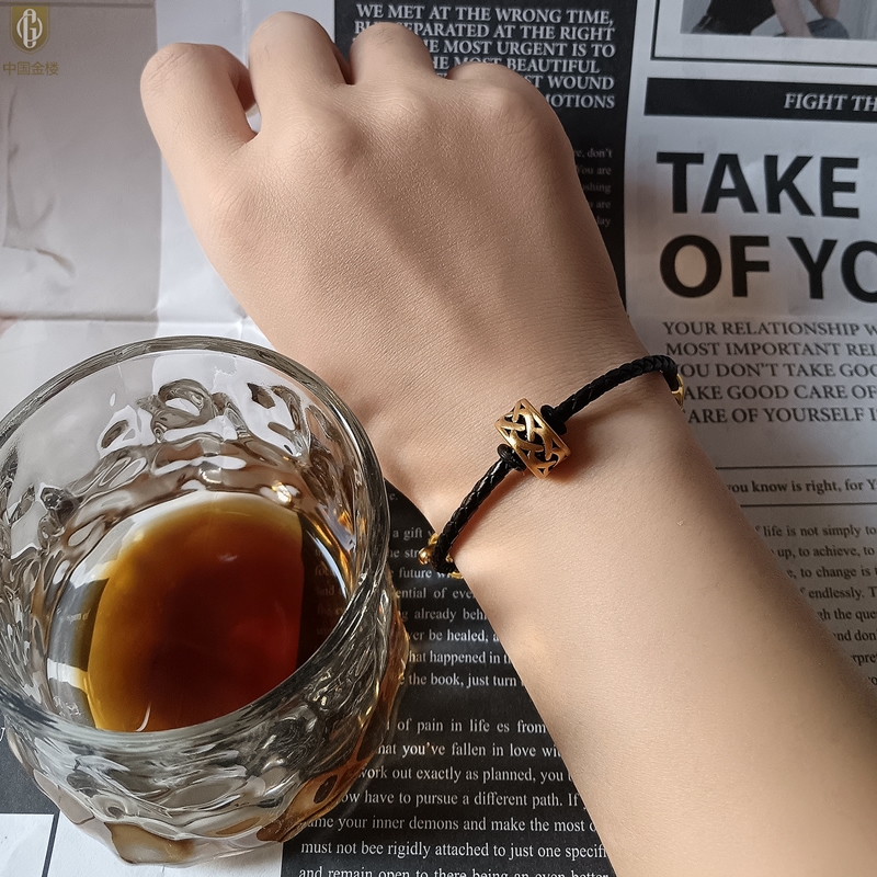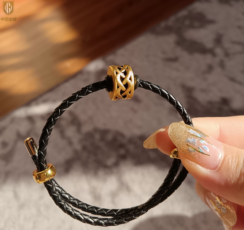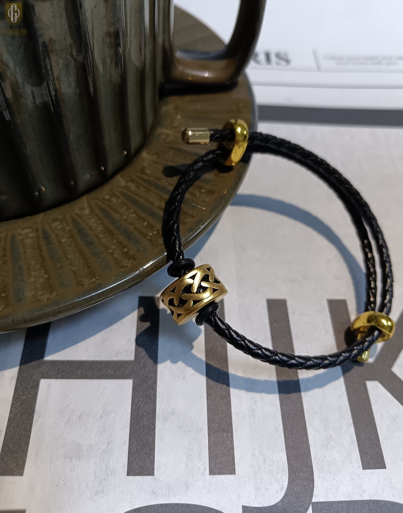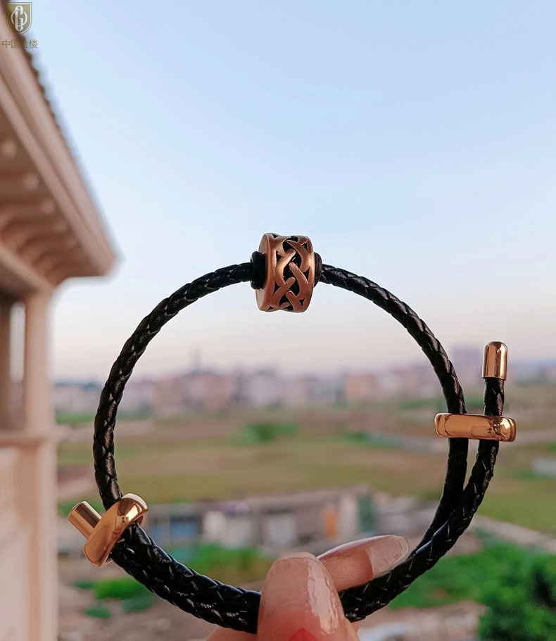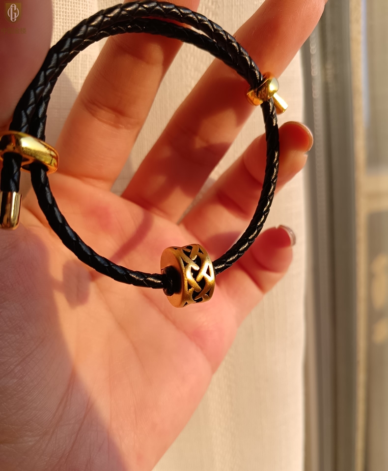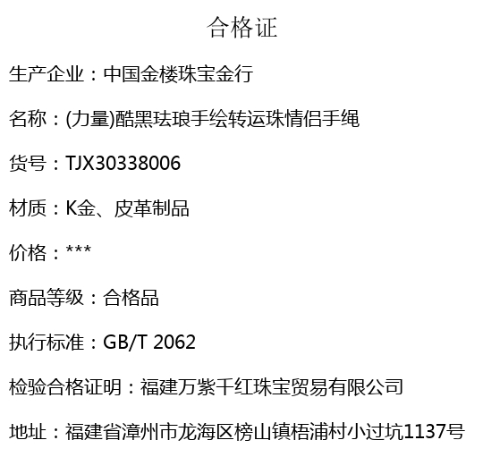 【品名】中国金楼(力量)酷黑珐琅手绘转运珠情侣手绳