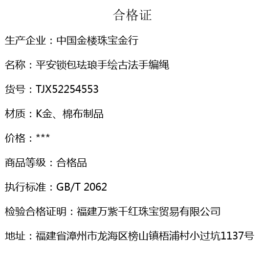 【品名】中国金楼平安锁包珐琅手绘古法手编绳