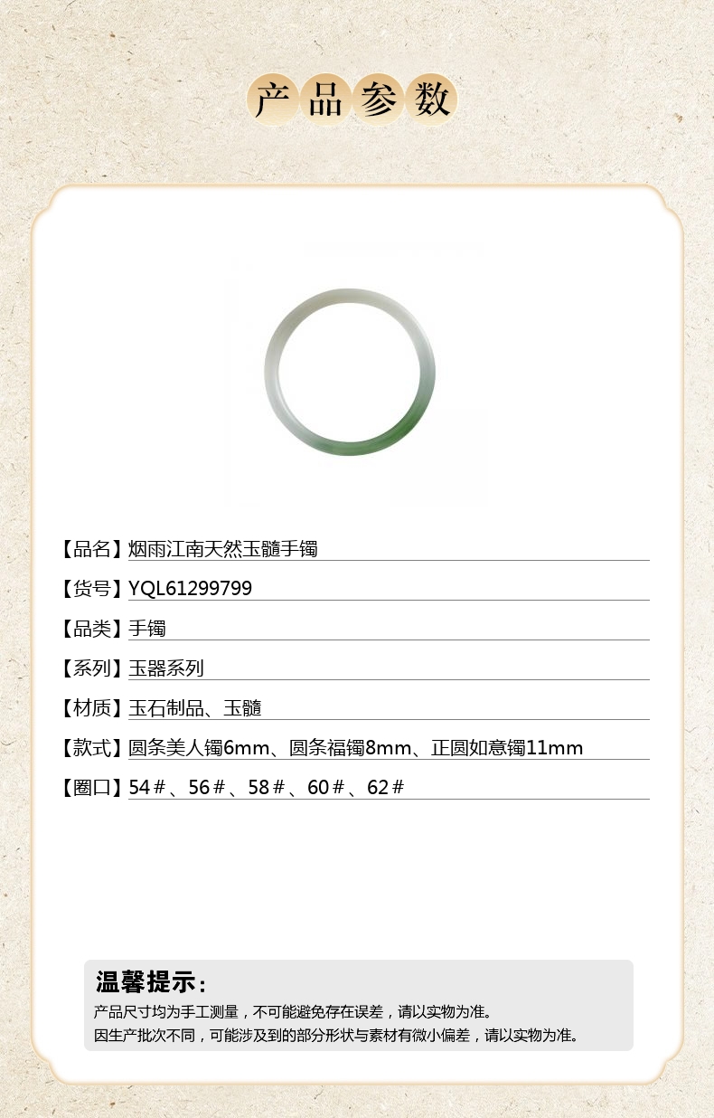 款式:圆条美人镯6mm、圆条福镯8mm、正圆如意镯11mm