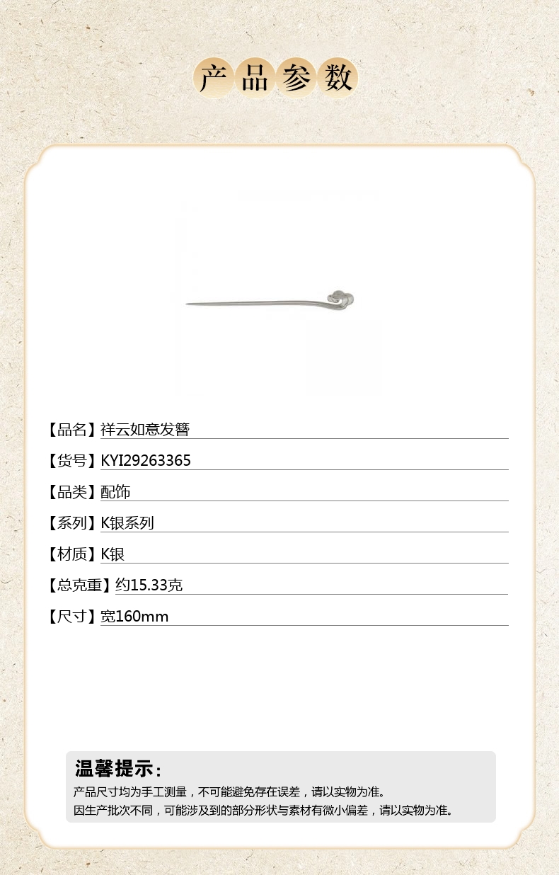 【品名】中国金楼祥云如意发簪