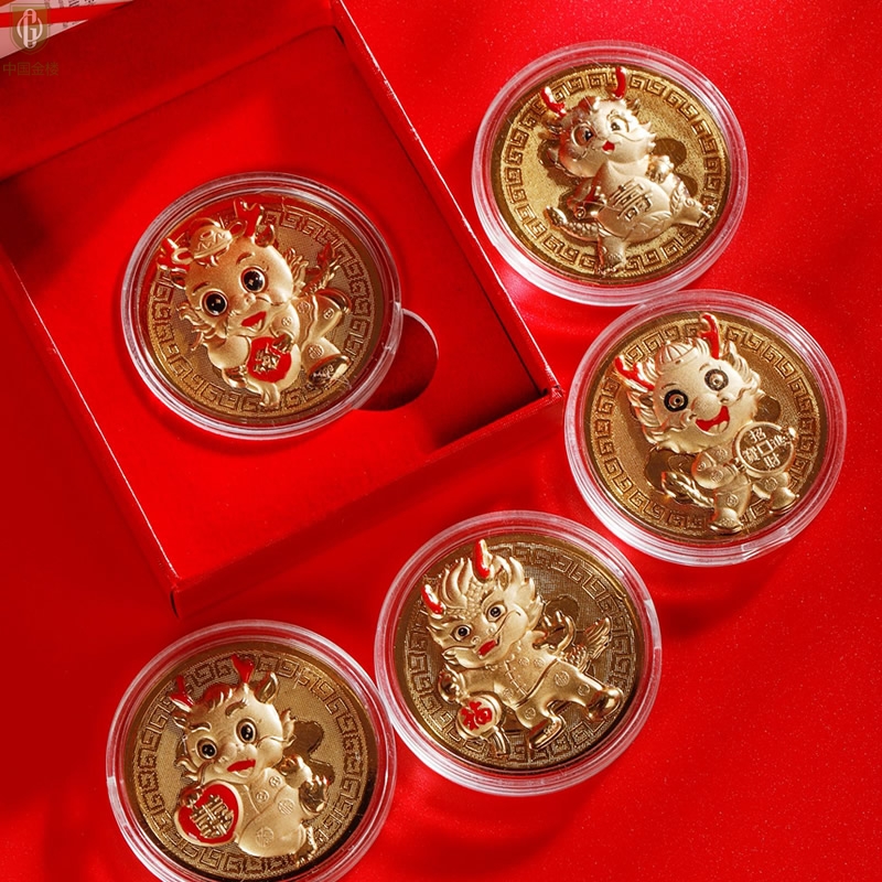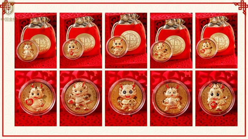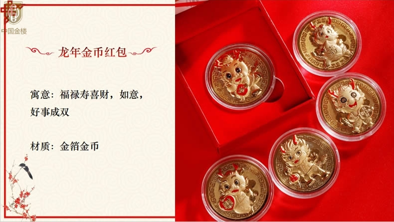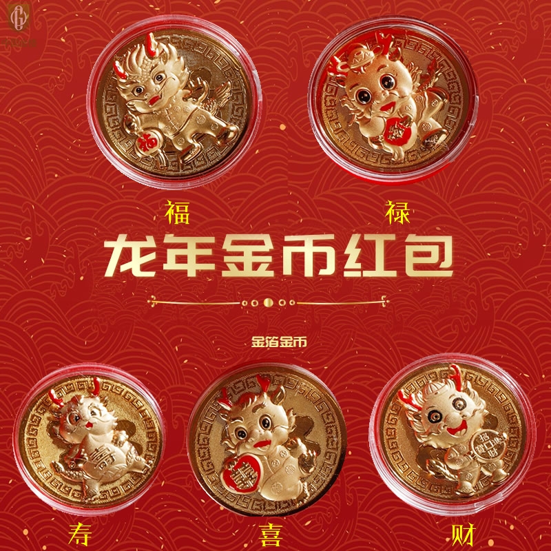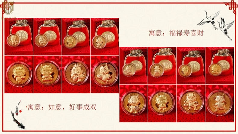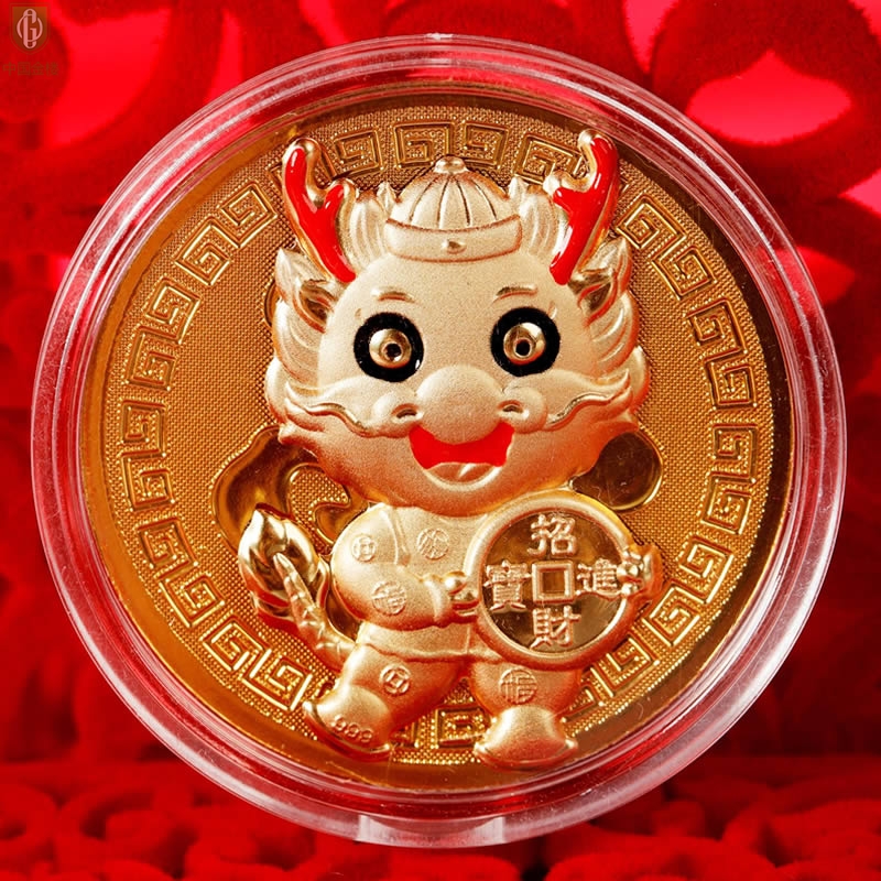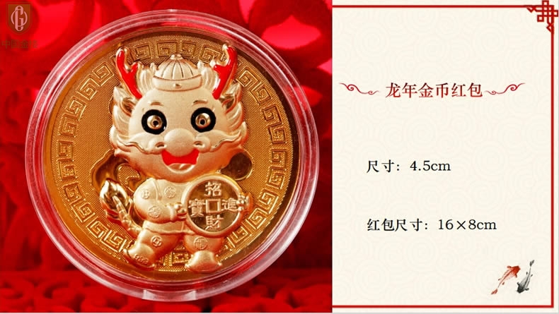【品名】中国金楼祥龙祈福999黄金箔纪念币(福禄寿喜财)单只