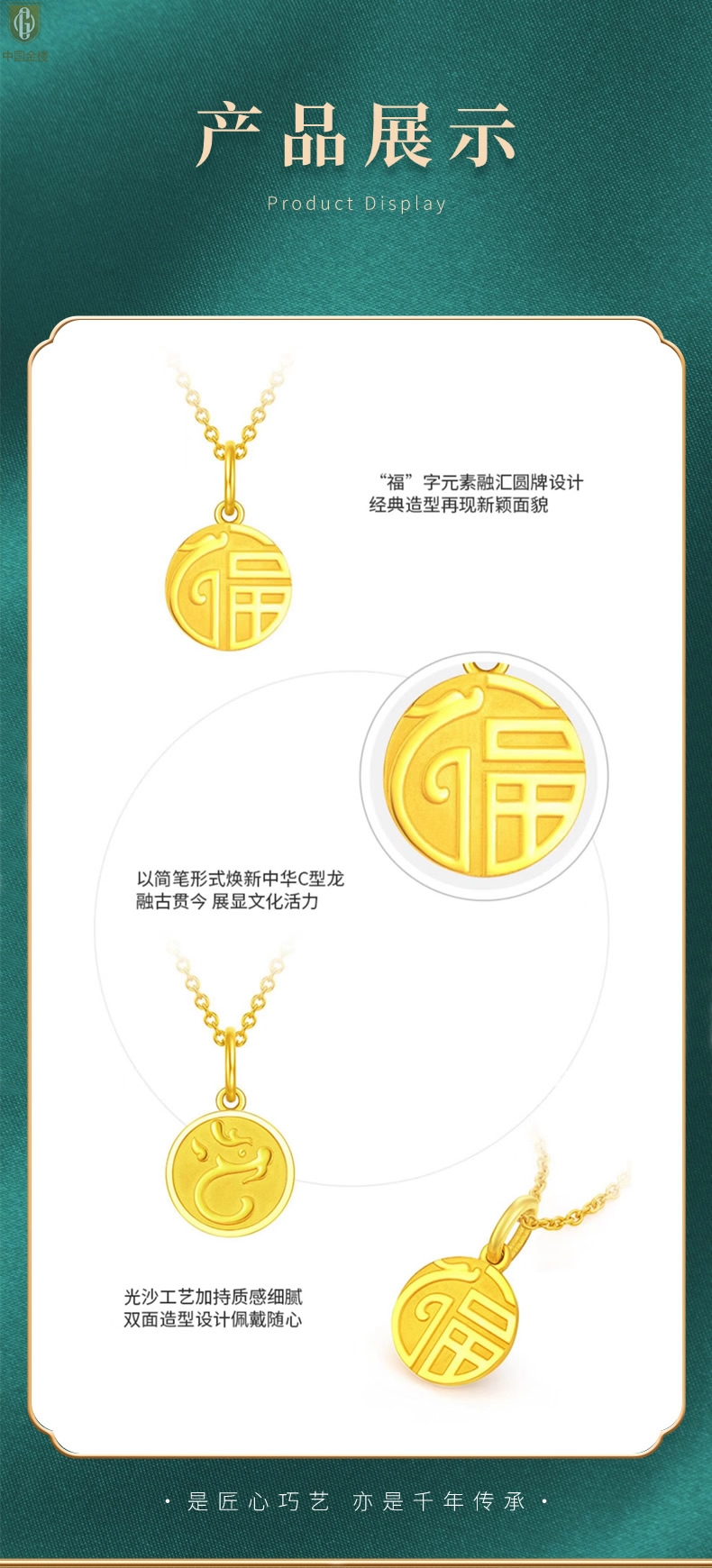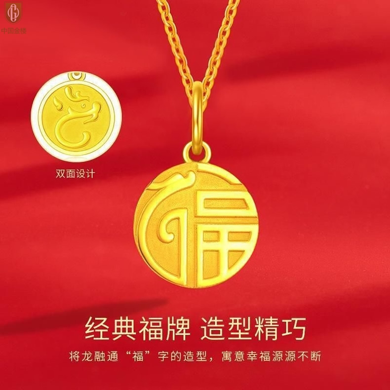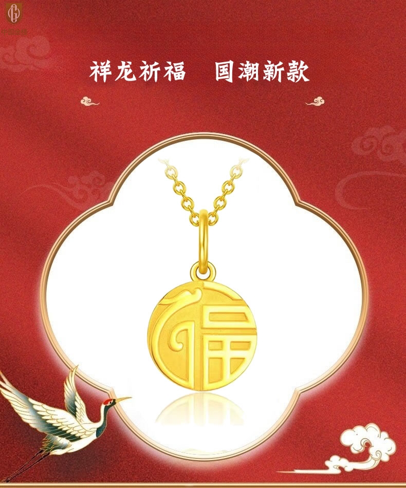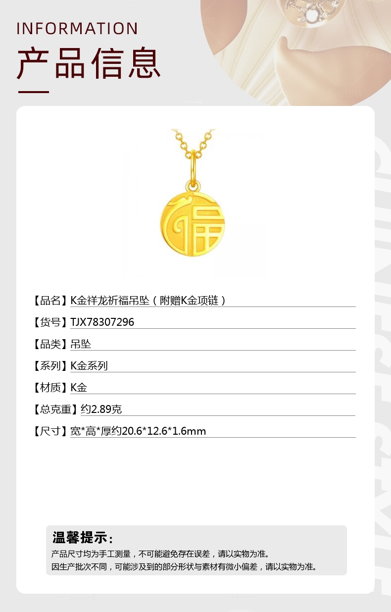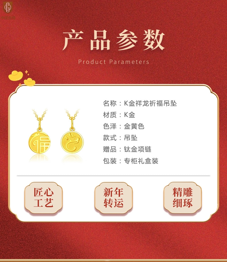 【品名】中国金楼K金祥龙祈福吊坠(附赠K金项链)