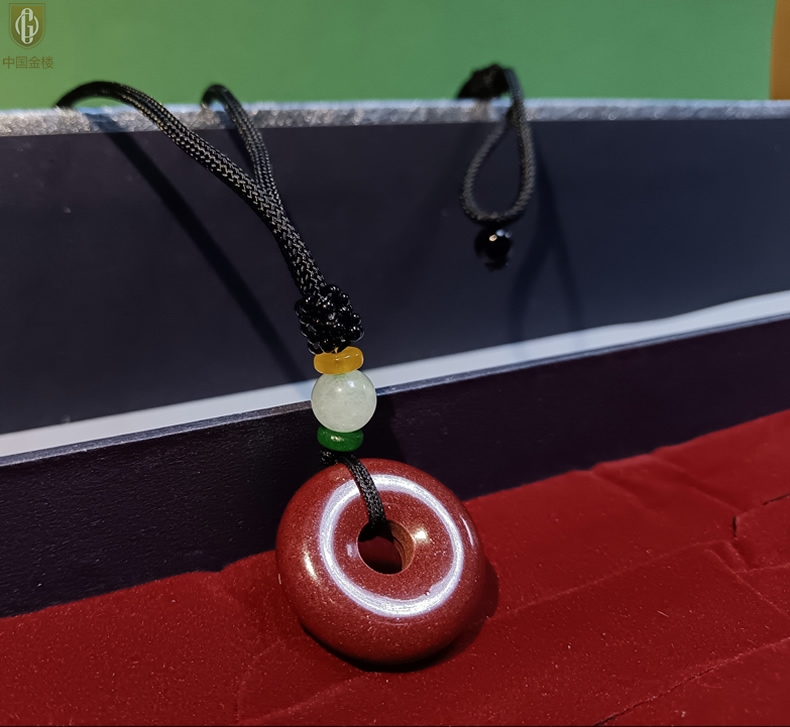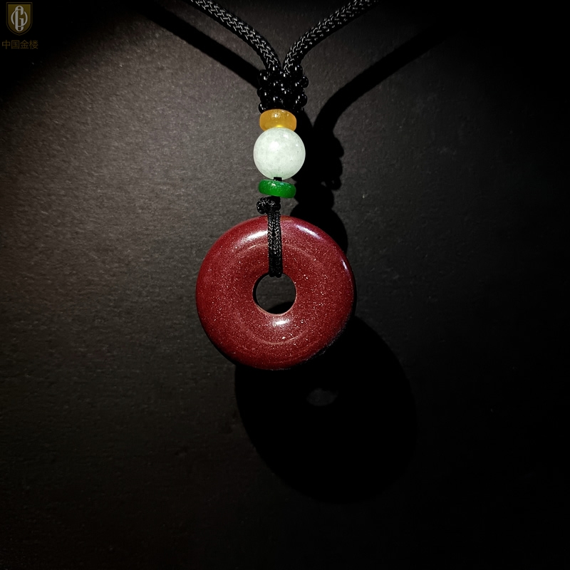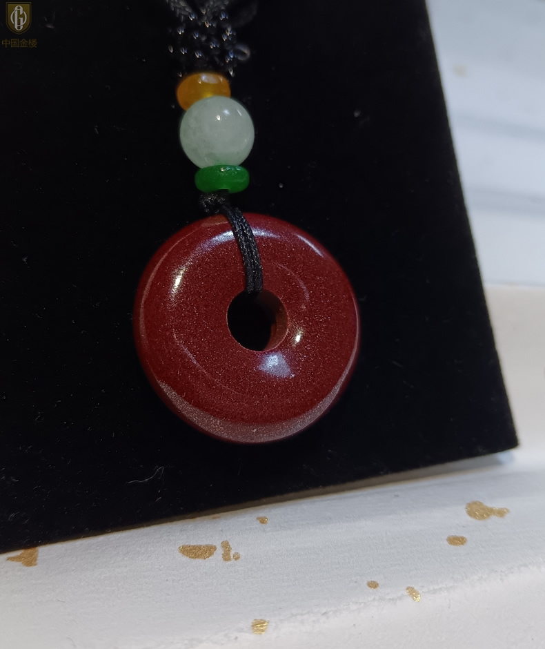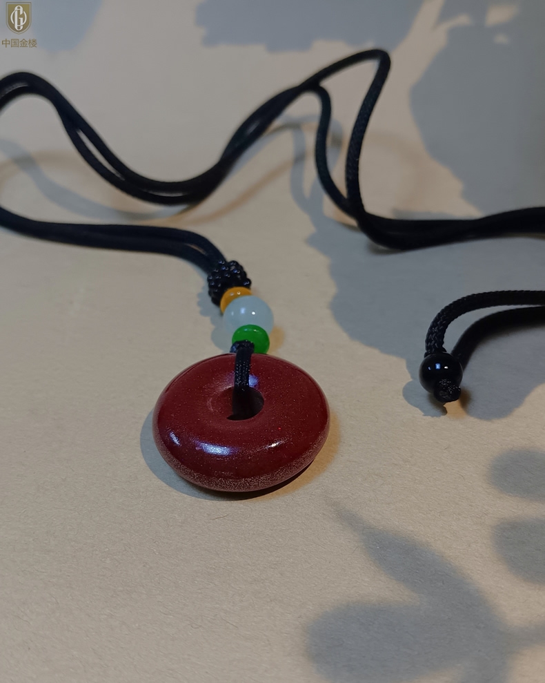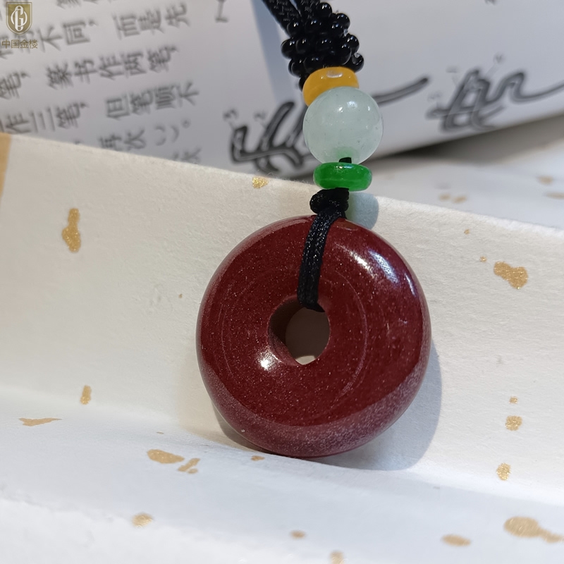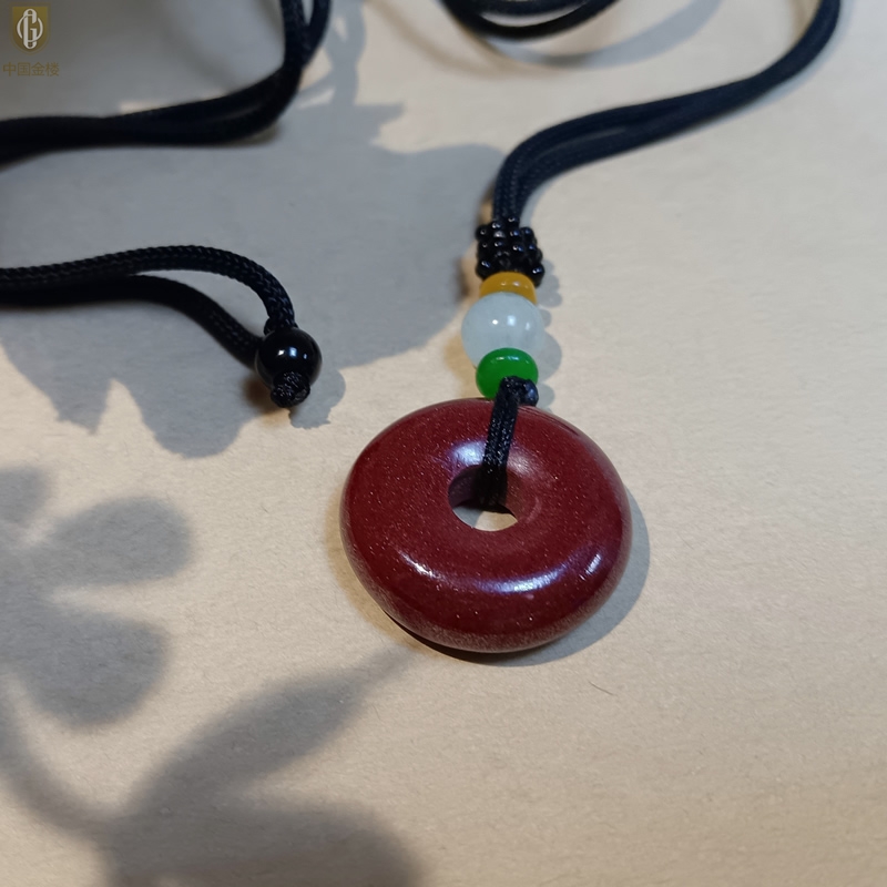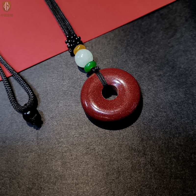 【品名】中国金楼天然原矿朱砂光面平安扣吊坠