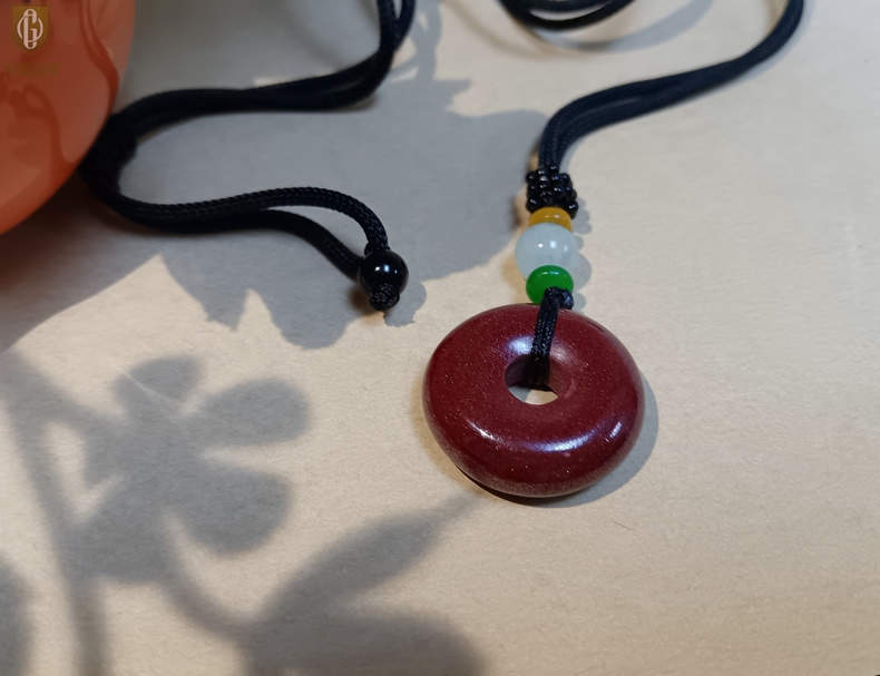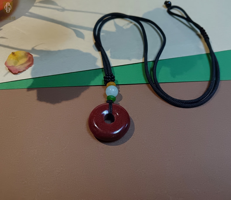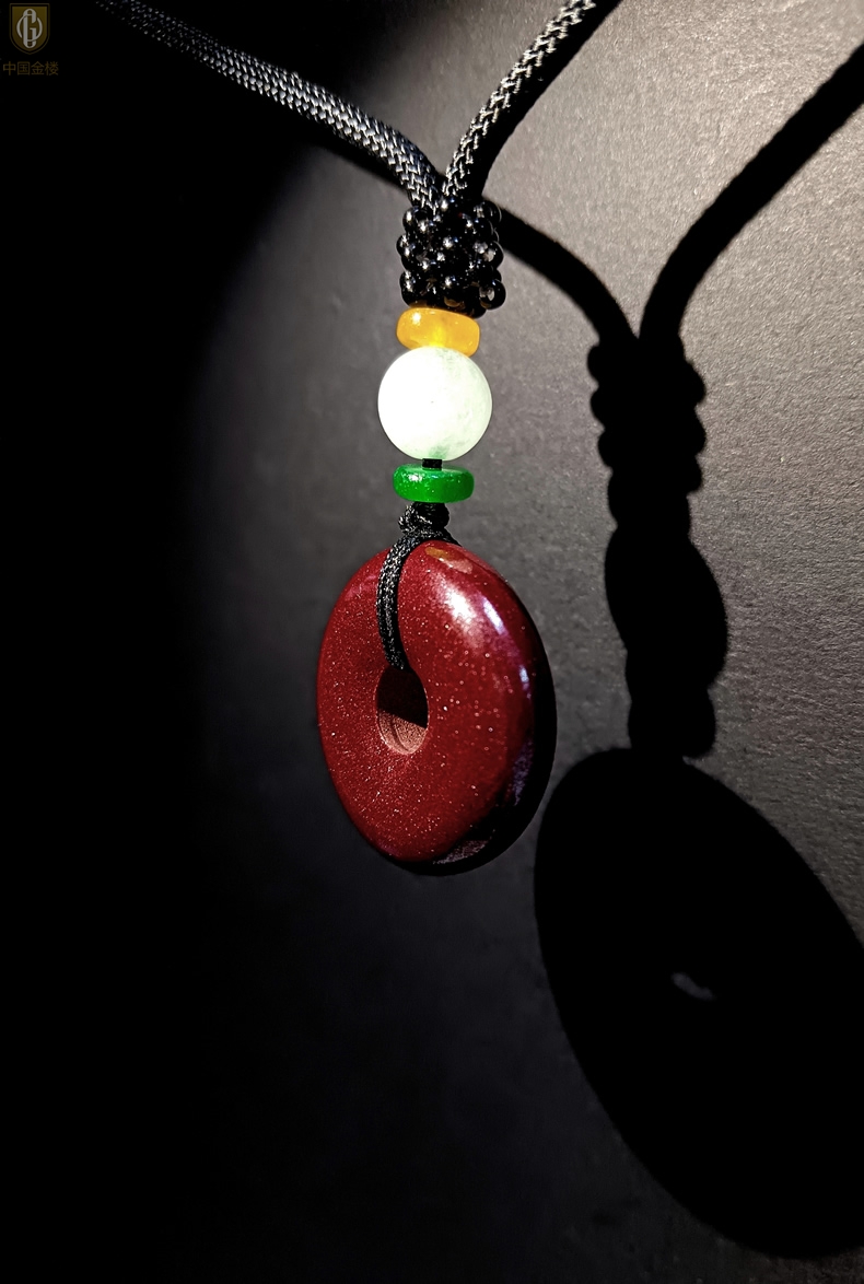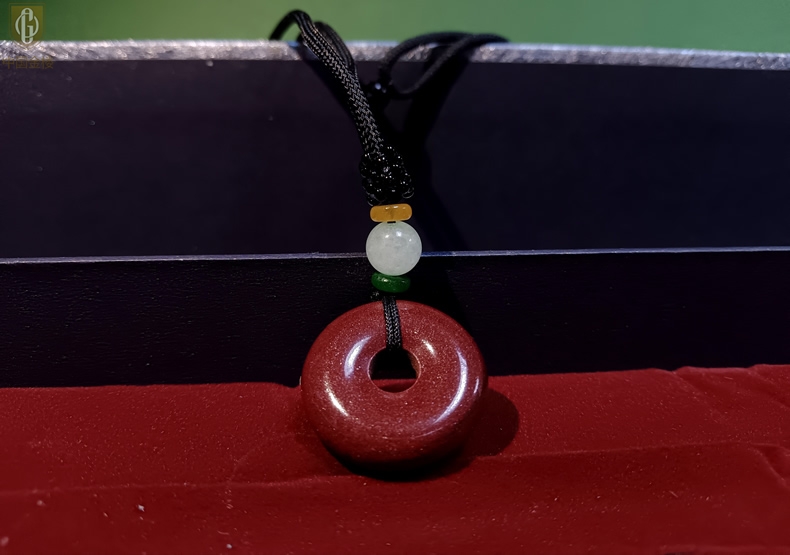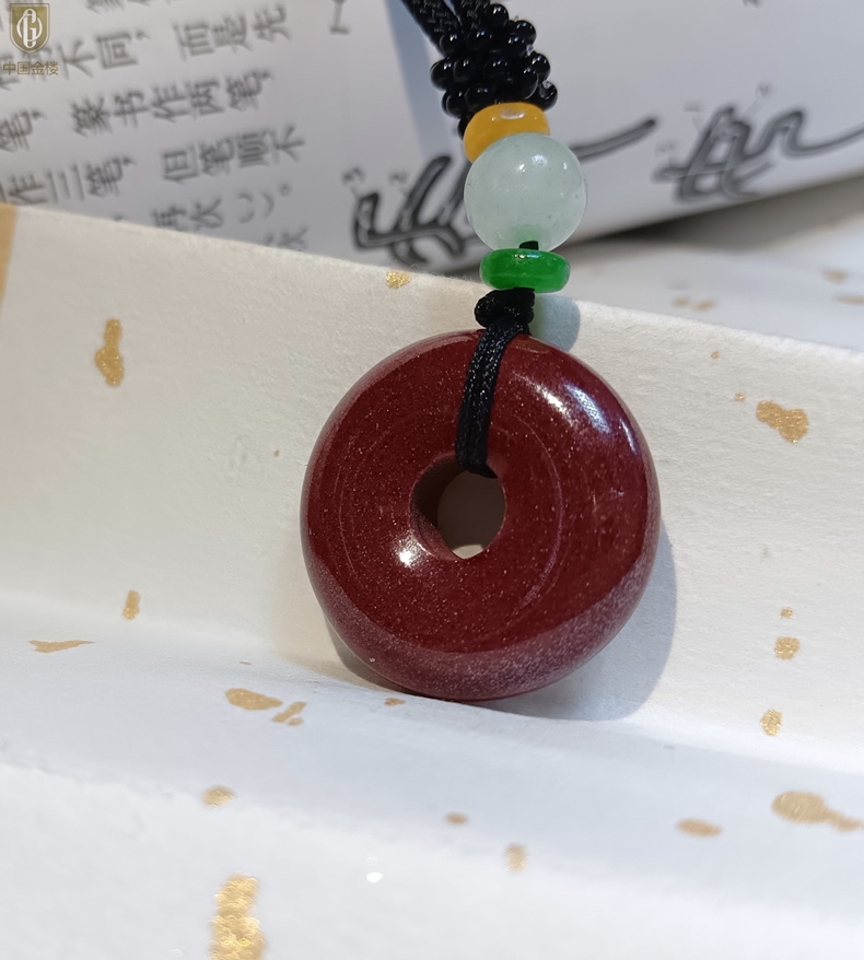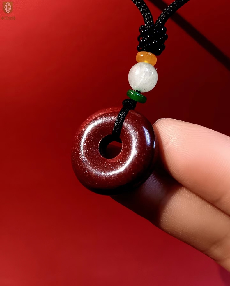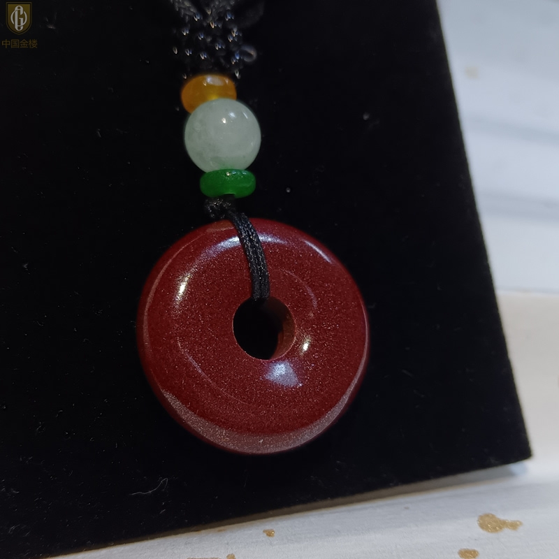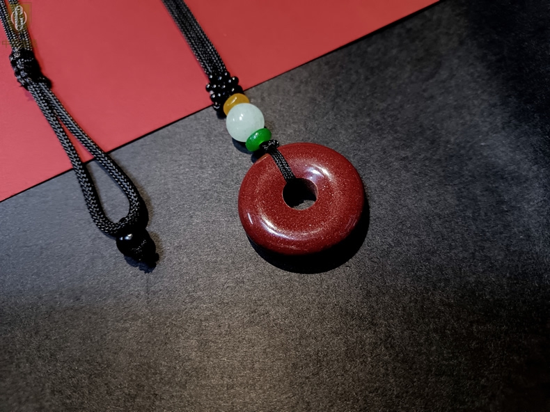 【品名】中国金楼天然原矿朱砂光面平安扣吊坠