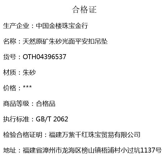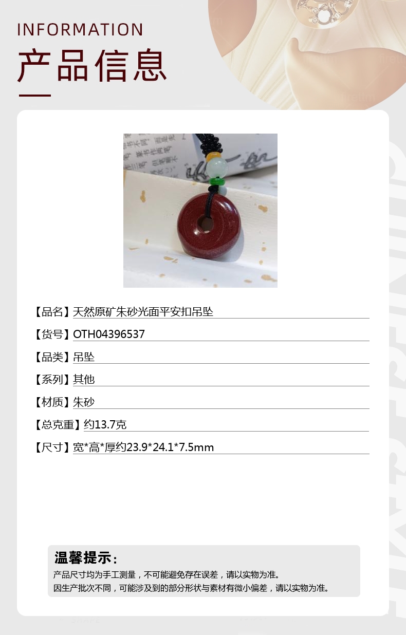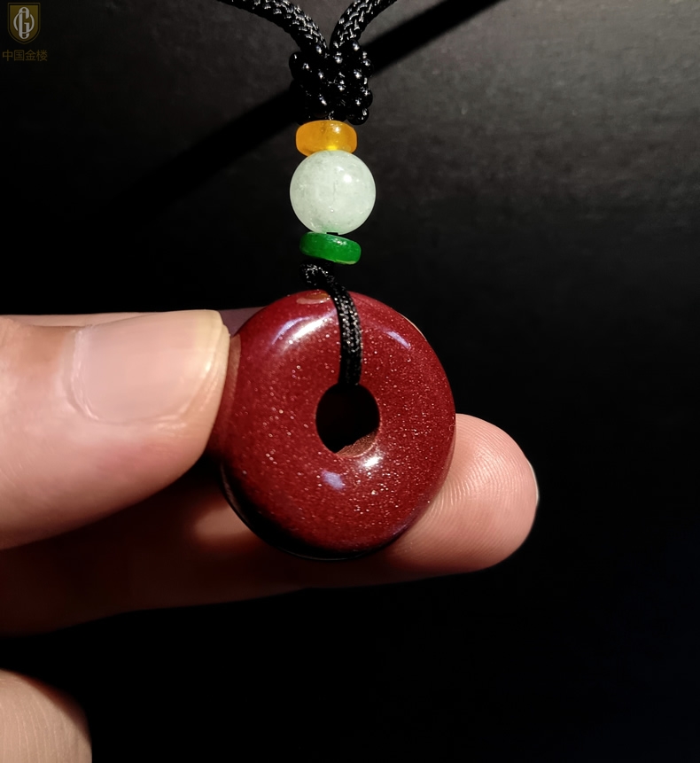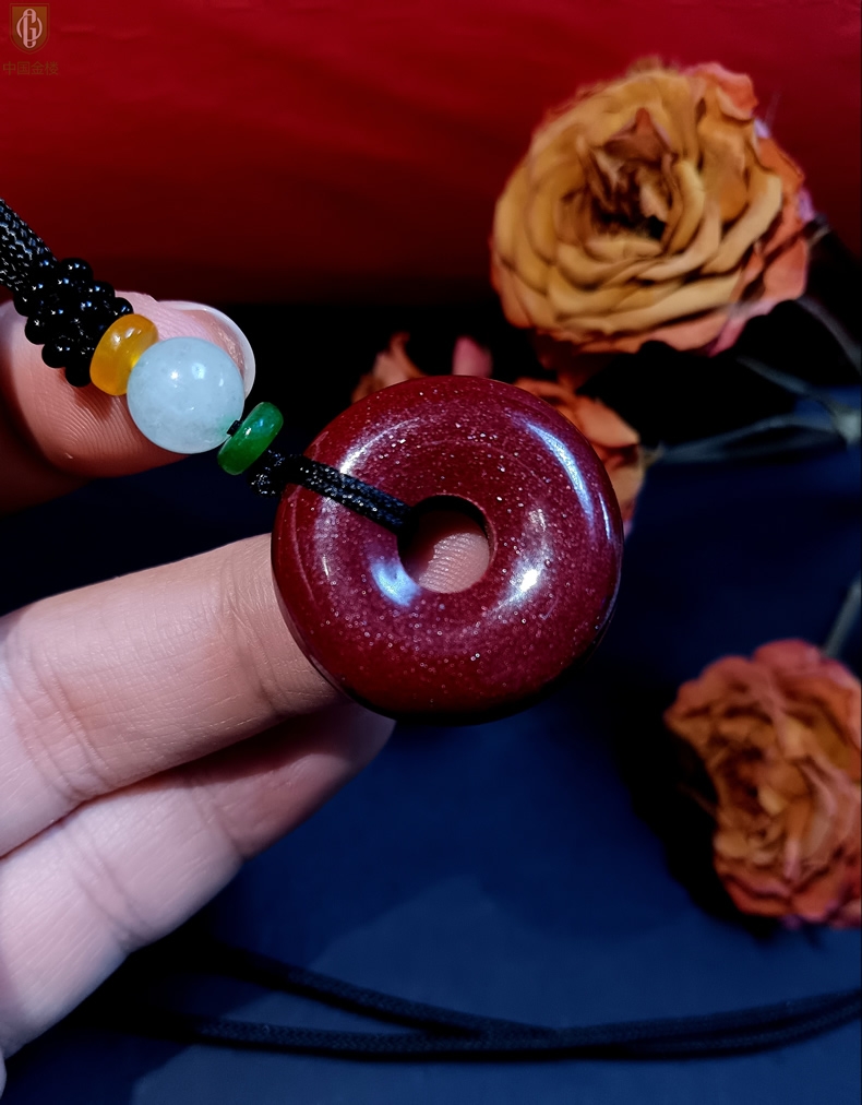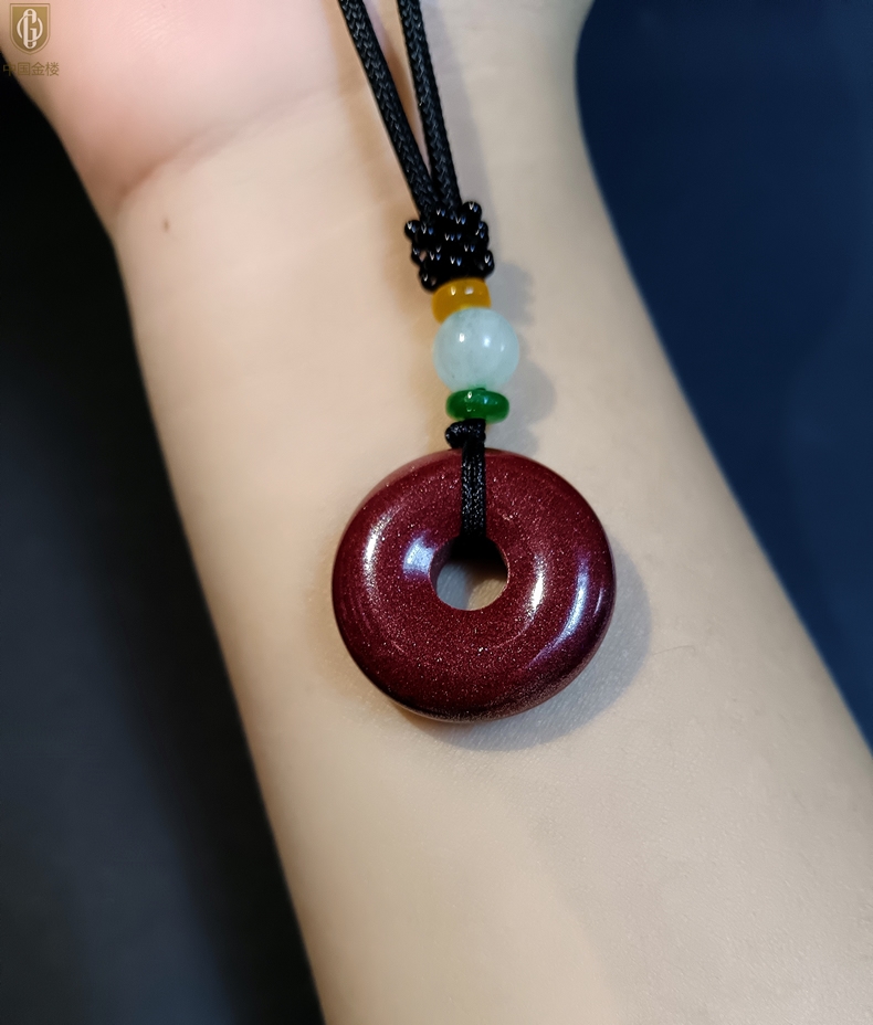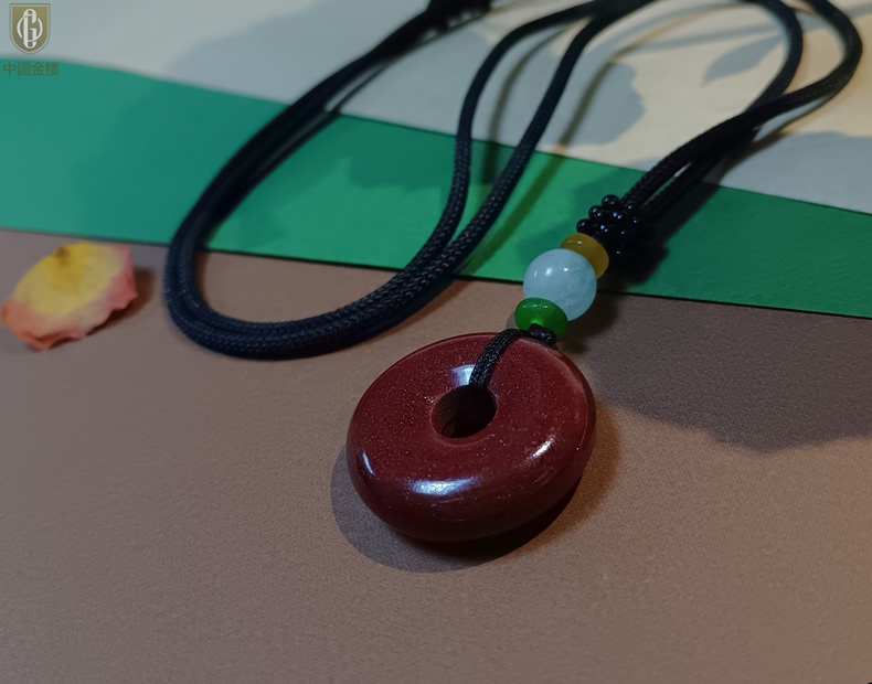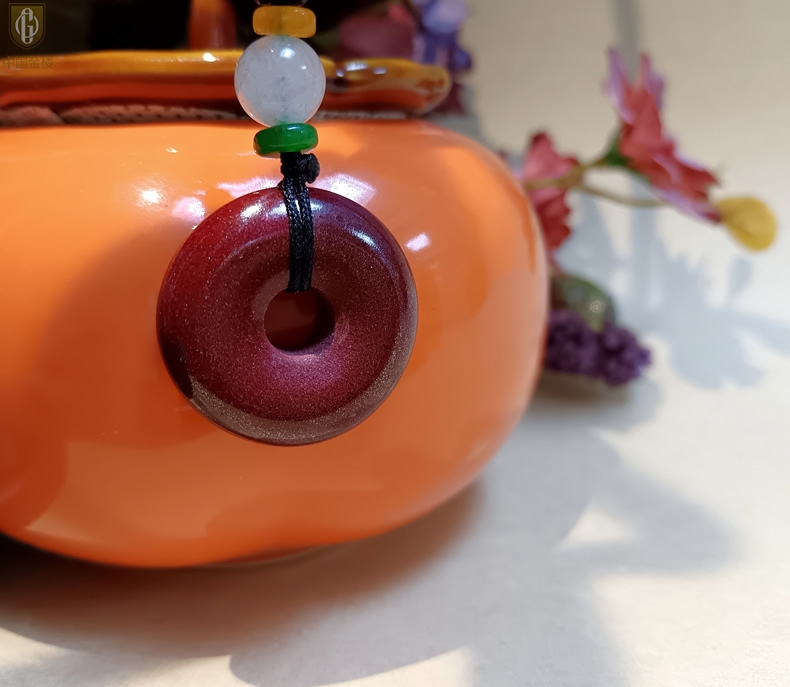 【品名】中国金楼天然原矿朱砂光面平安扣吊坠