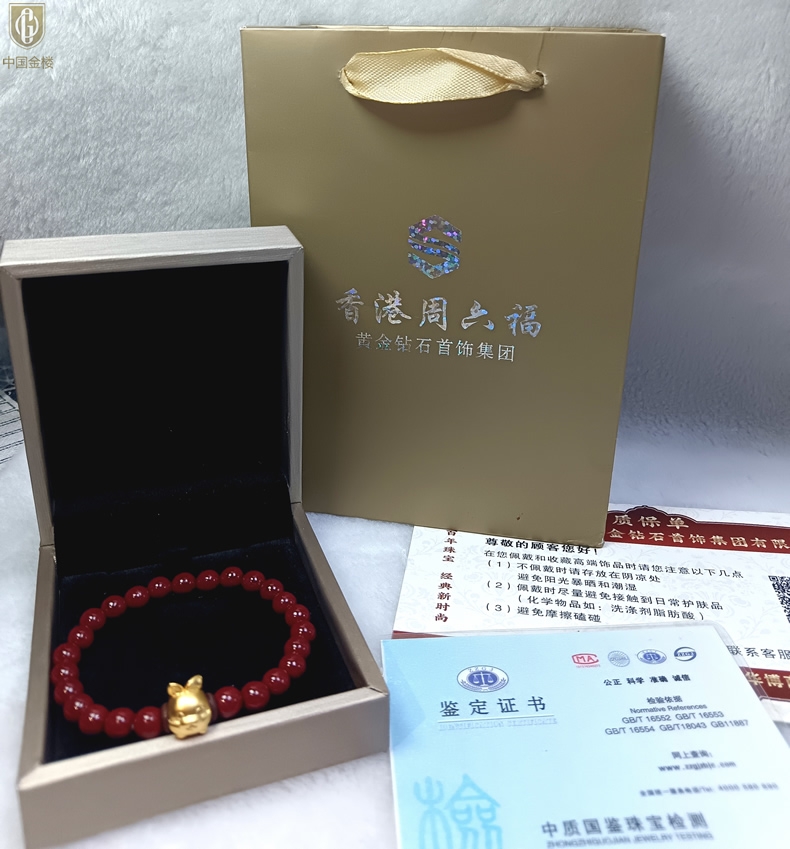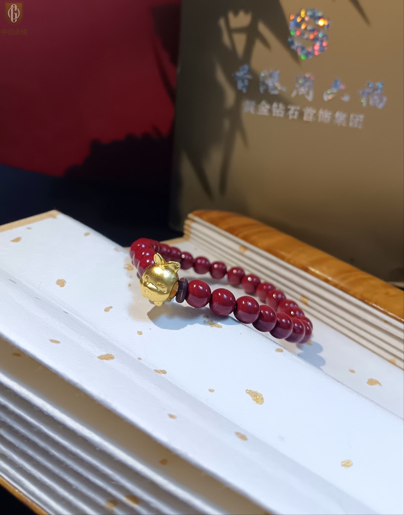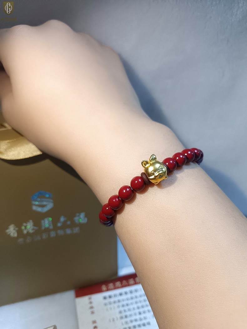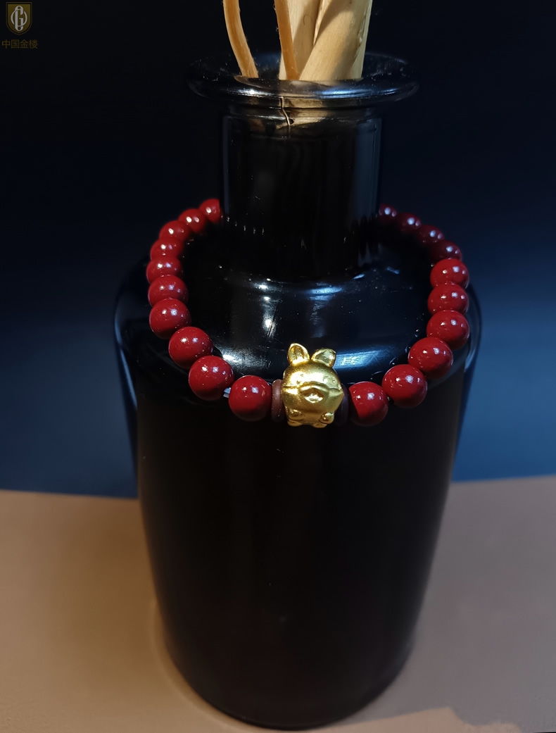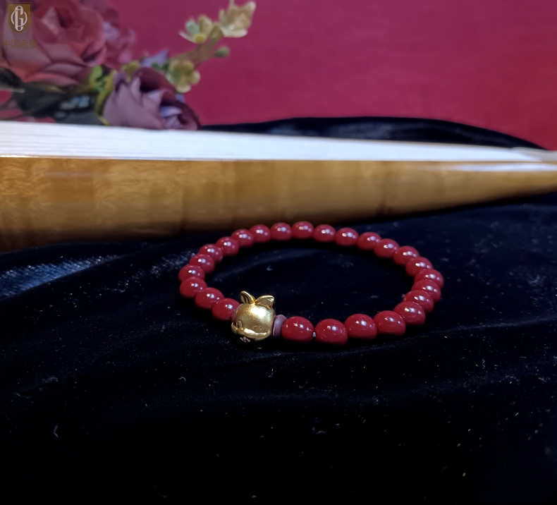 【品名】中国金楼兔-天然原矿朱砂K金十二生肖手链