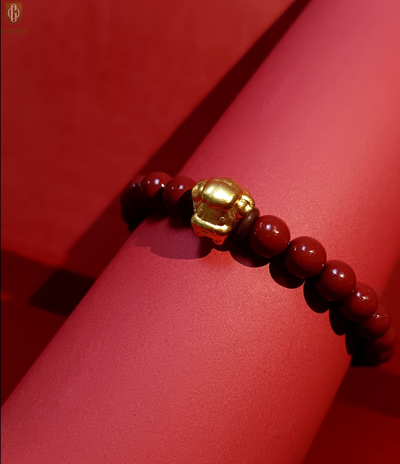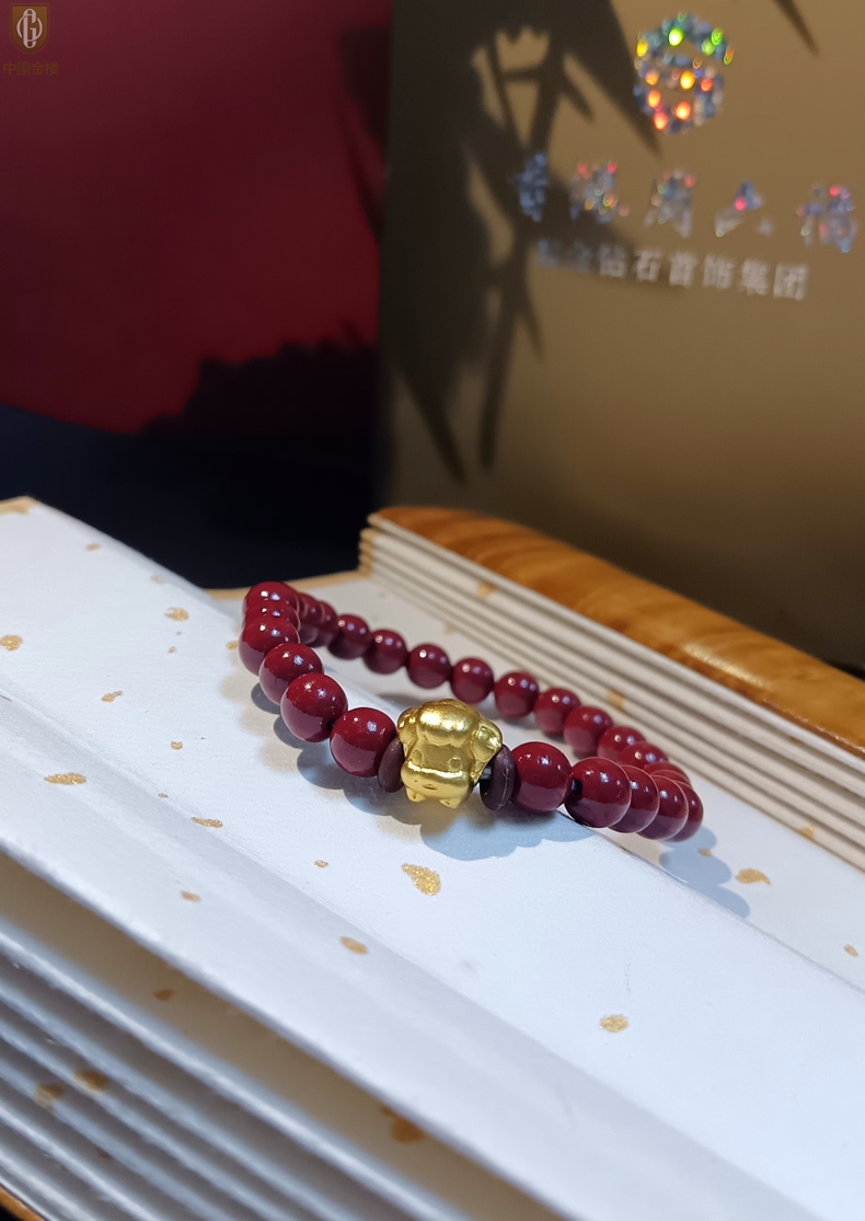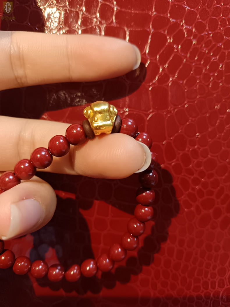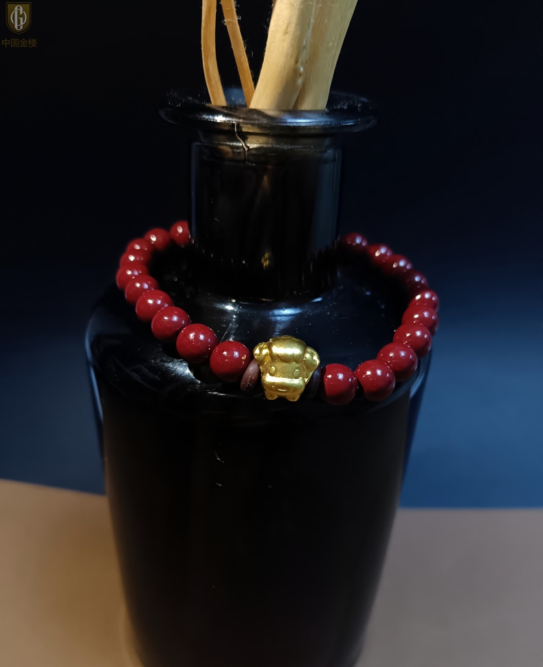 【品名】中国金楼羊-天然原矿朱砂K金十二生肖手链