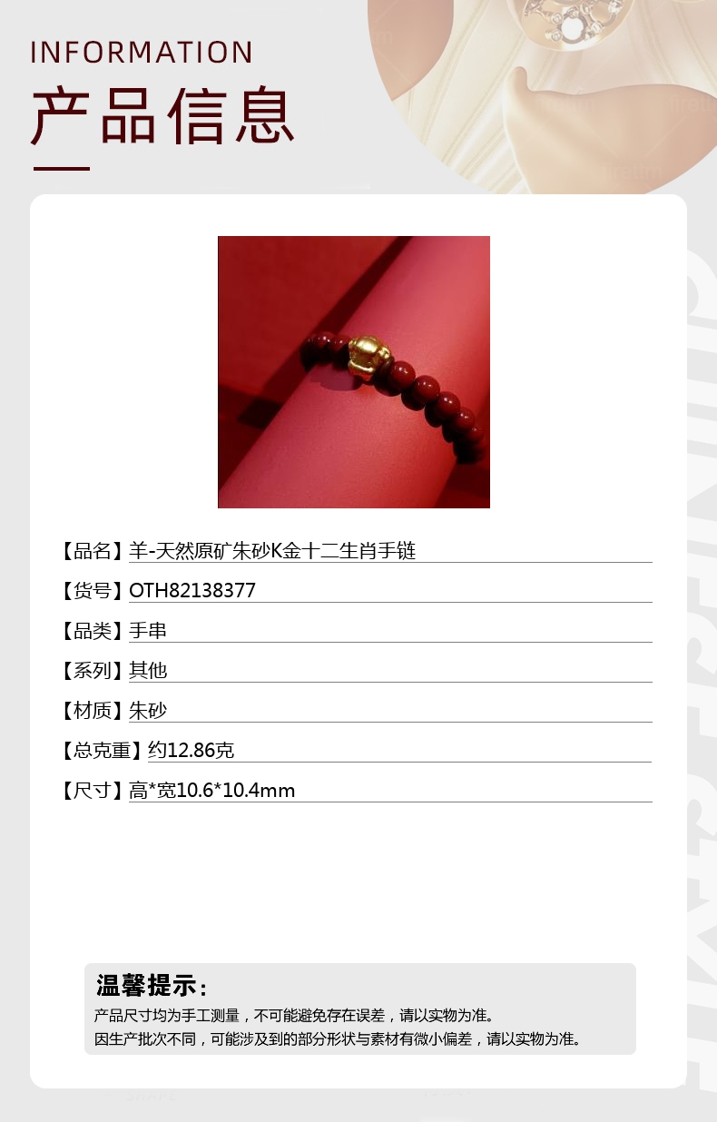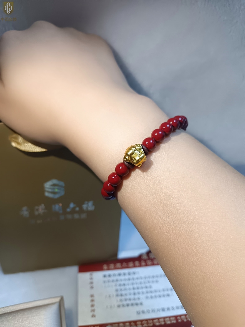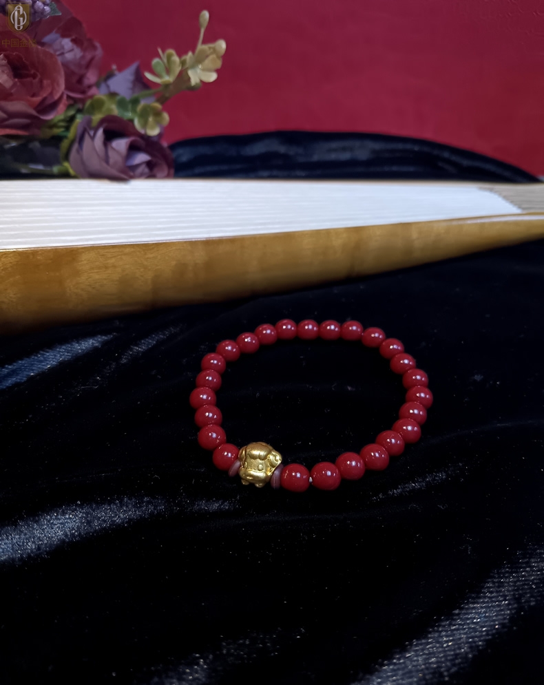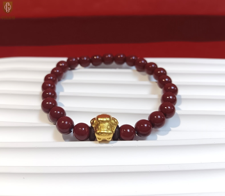 【品名】中国金楼羊-天然原矿朱砂K金十二生肖手链