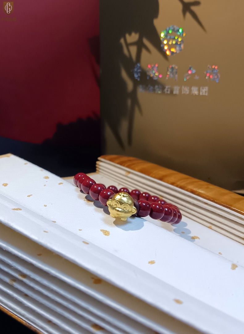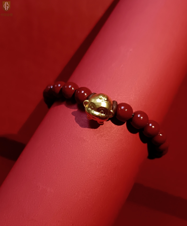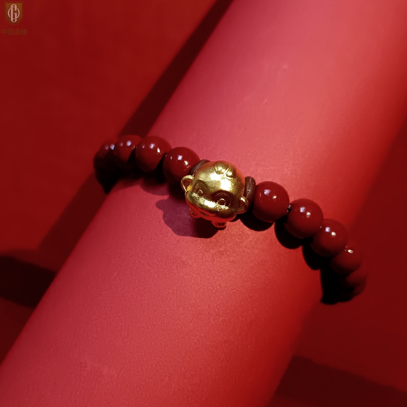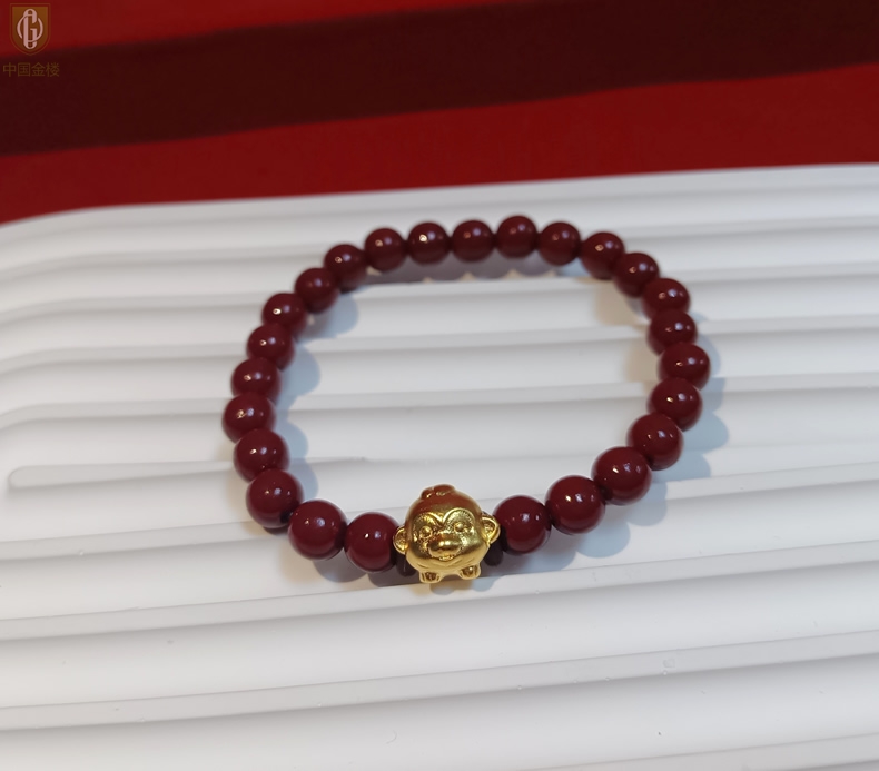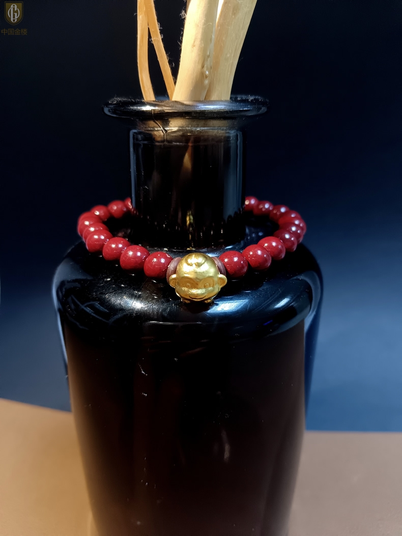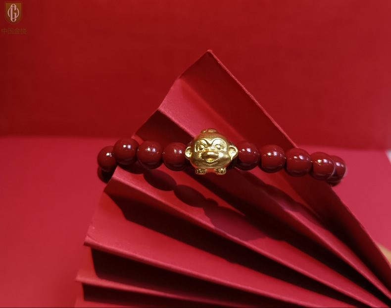 【品名】中国金楼猴-天然原矿朱砂K金十二生肖手链