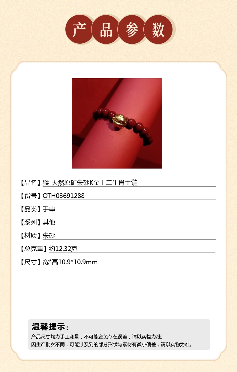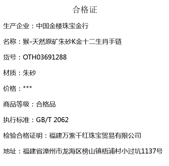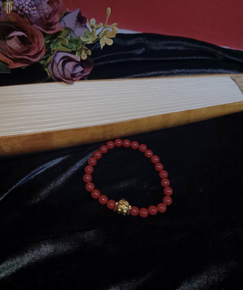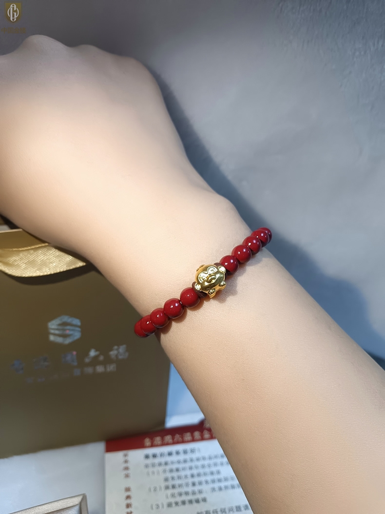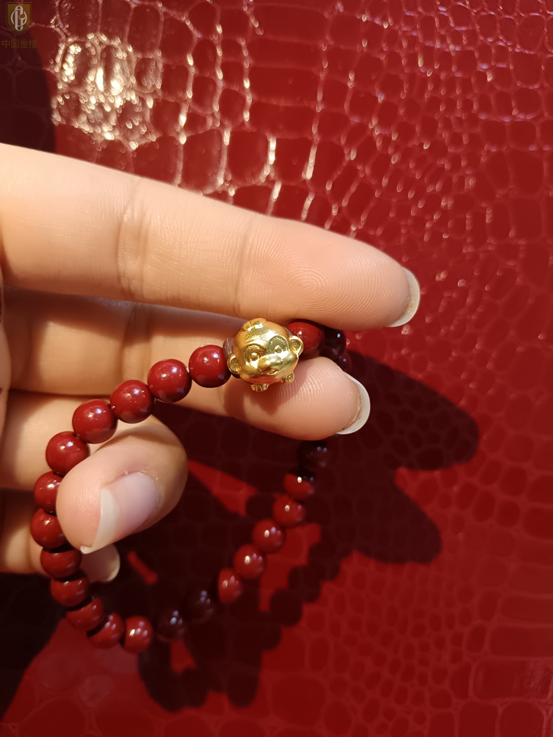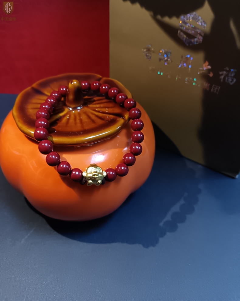 【品名】中国金楼猴-天然原矿朱砂K金十二生肖手链