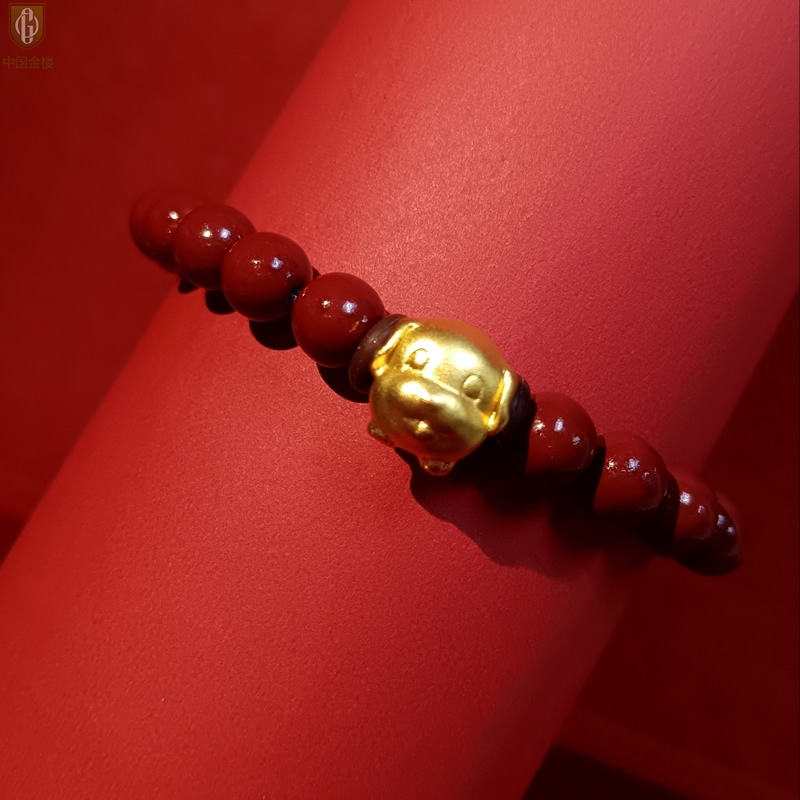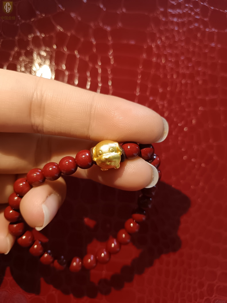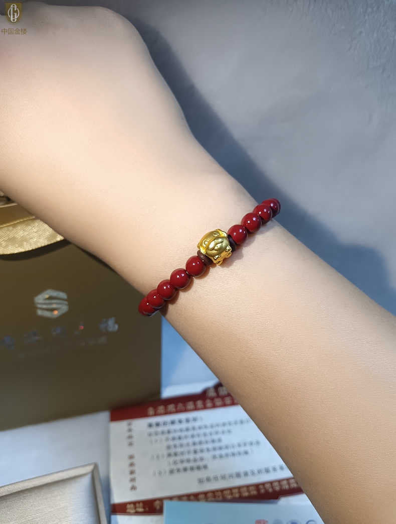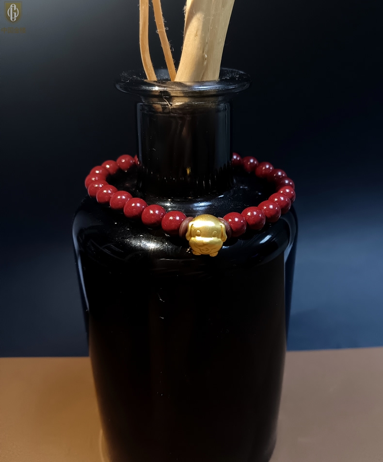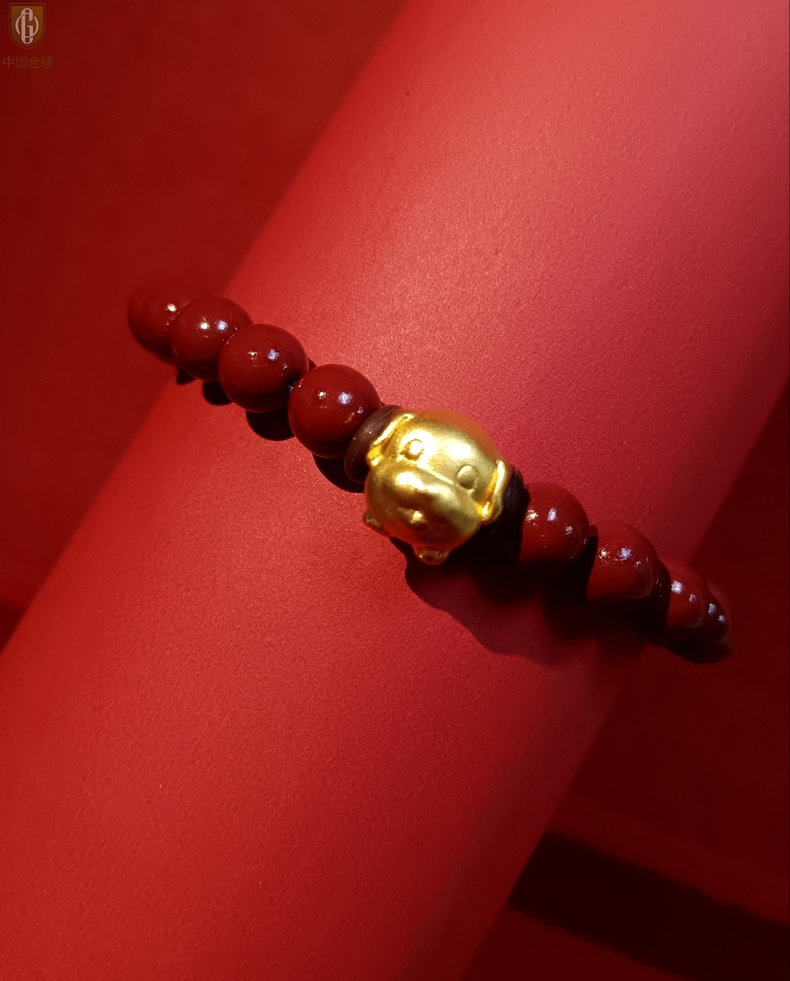 【品名】中国金楼狗-天然原矿朱砂K金十二生肖手链