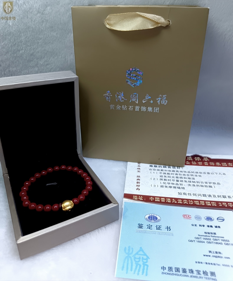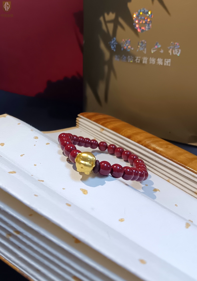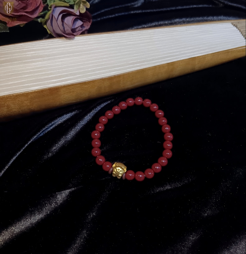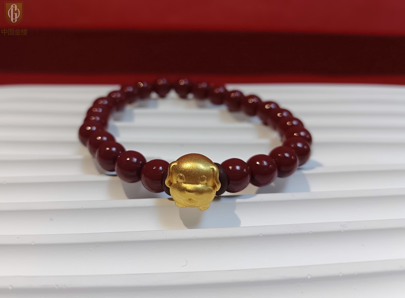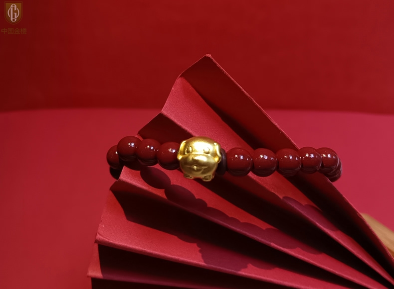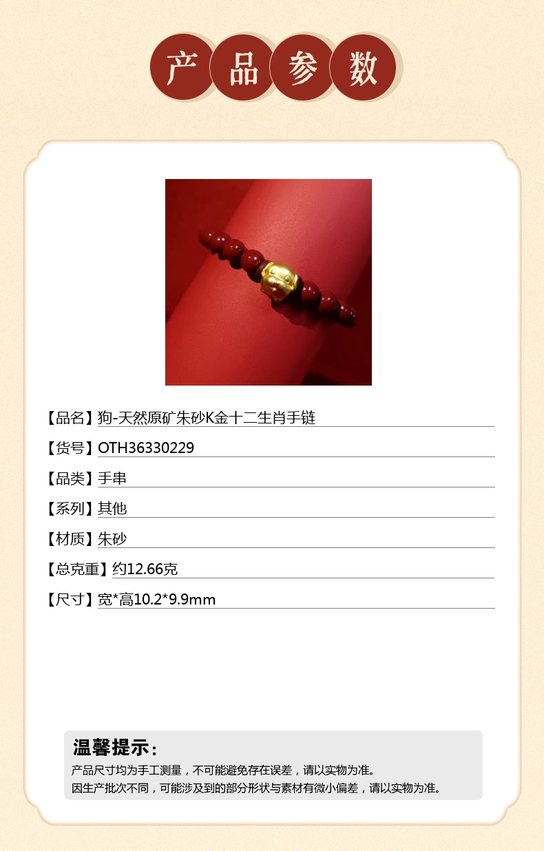 【品名】中国金楼狗-天然原矿朱砂K金十二生肖手链
