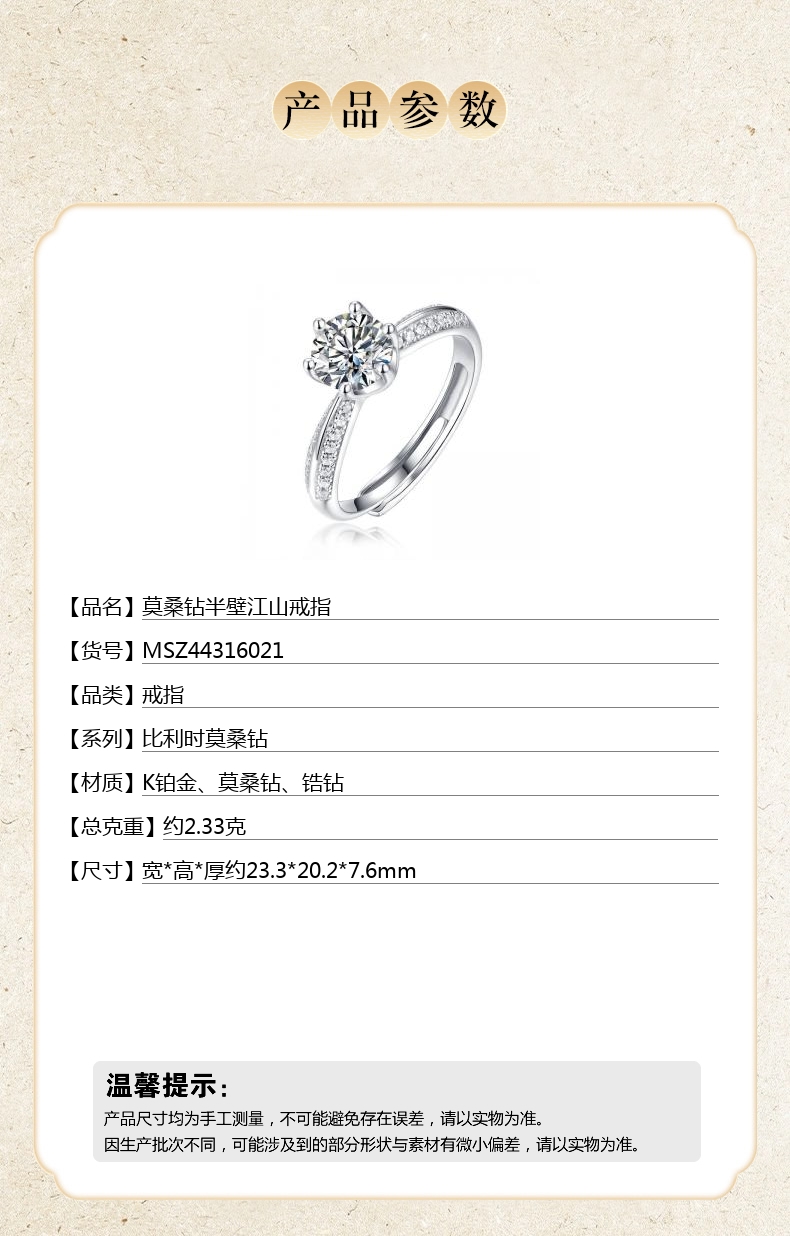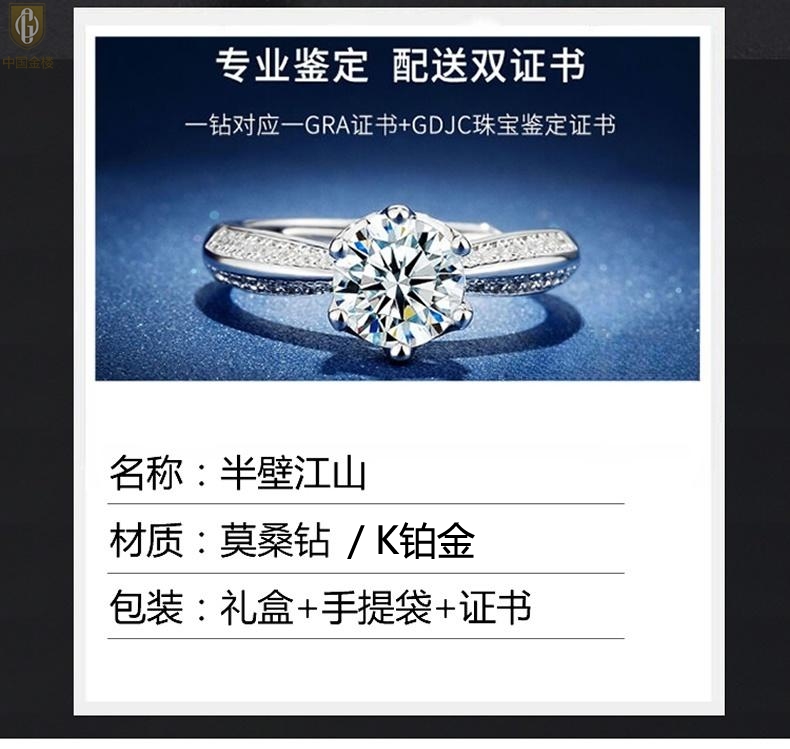 【品名】中国金楼莫桑钻半壁江山戒指