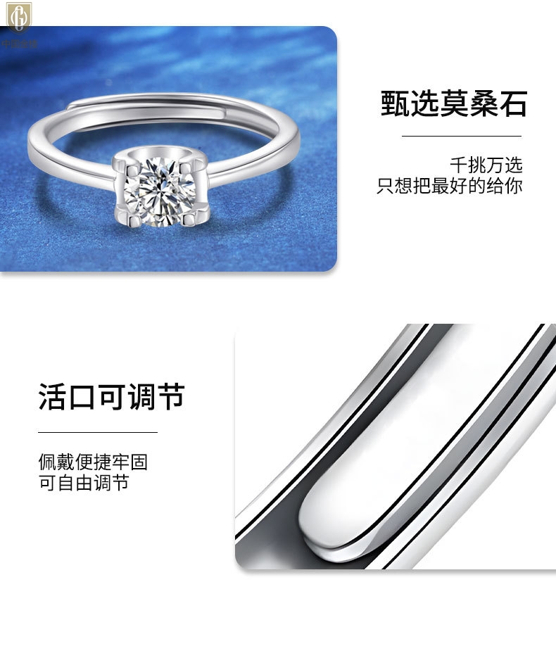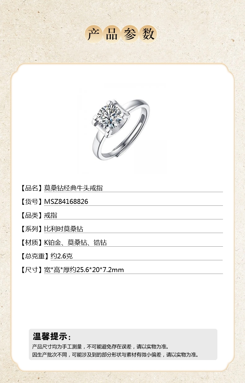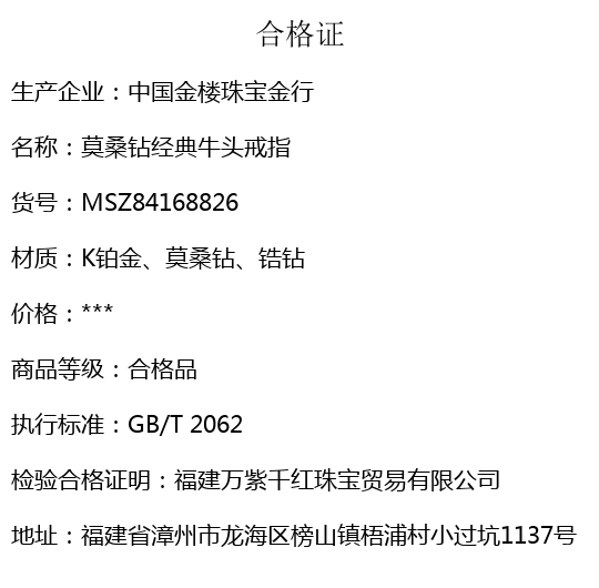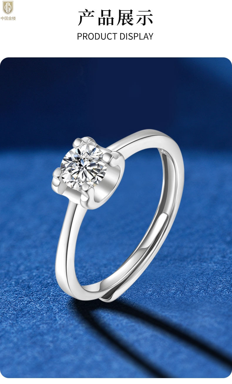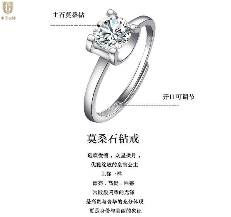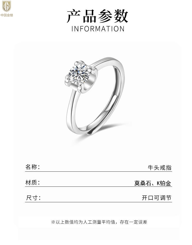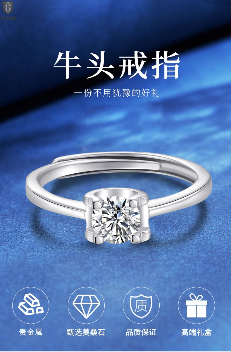 【品名】中国金楼莫桑钻经典牛头戒指