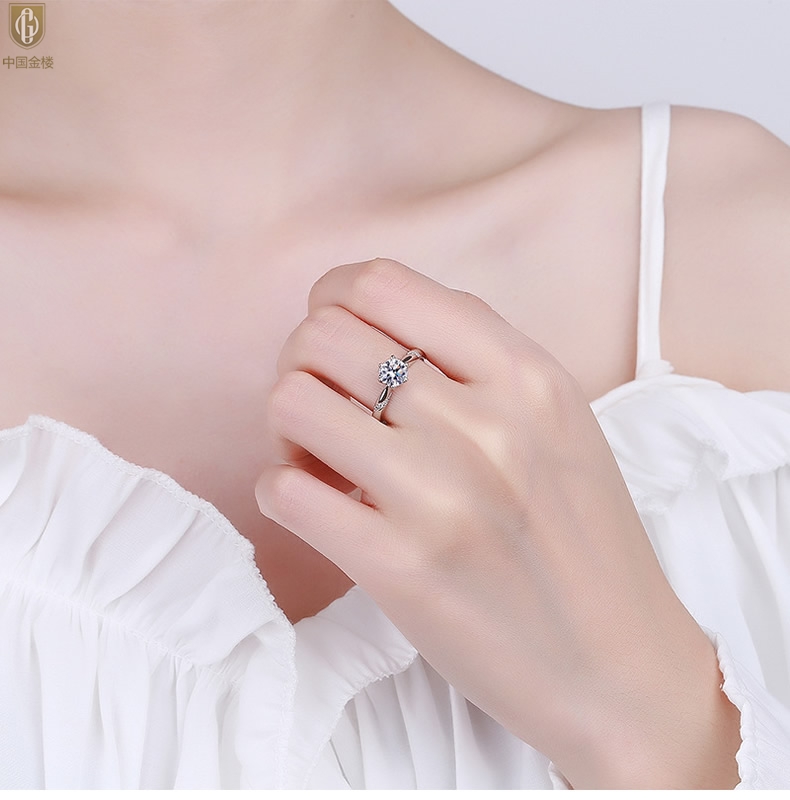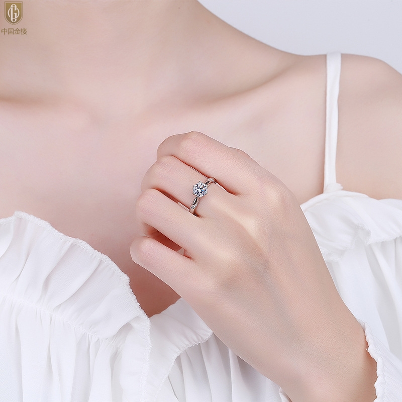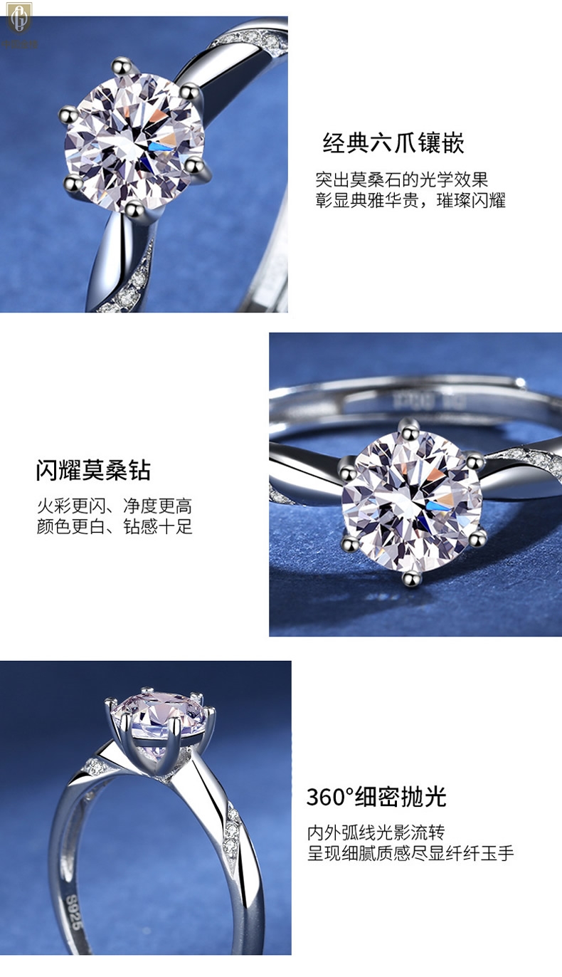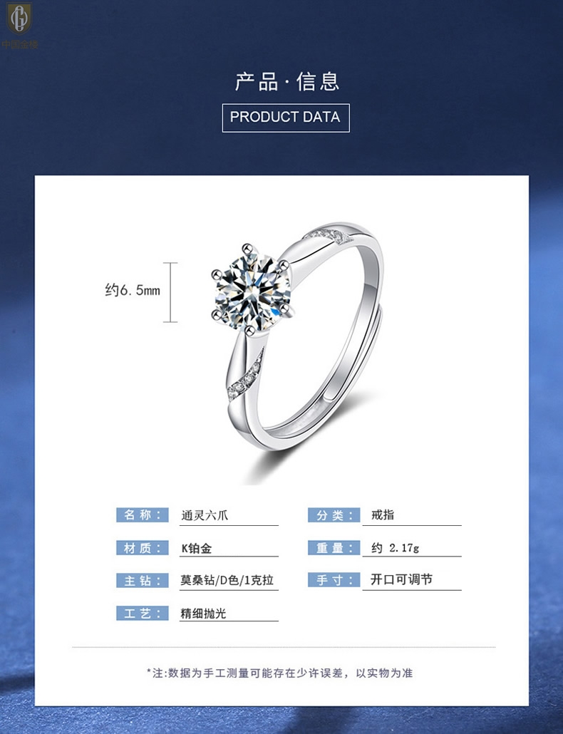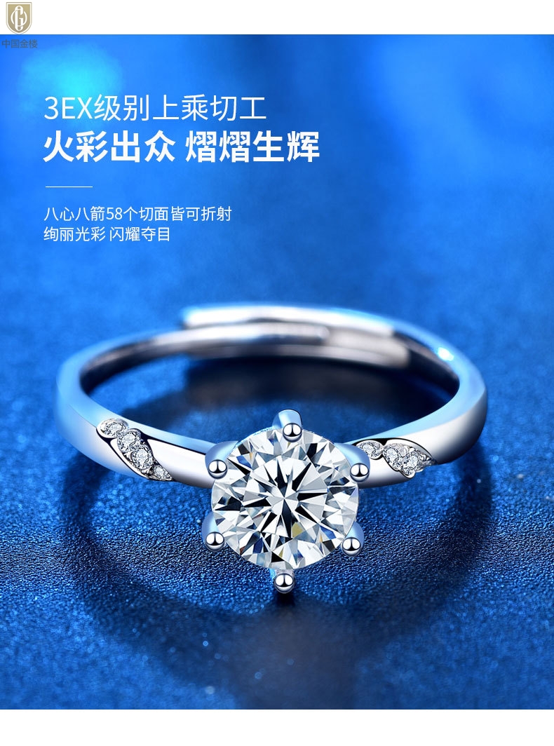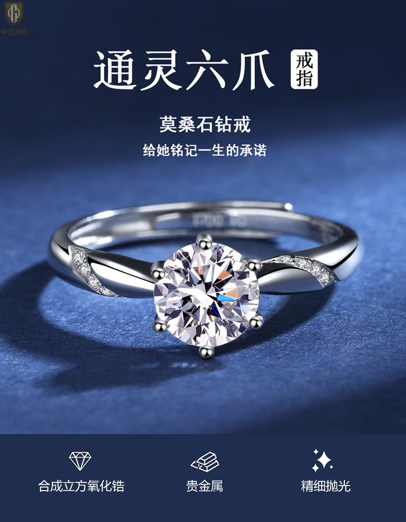 【品名】中国金楼莫桑钻通灵六爪戒指