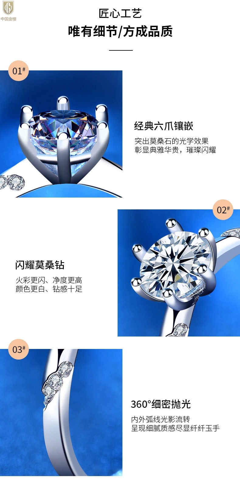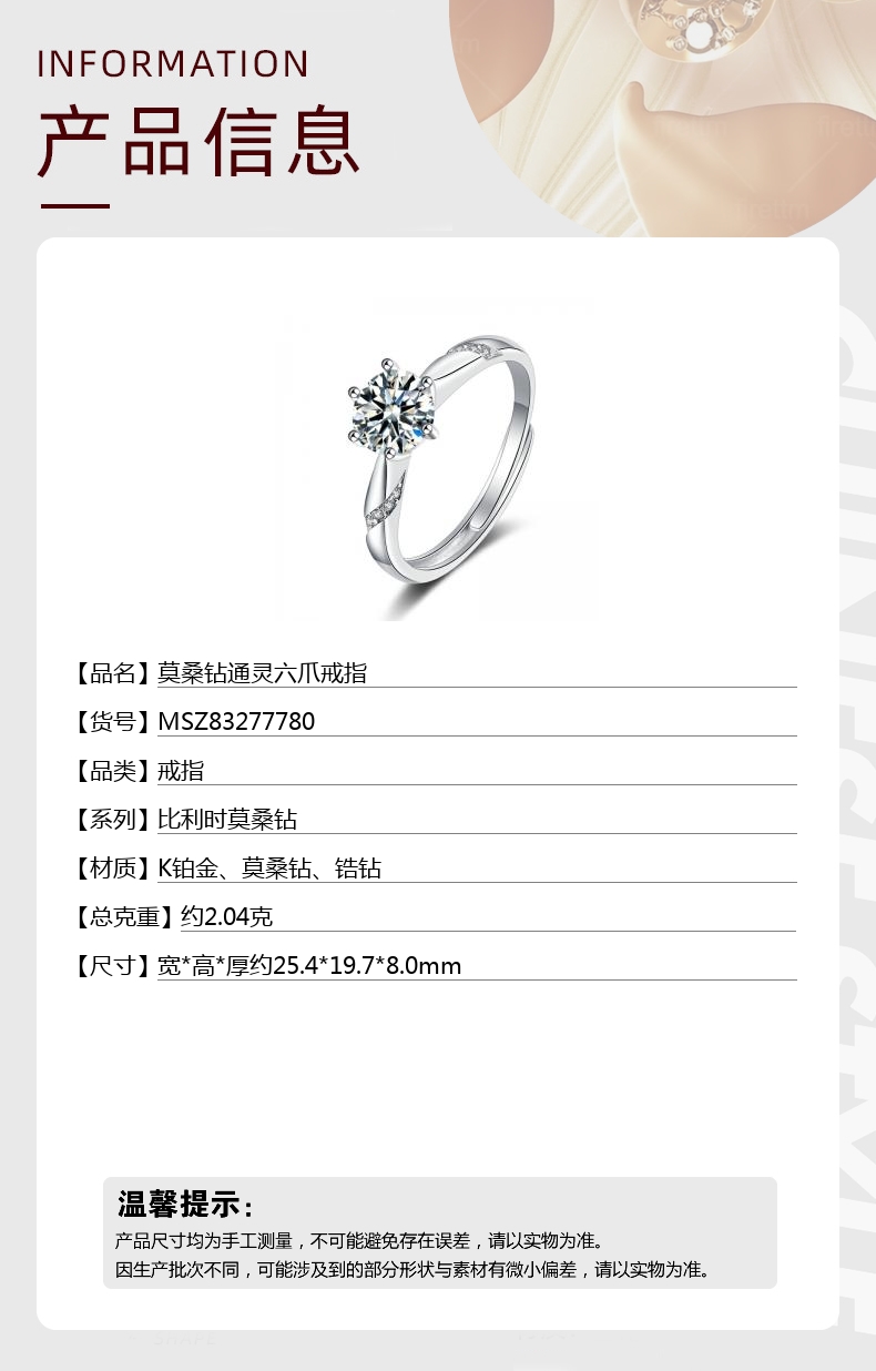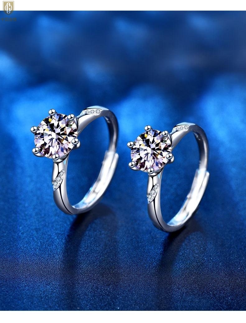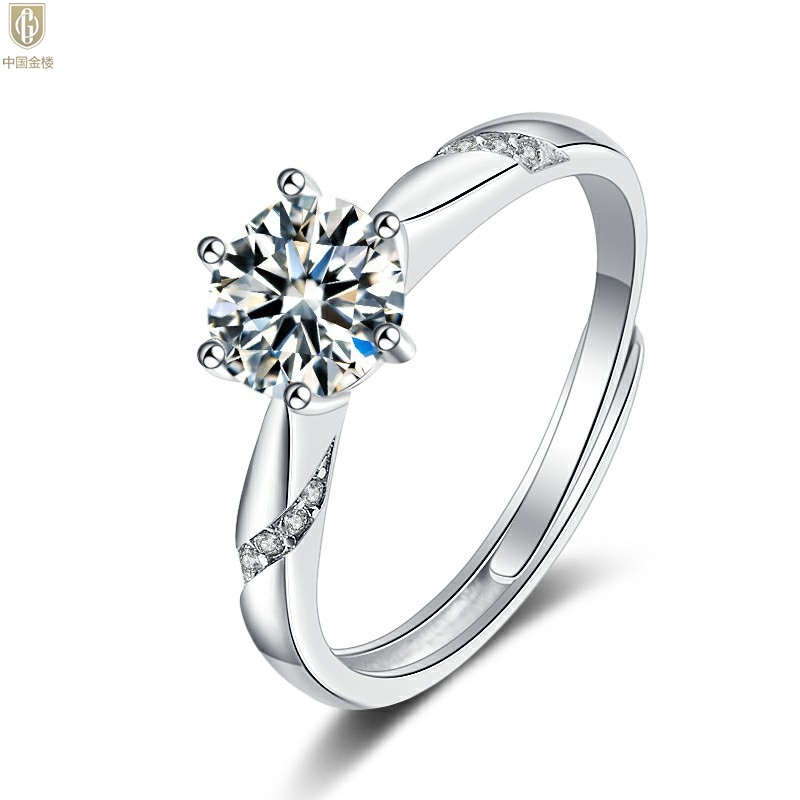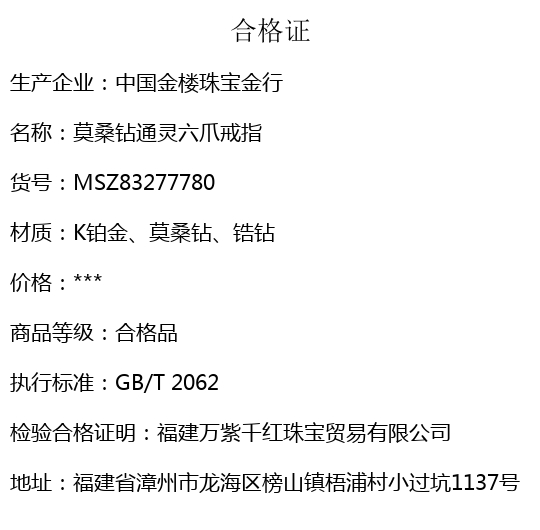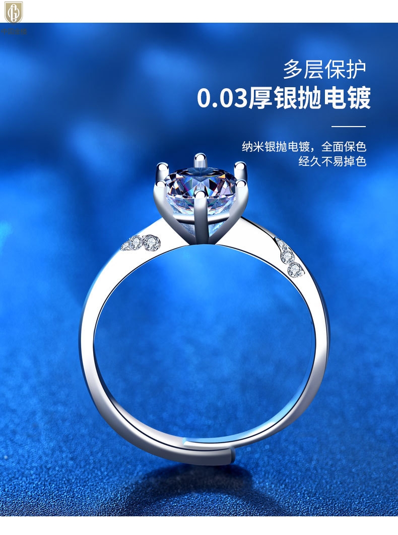 【品名】中国金楼莫桑钻通灵六爪戒指