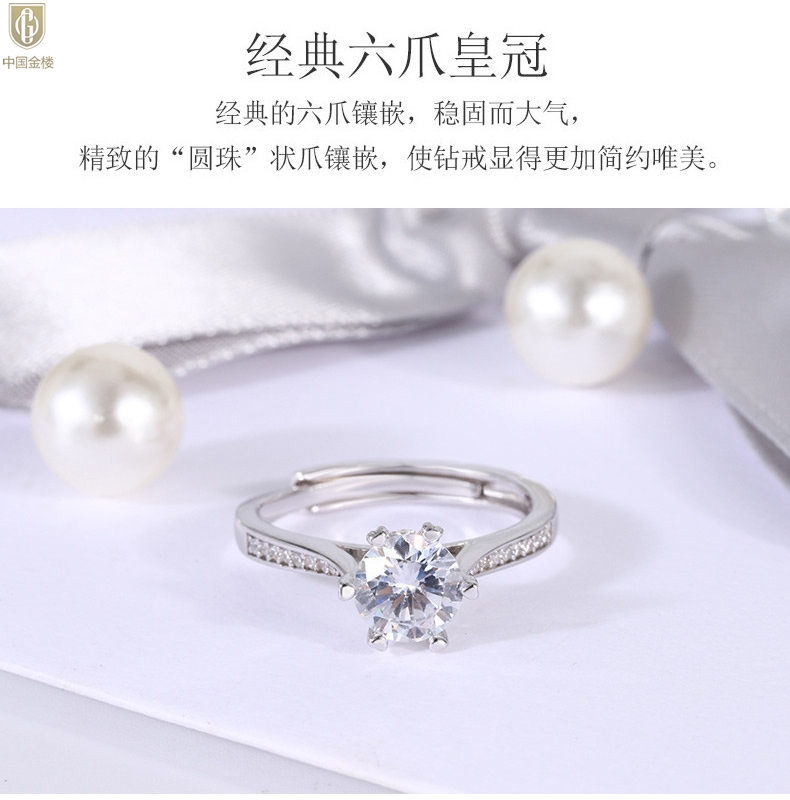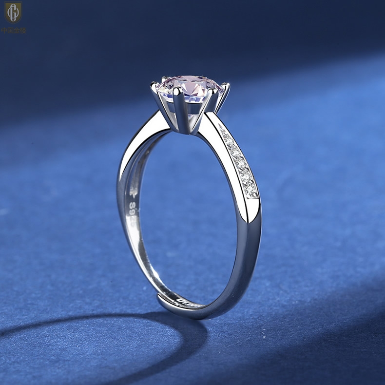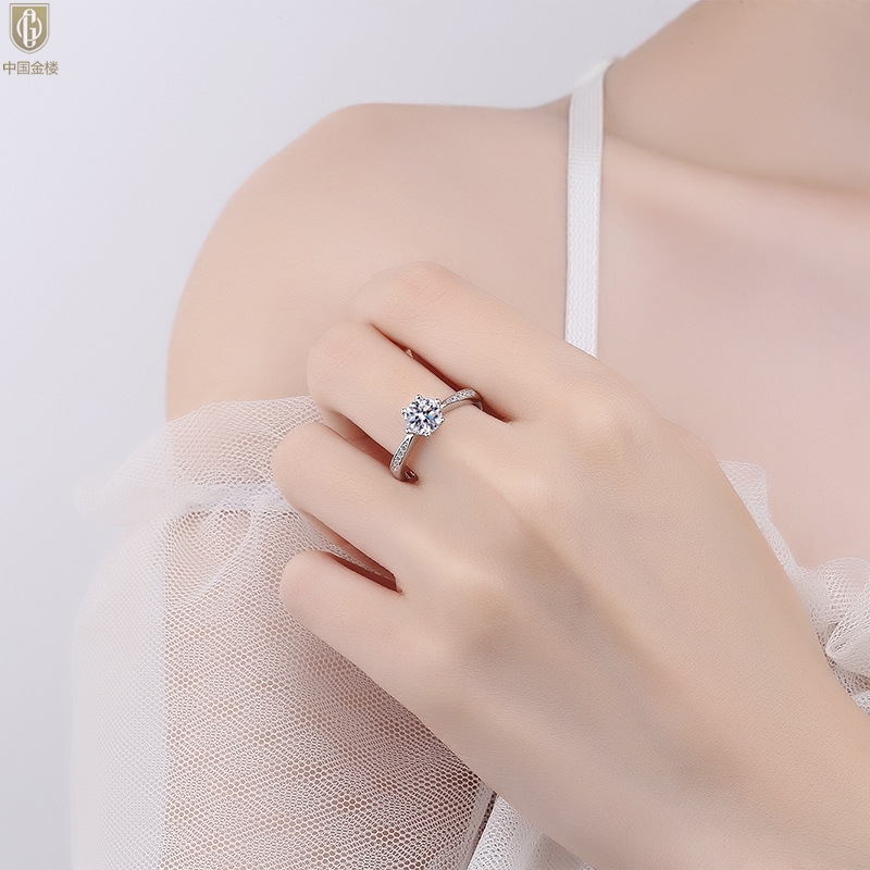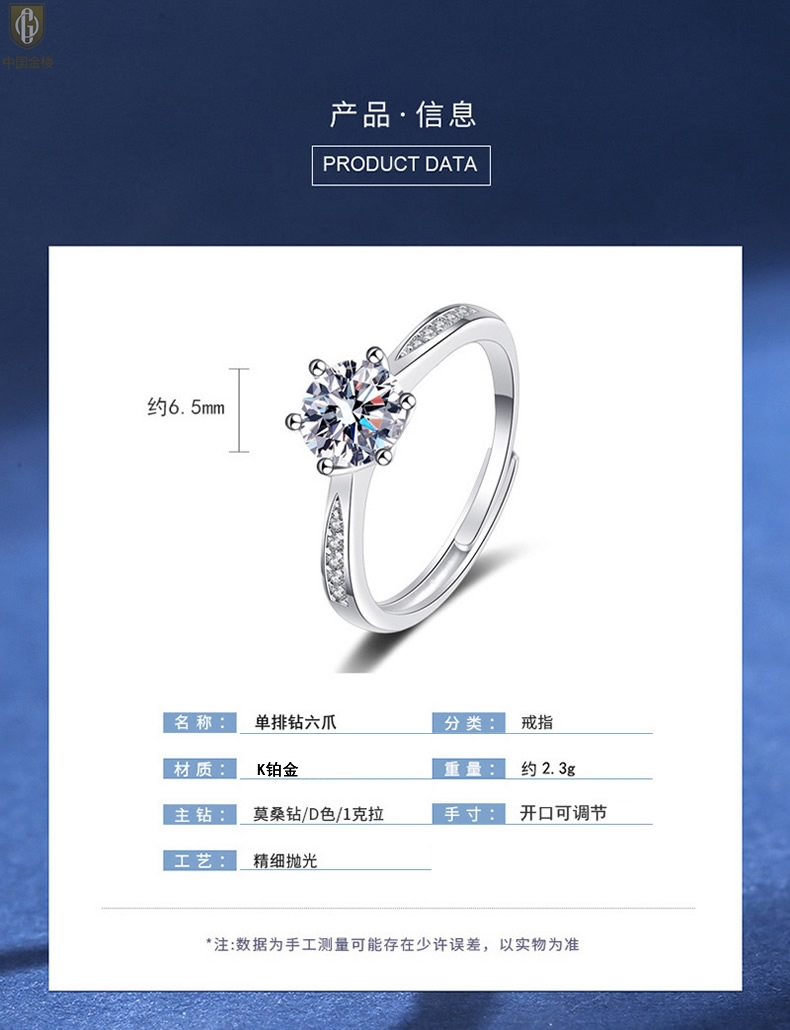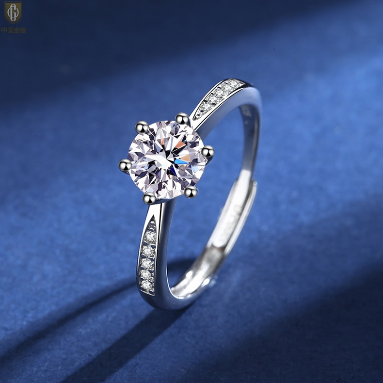 【品名】中国金楼莫桑钻微镶单排六爪戒指