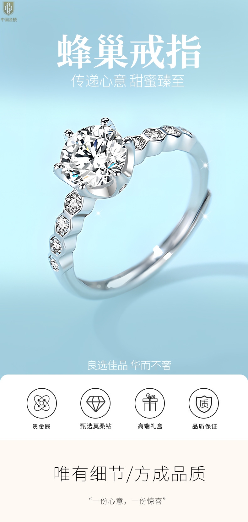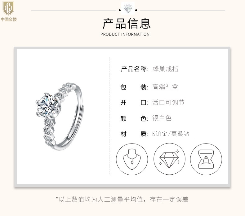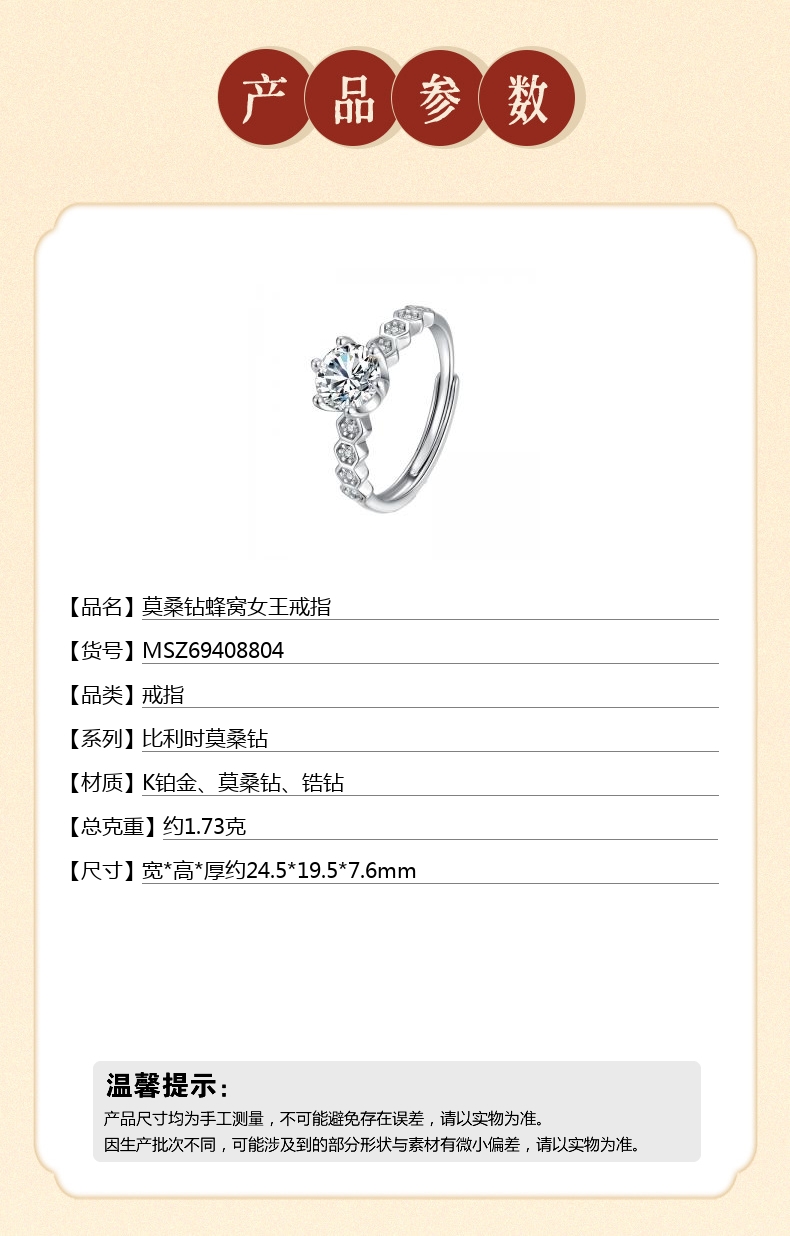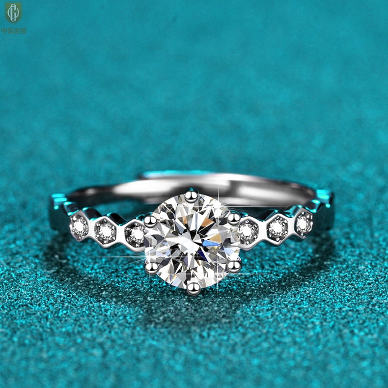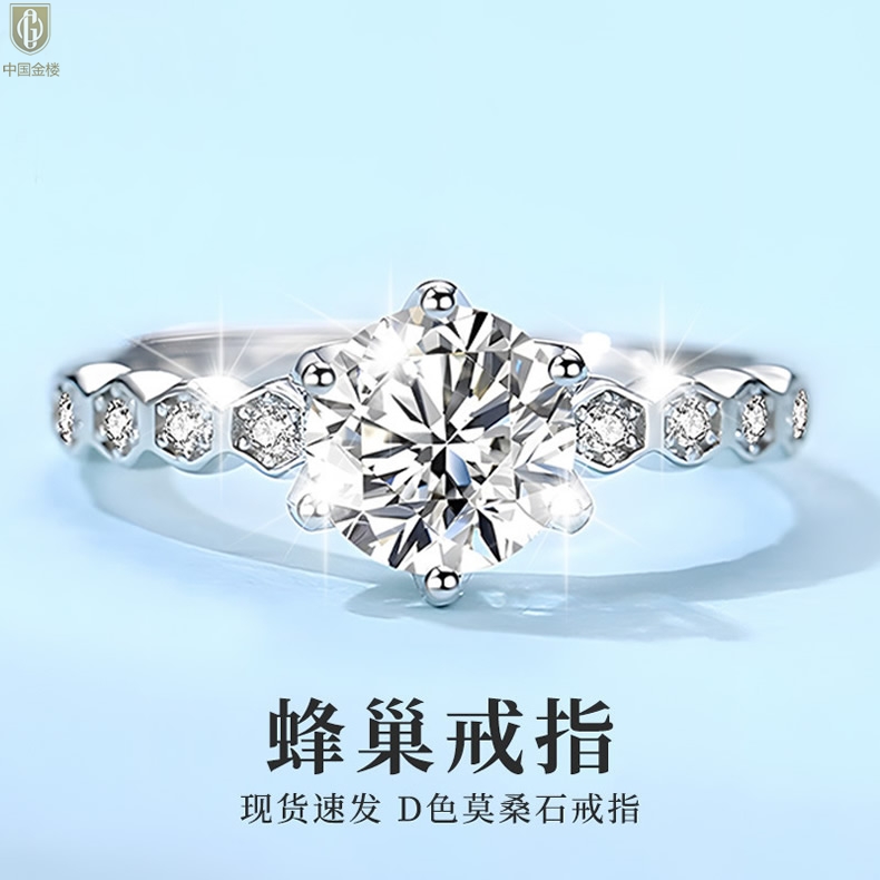 【品名】中国金楼莫桑钻蜂窝女王戒指