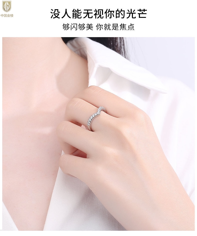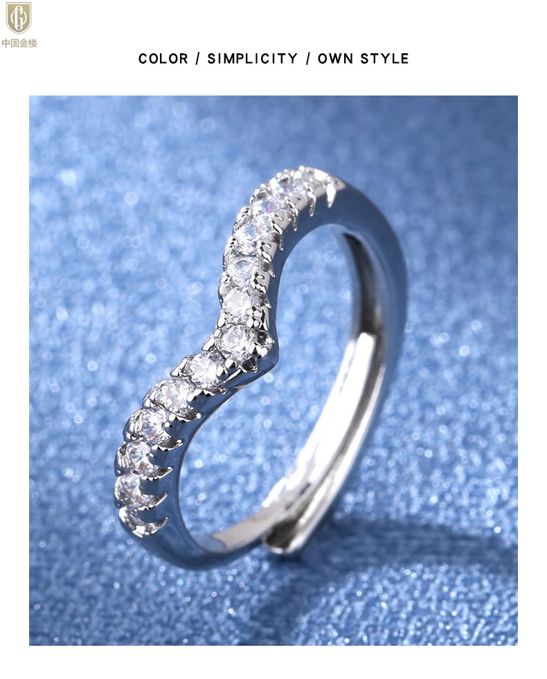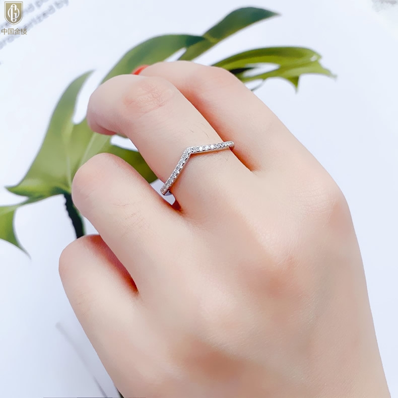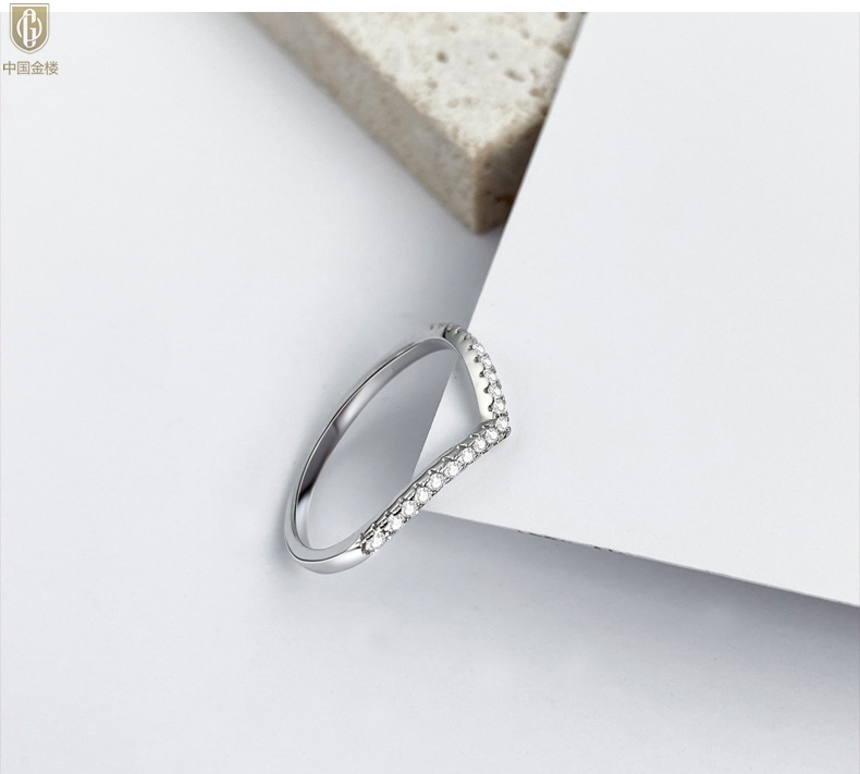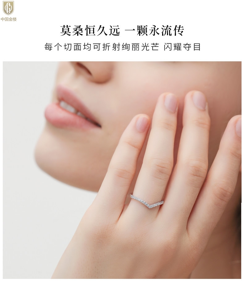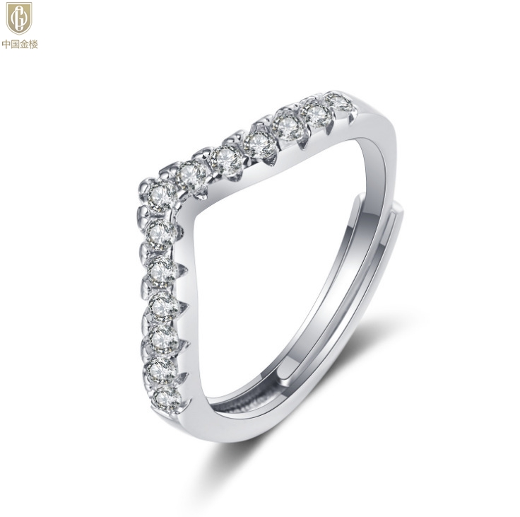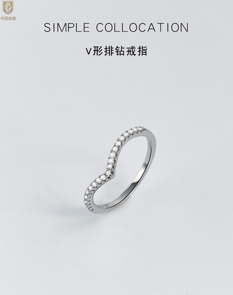 【品名】中国金楼莫桑钻简约V排女戒