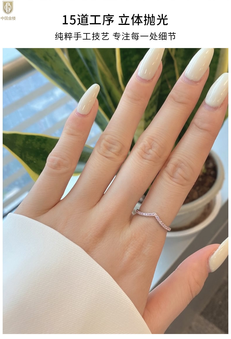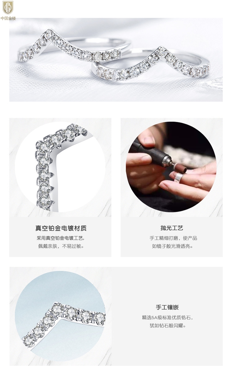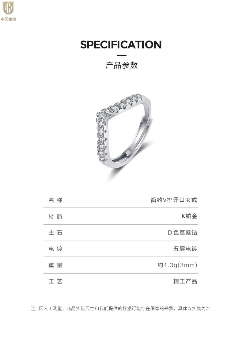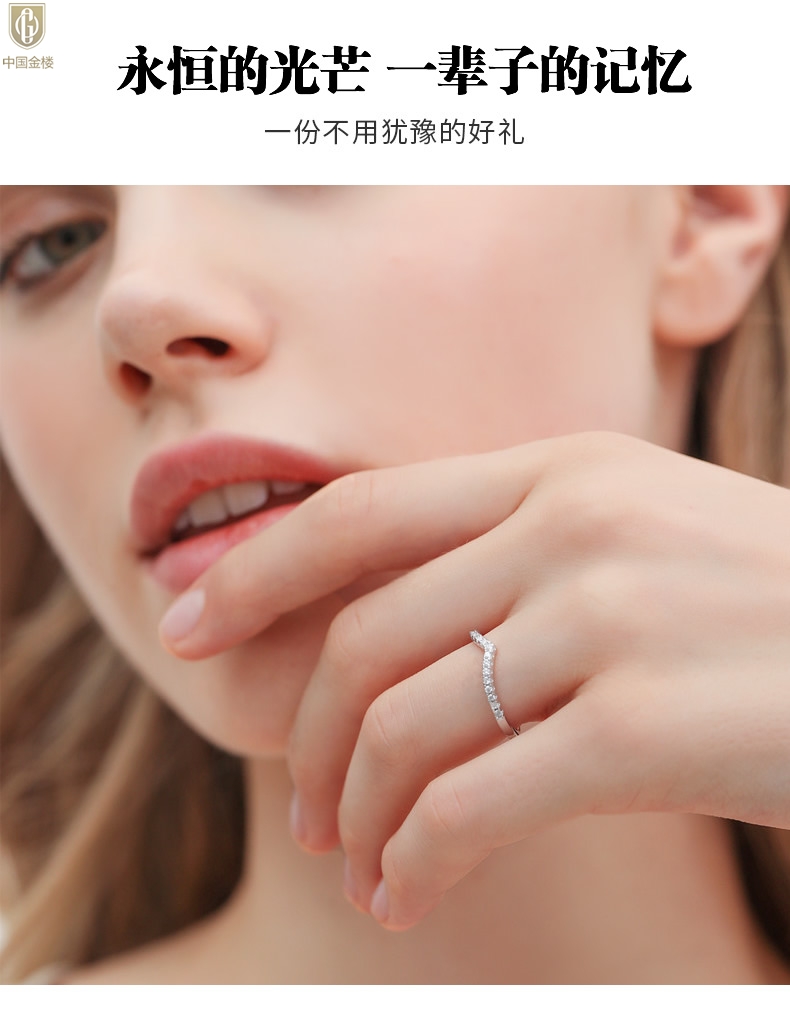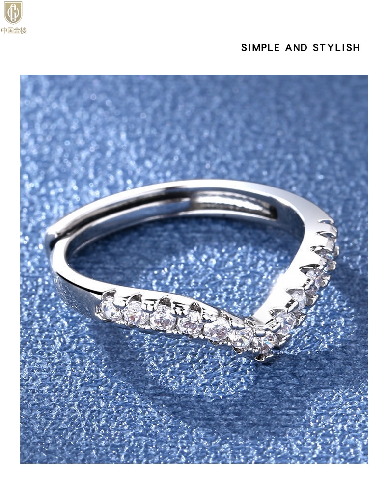 【品名】中国金楼莫桑钻简约V排女戒