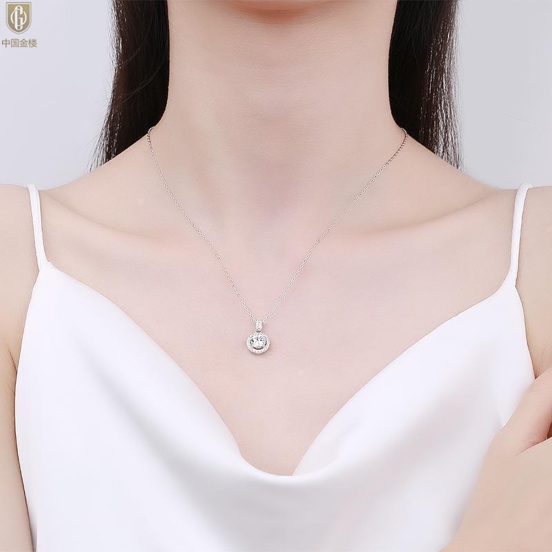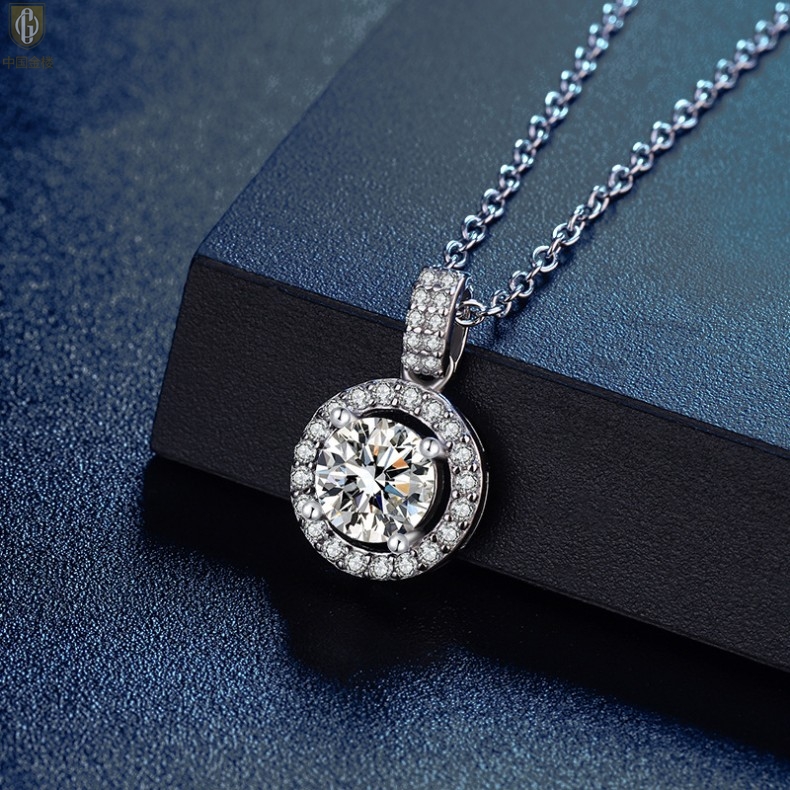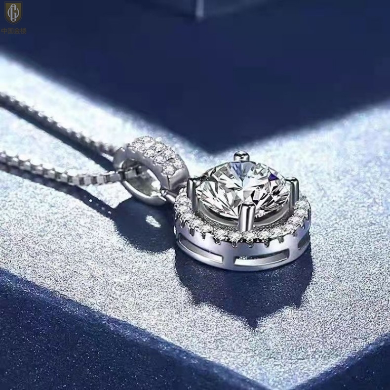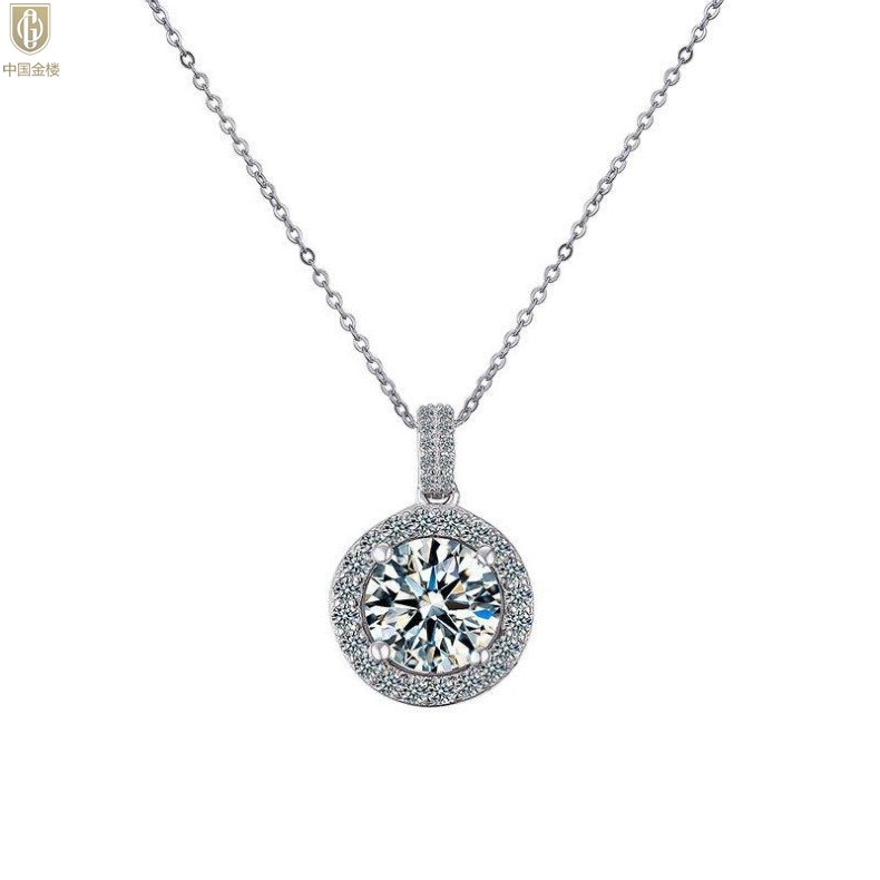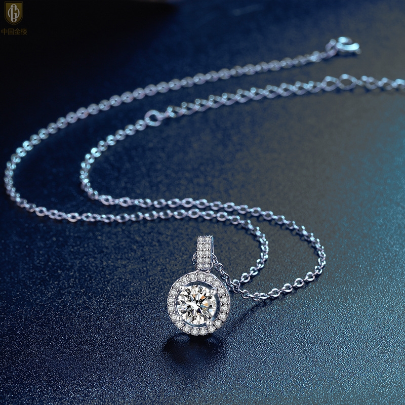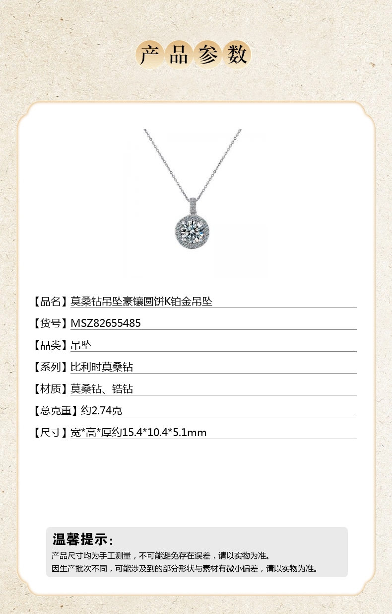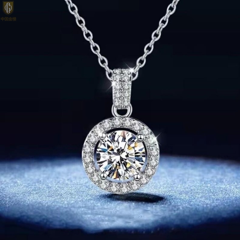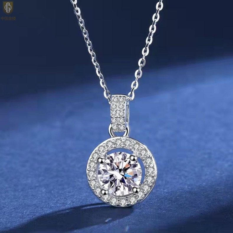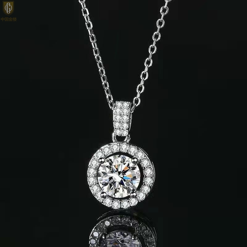 【品名】中国金楼莫桑钻吊坠豪镶圆饼K铂金吊坠