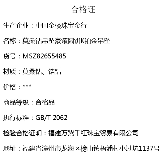 【套装包含】首饰+礼品盒+礼品袋+国检证书+质保单+价签