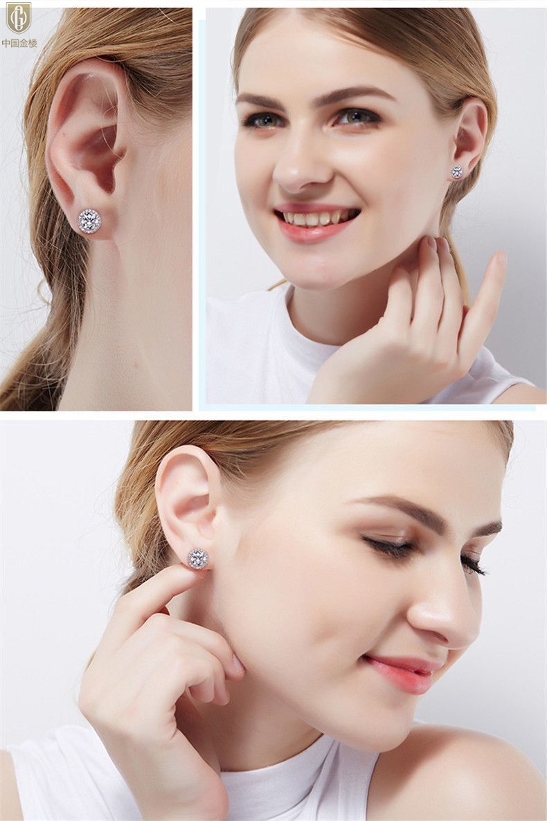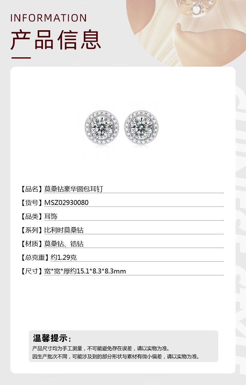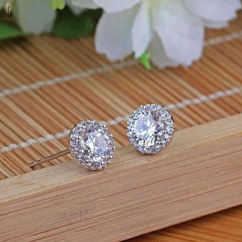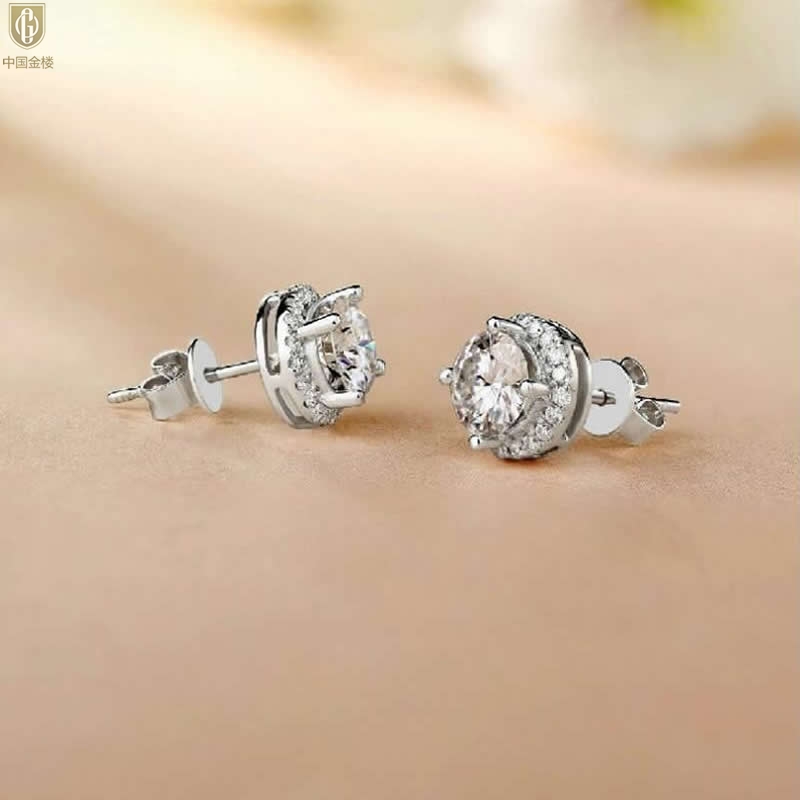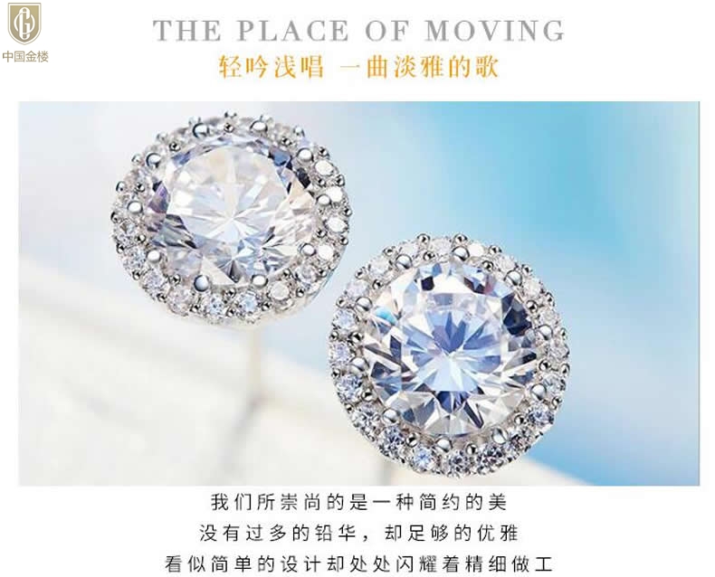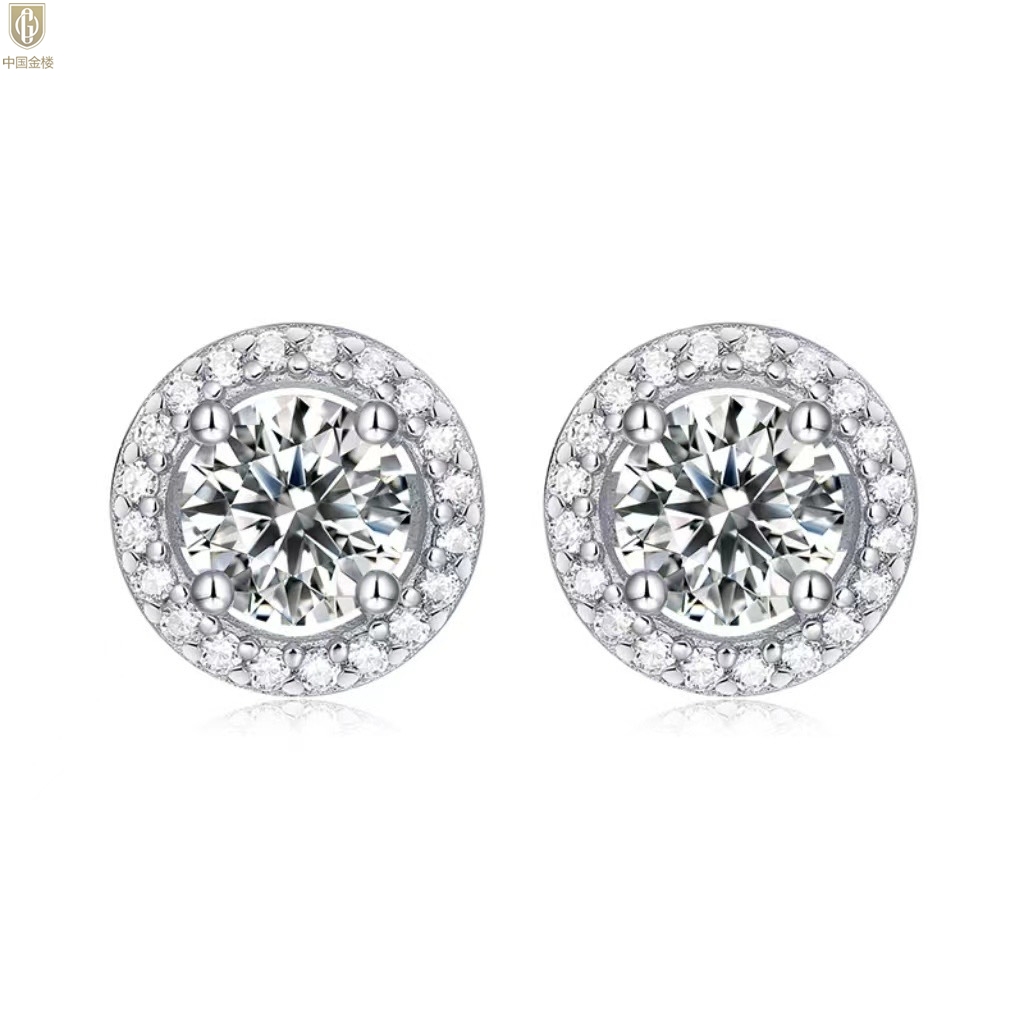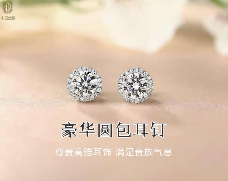 【品名】中国金楼莫桑钻豪华圆包耳钉