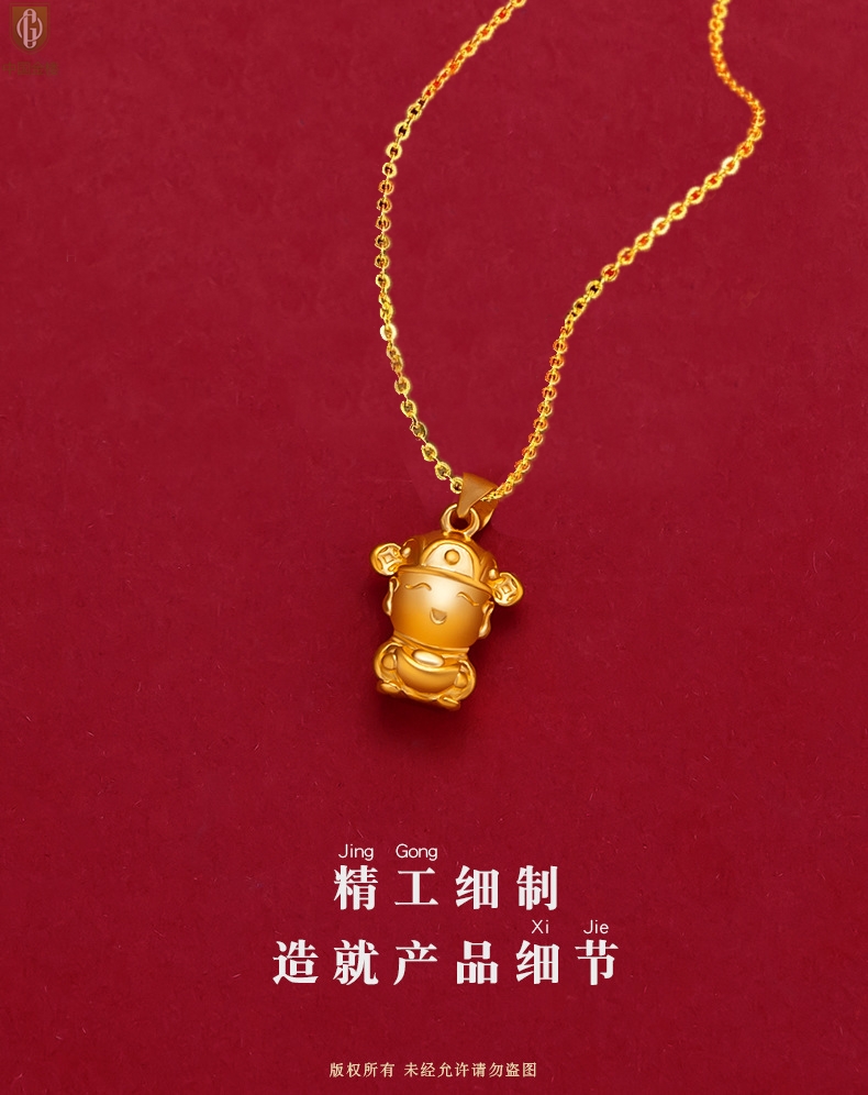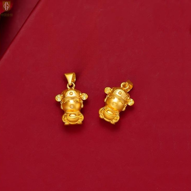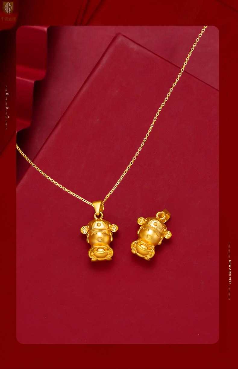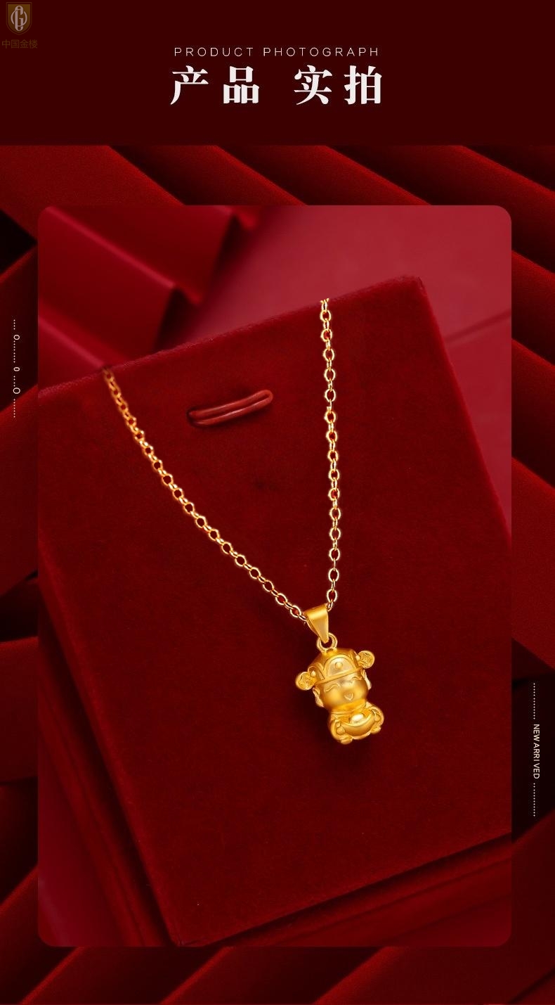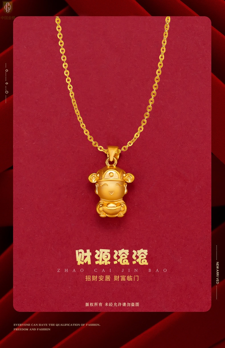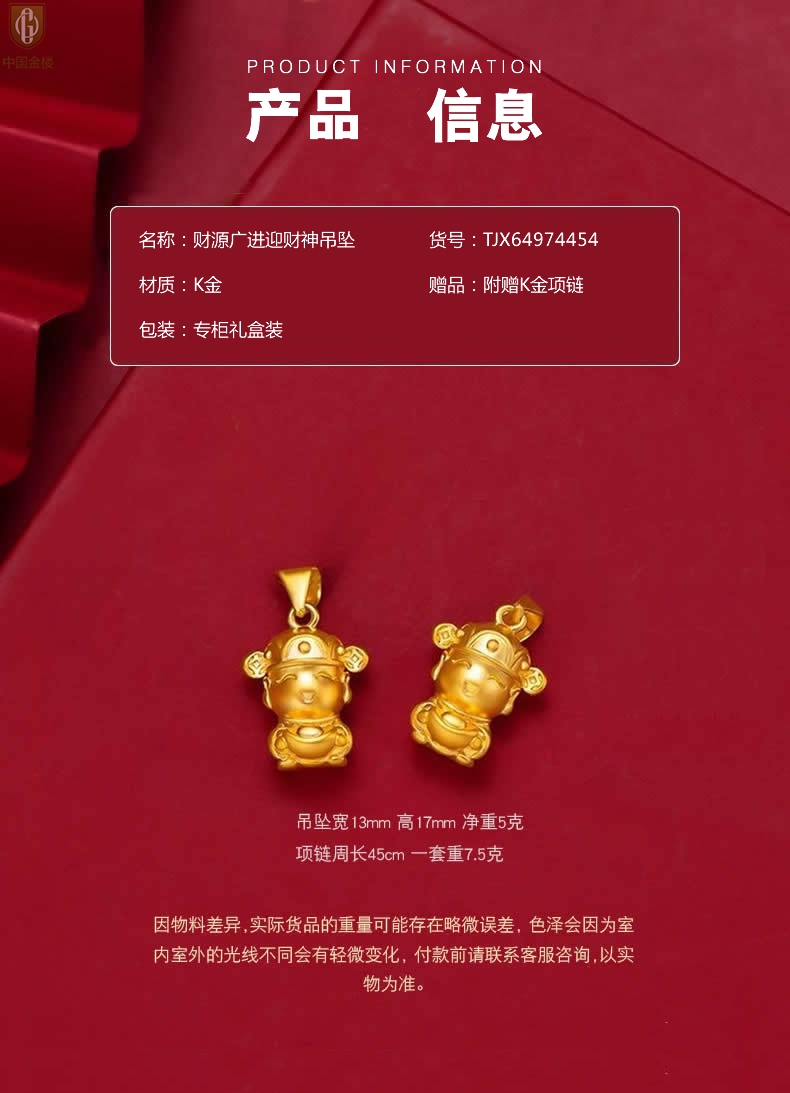 【品名】中国金楼财源广进迎财神吊坠(附赠K金项链)