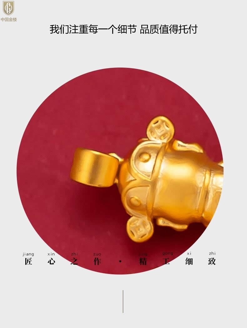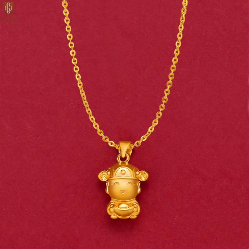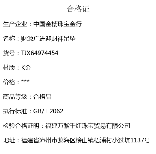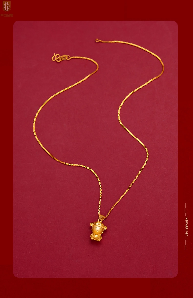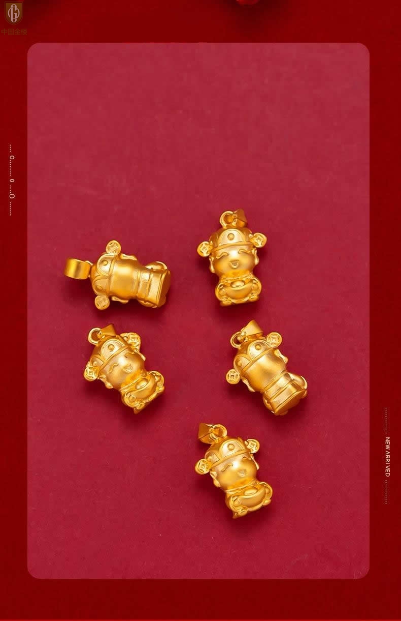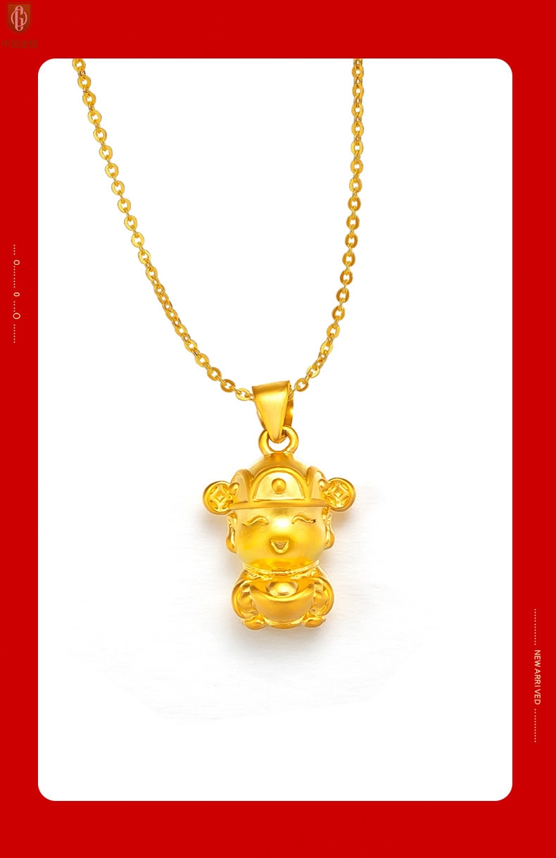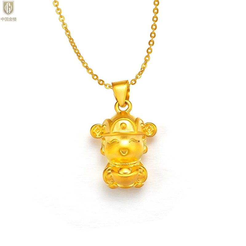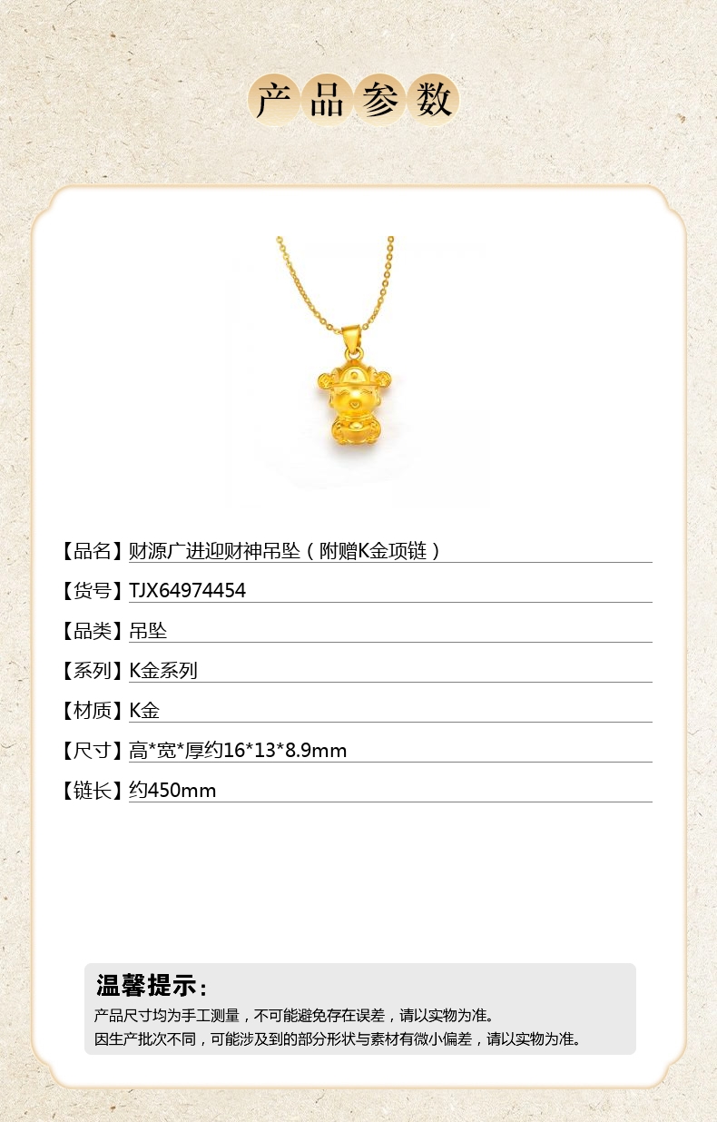 【品名】中国金楼财源广进迎财神吊坠(附赠K金项链)