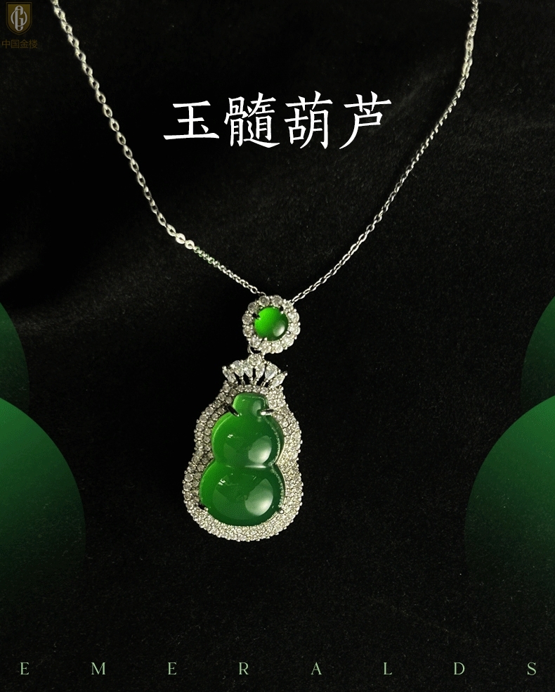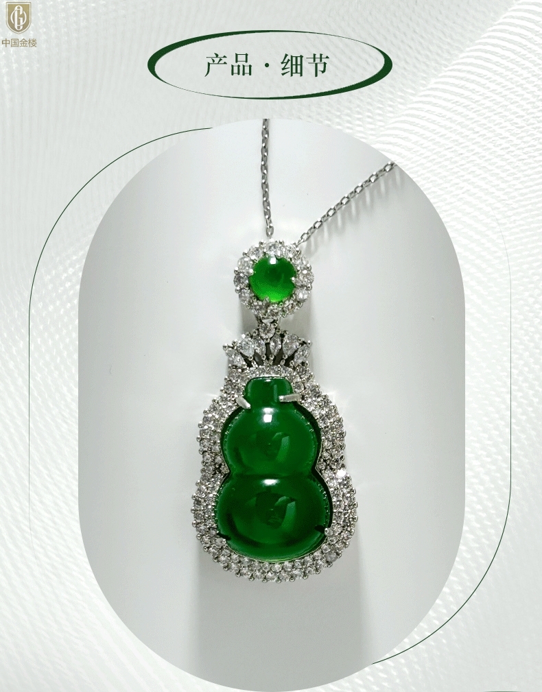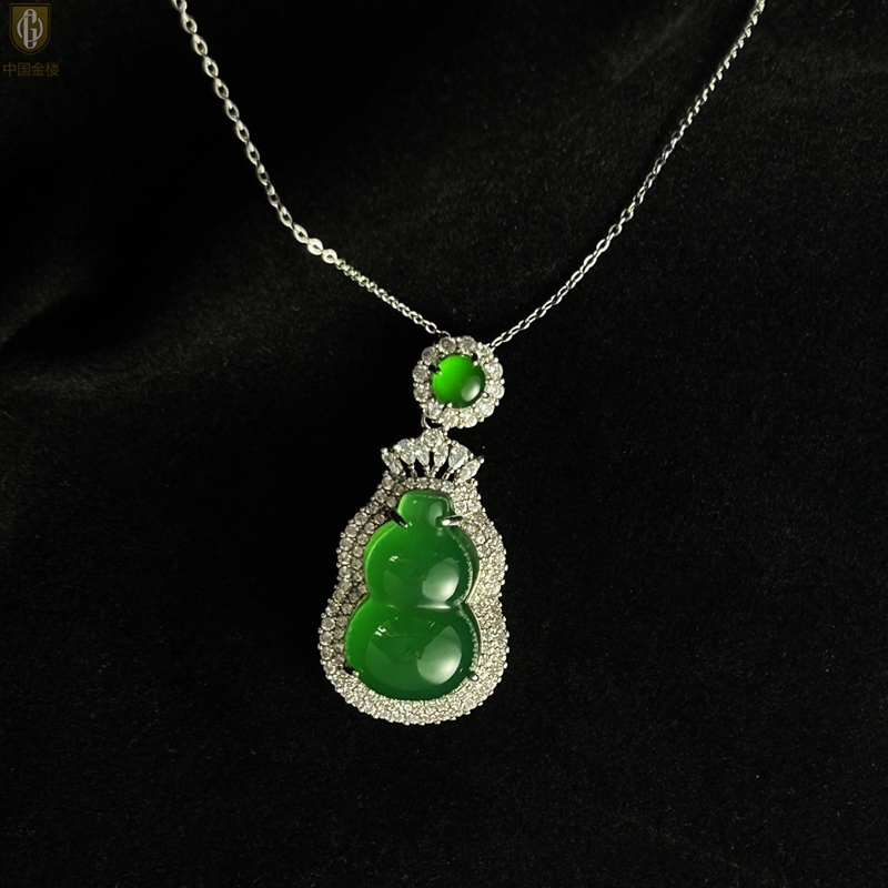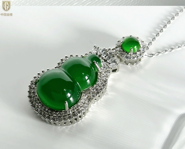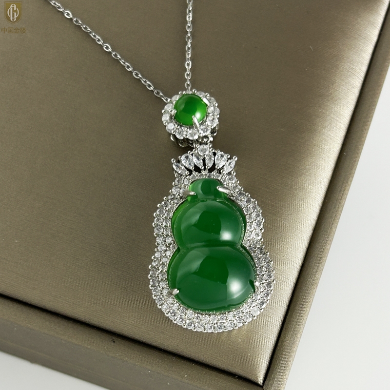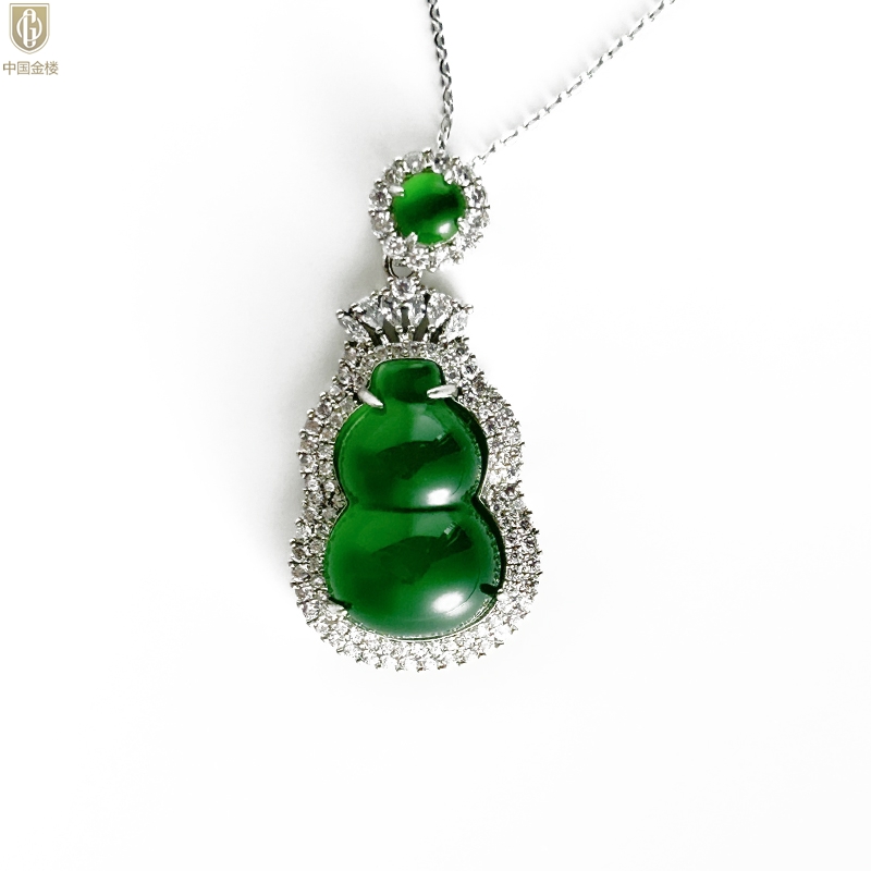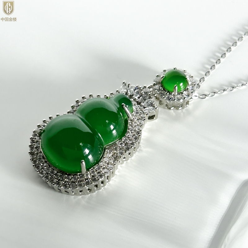 【品名】中国金楼祖母绿玉髓葫芦吊坠(附赠K金项链)