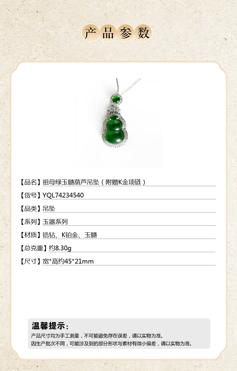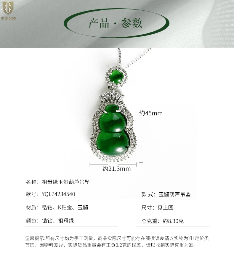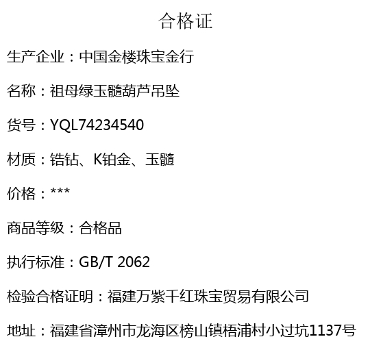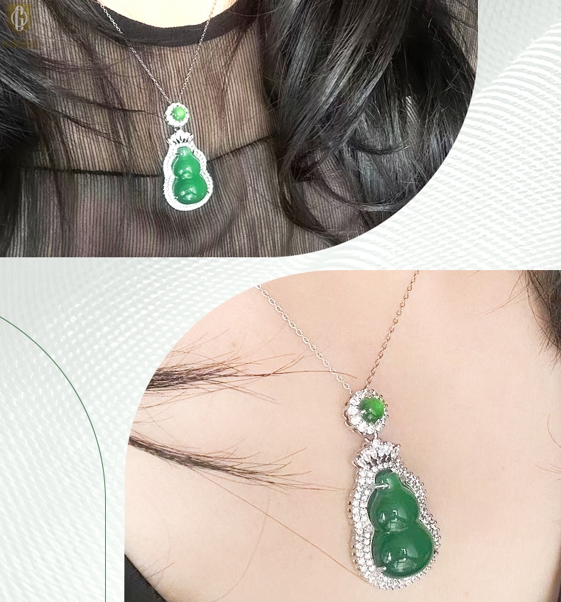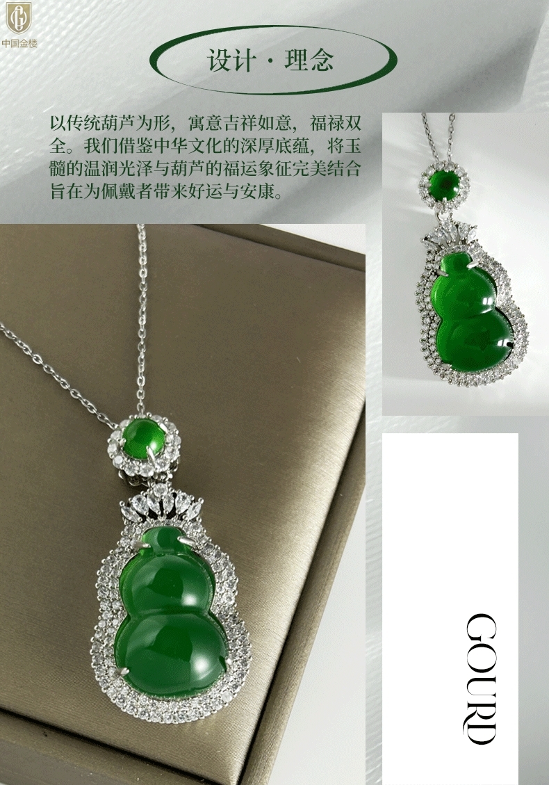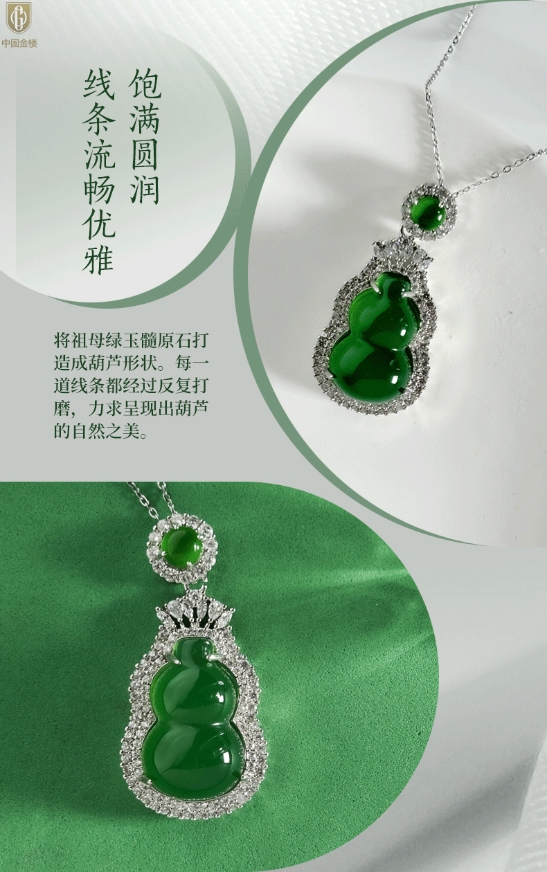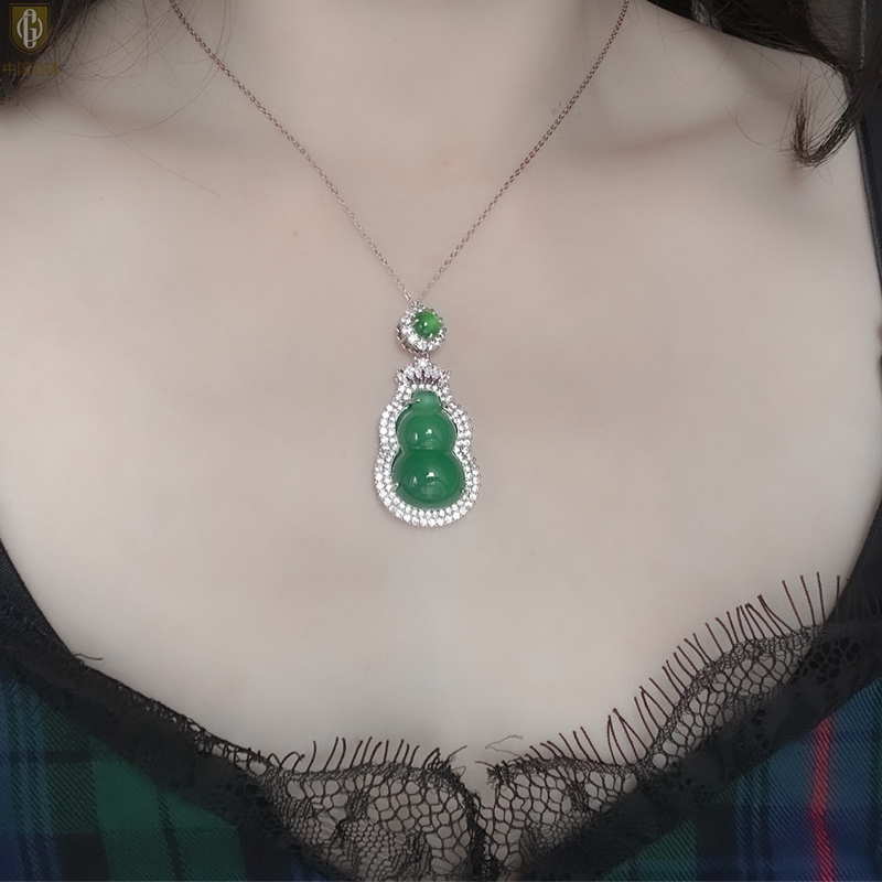 【品名】中国金楼祖母绿玉髓葫芦吊坠(附赠K金项链)