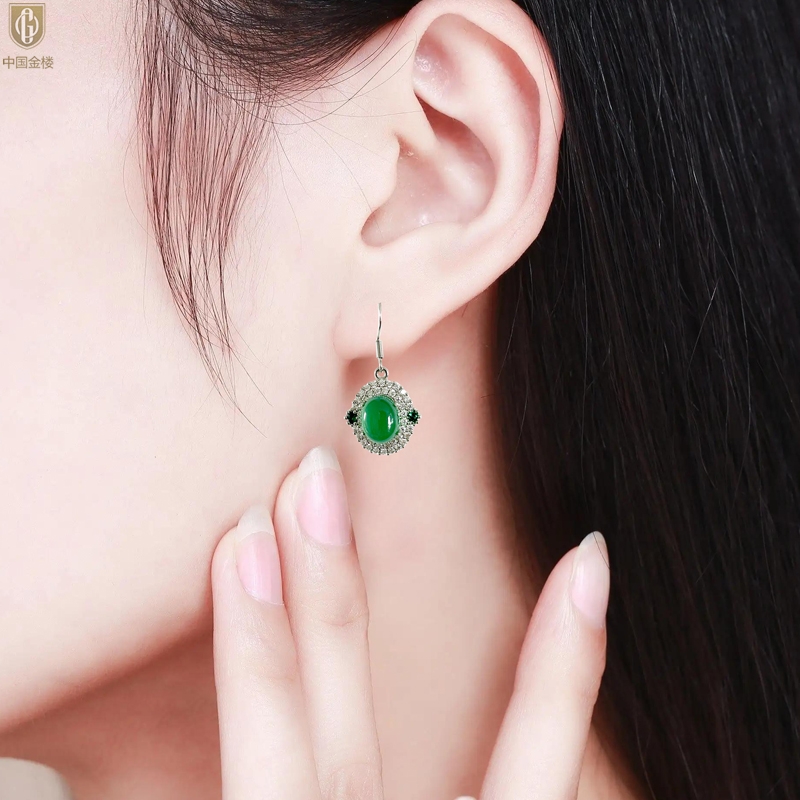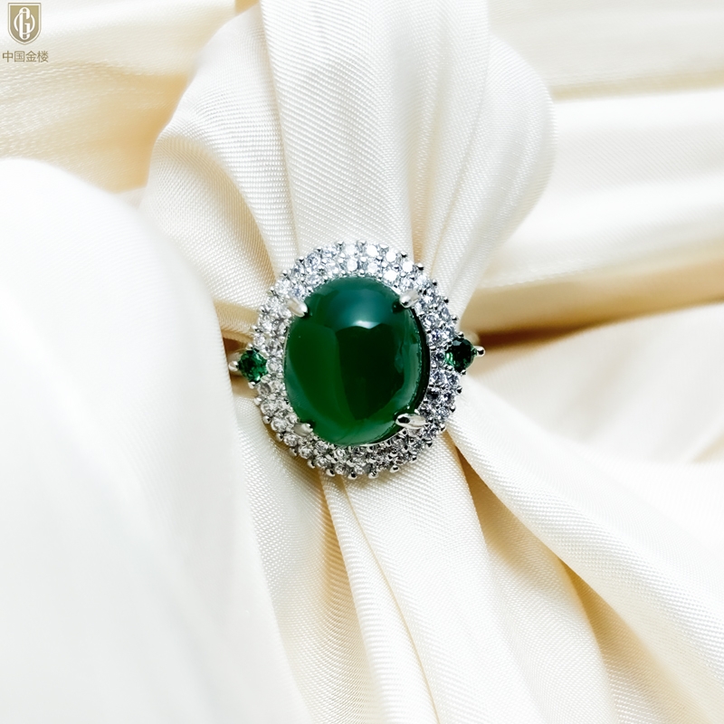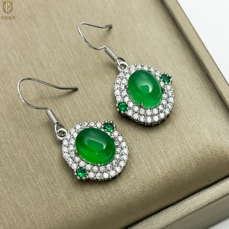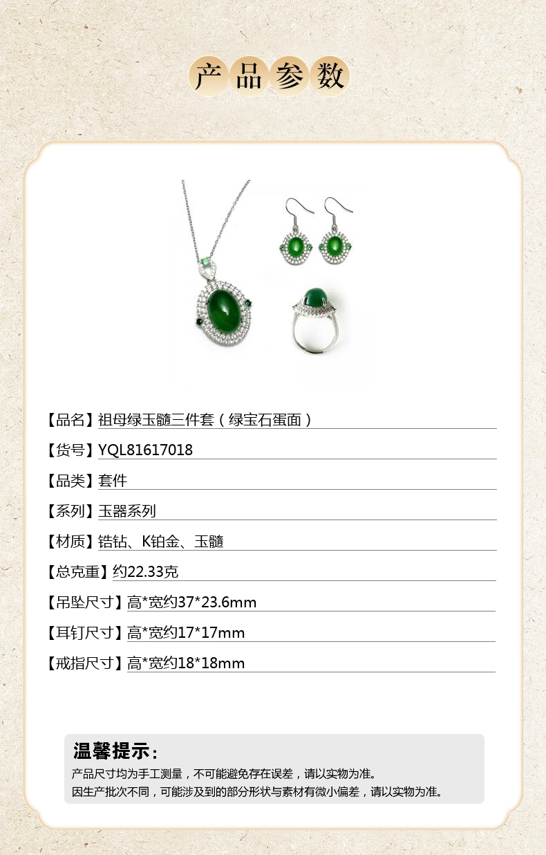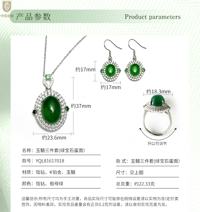 【品名】中国金楼祖母绿玉髓三件套(绿宝石蛋面)