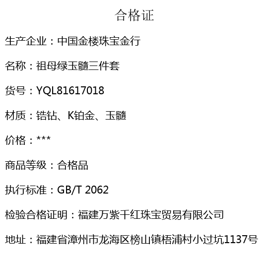 【套装包含】首饰+礼品盒+礼品袋+国检证书+质保单+价签