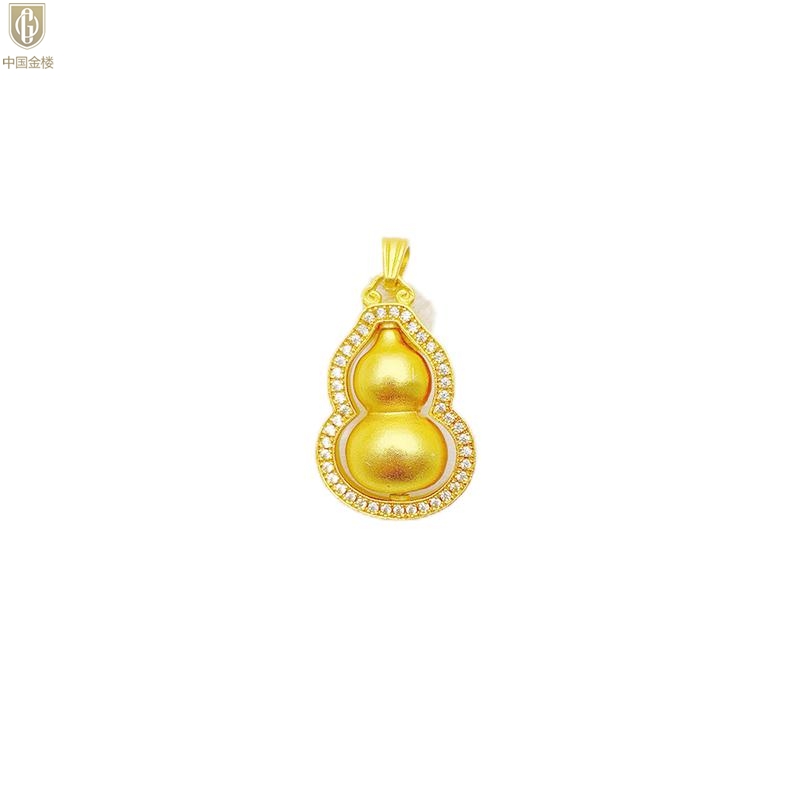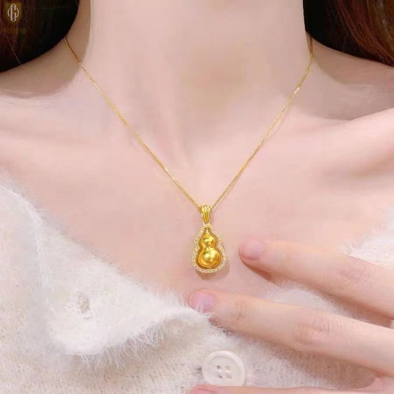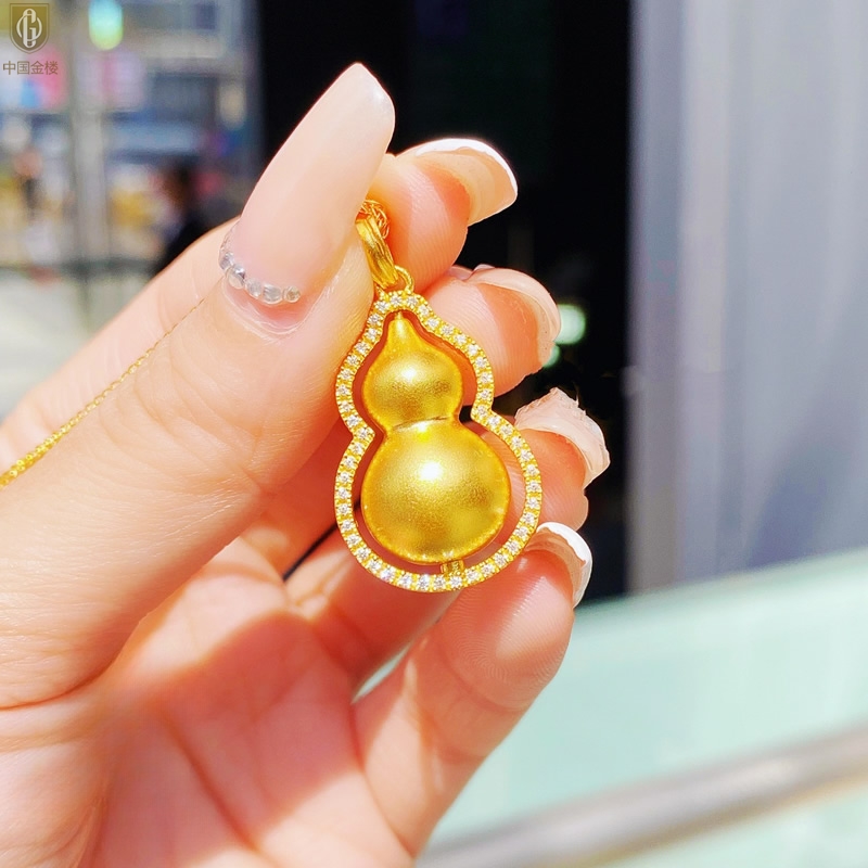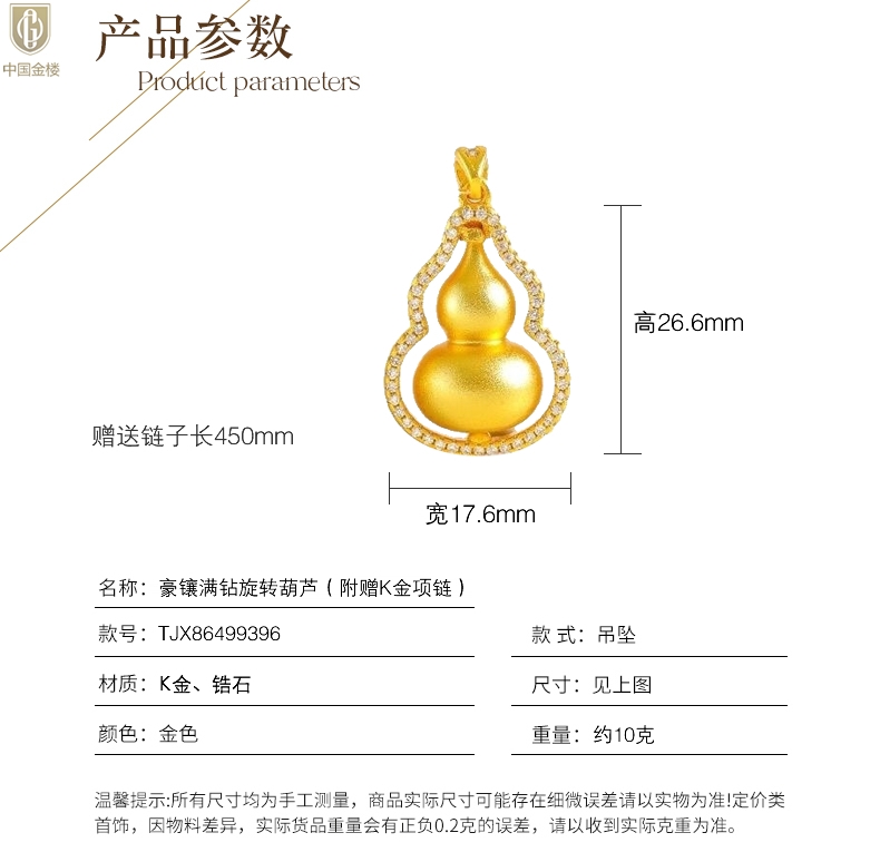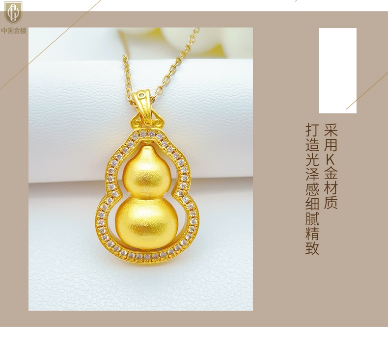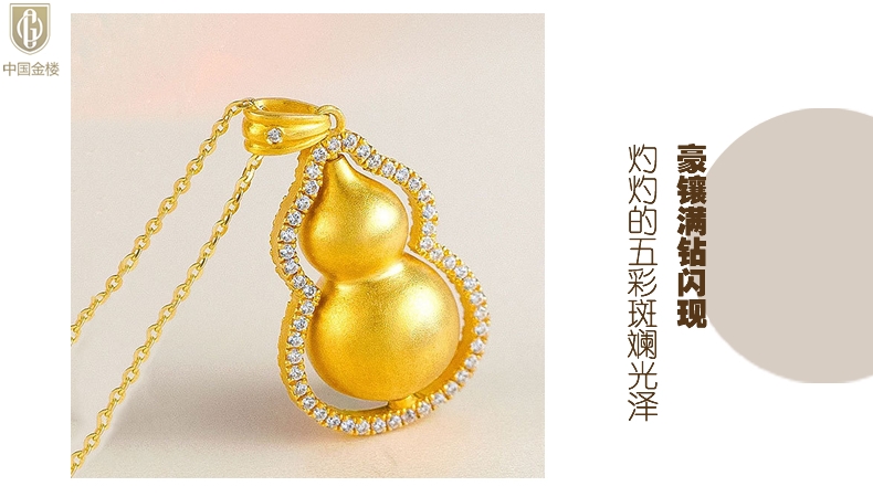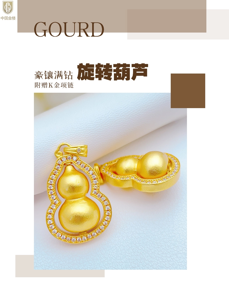 【品名】中国金楼豪镶满钻K金旋转葫芦吊坠(附赠K金项链)