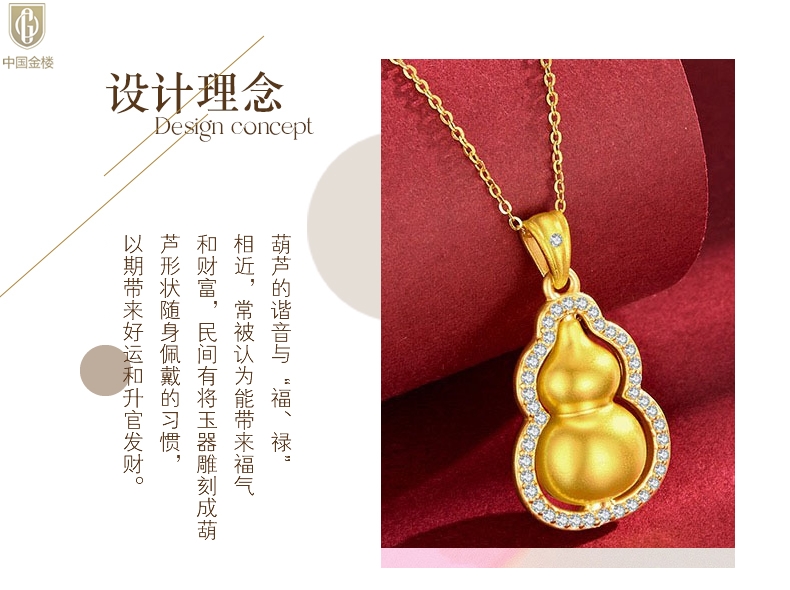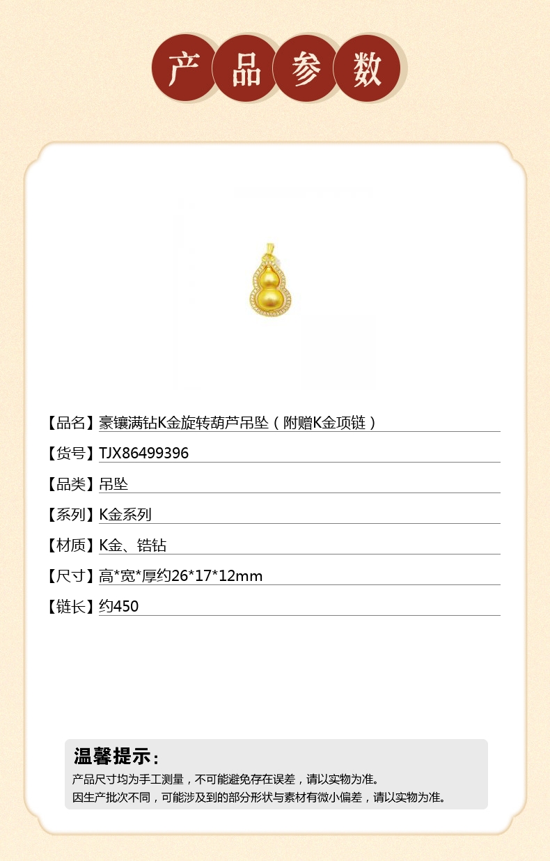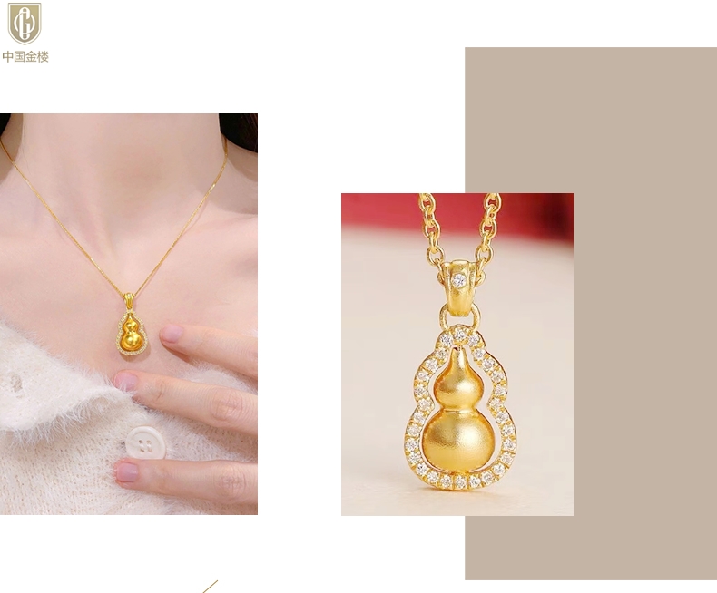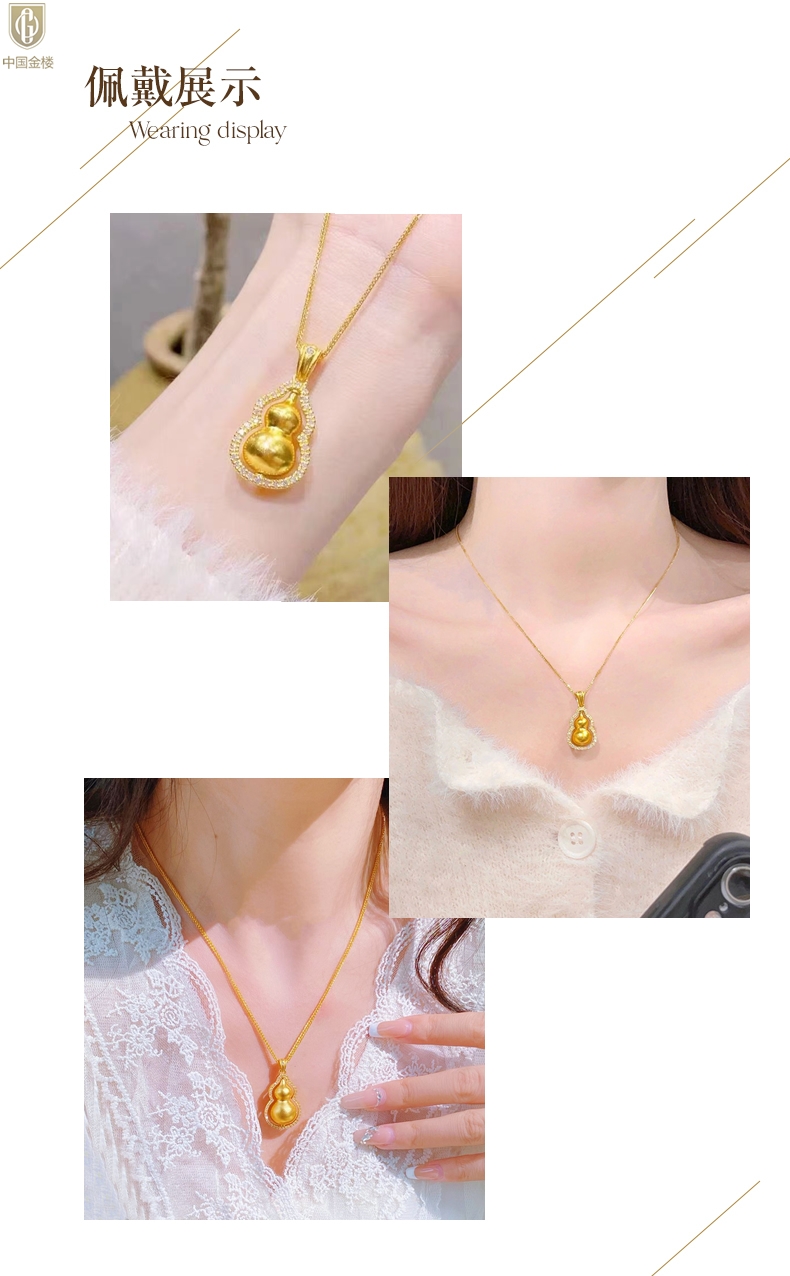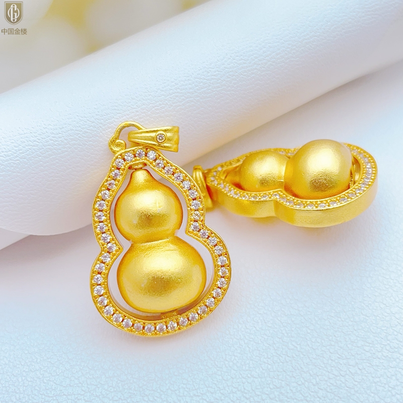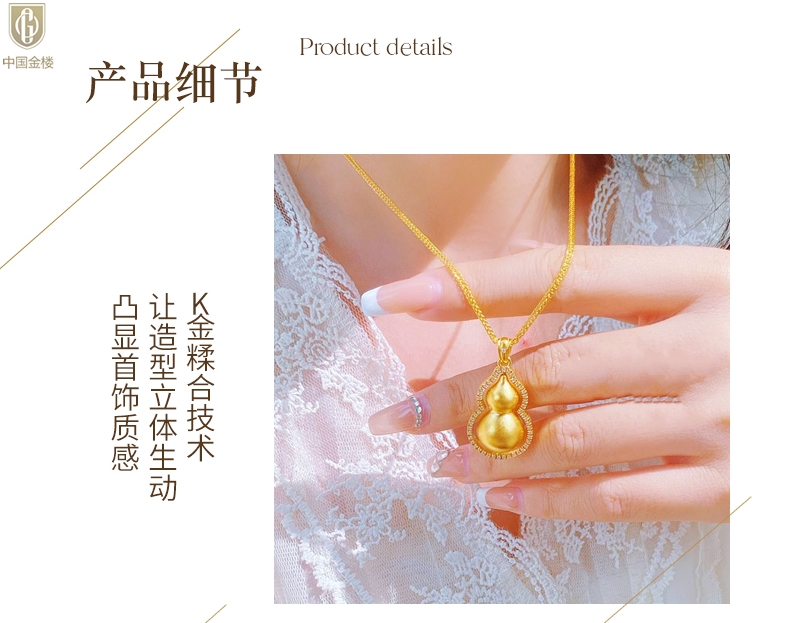 【品名】中国金楼豪镶满钻K金旋转葫芦吊坠(附赠K金项链)