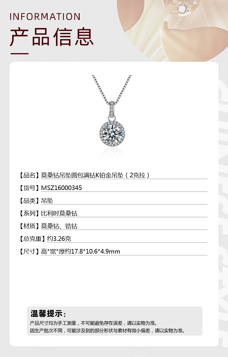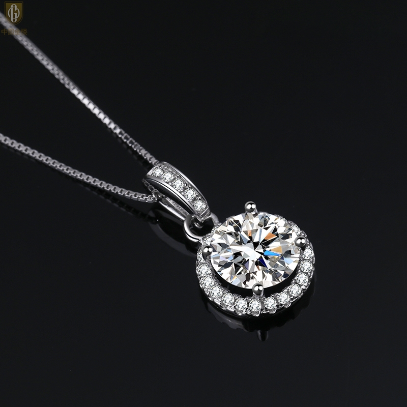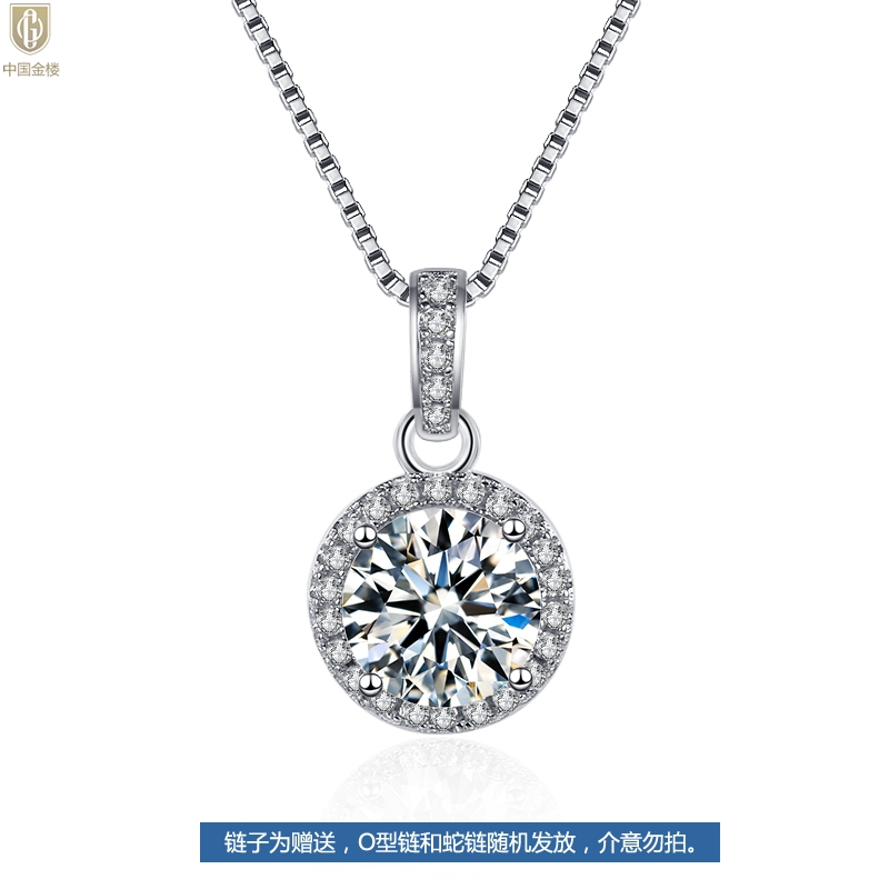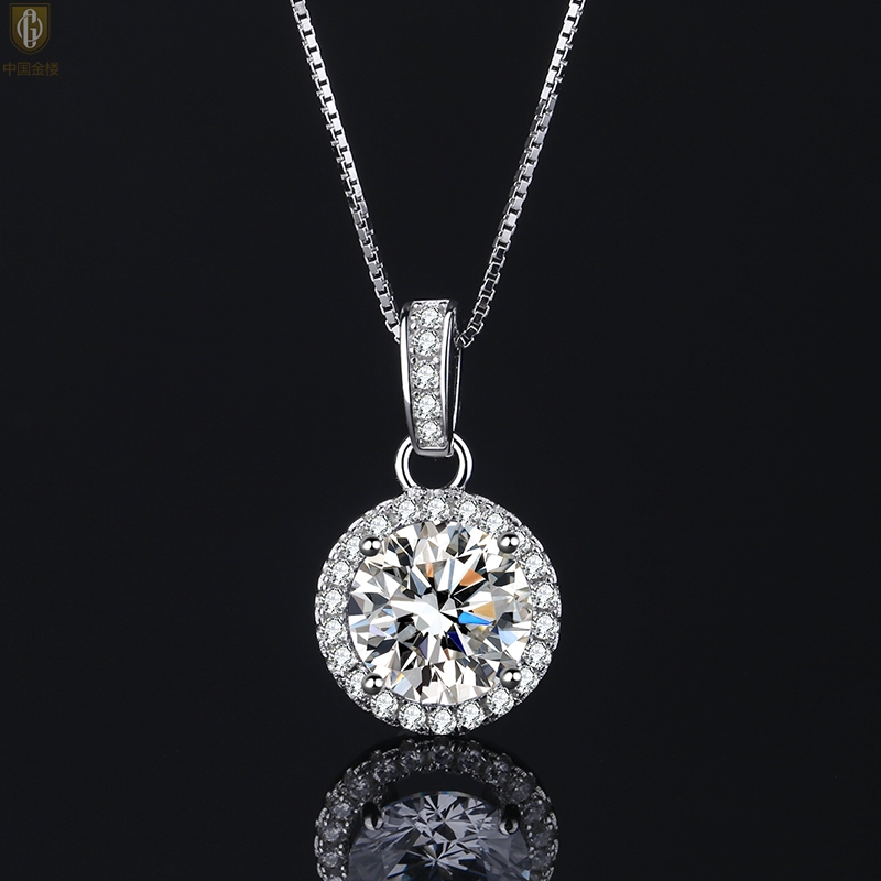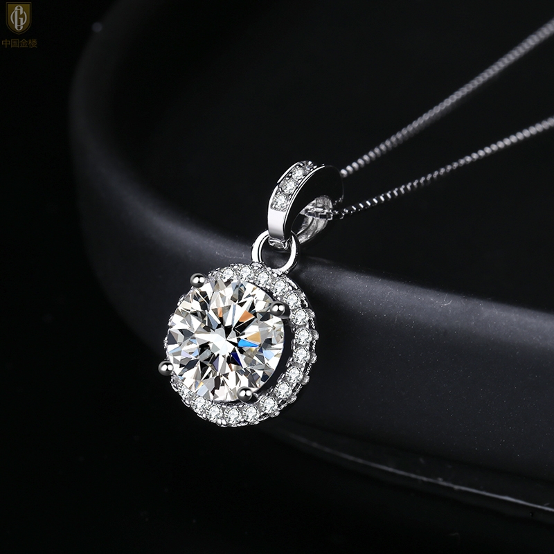 【品名】中国金楼莫桑钻吊坠圆包满钻K铂金吊坠(2克拉)