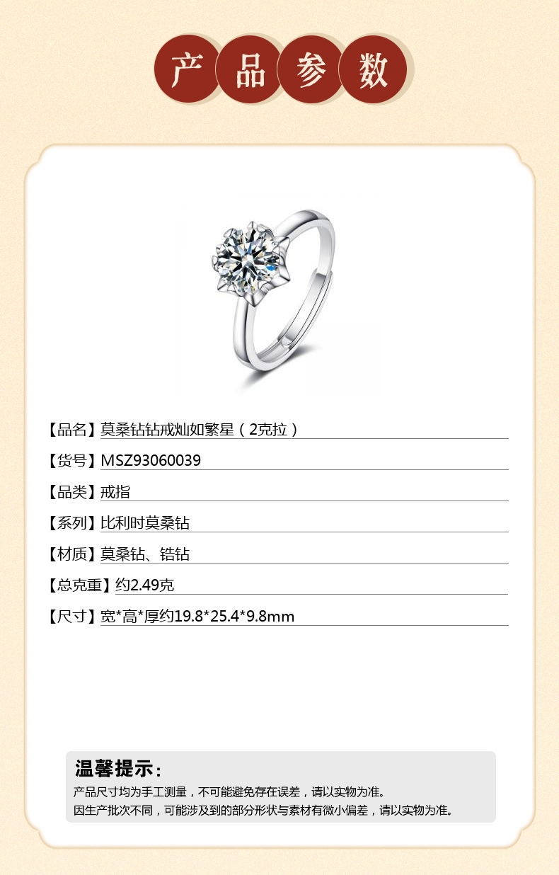 【品名】中国金楼莫桑钻钻戒灿如繁星(2克拉)