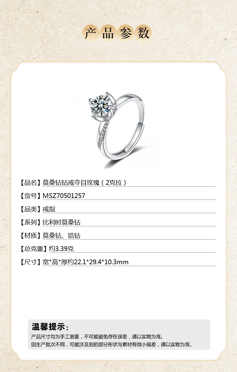 【品名】中国金楼莫桑钻钻戒夺目玫瑰(2克拉)