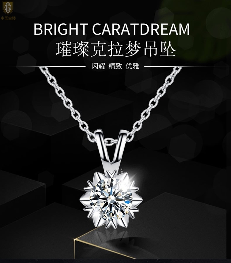 【品名】中国金楼莫桑钻吊坠璀璨克拉梦(2克拉)